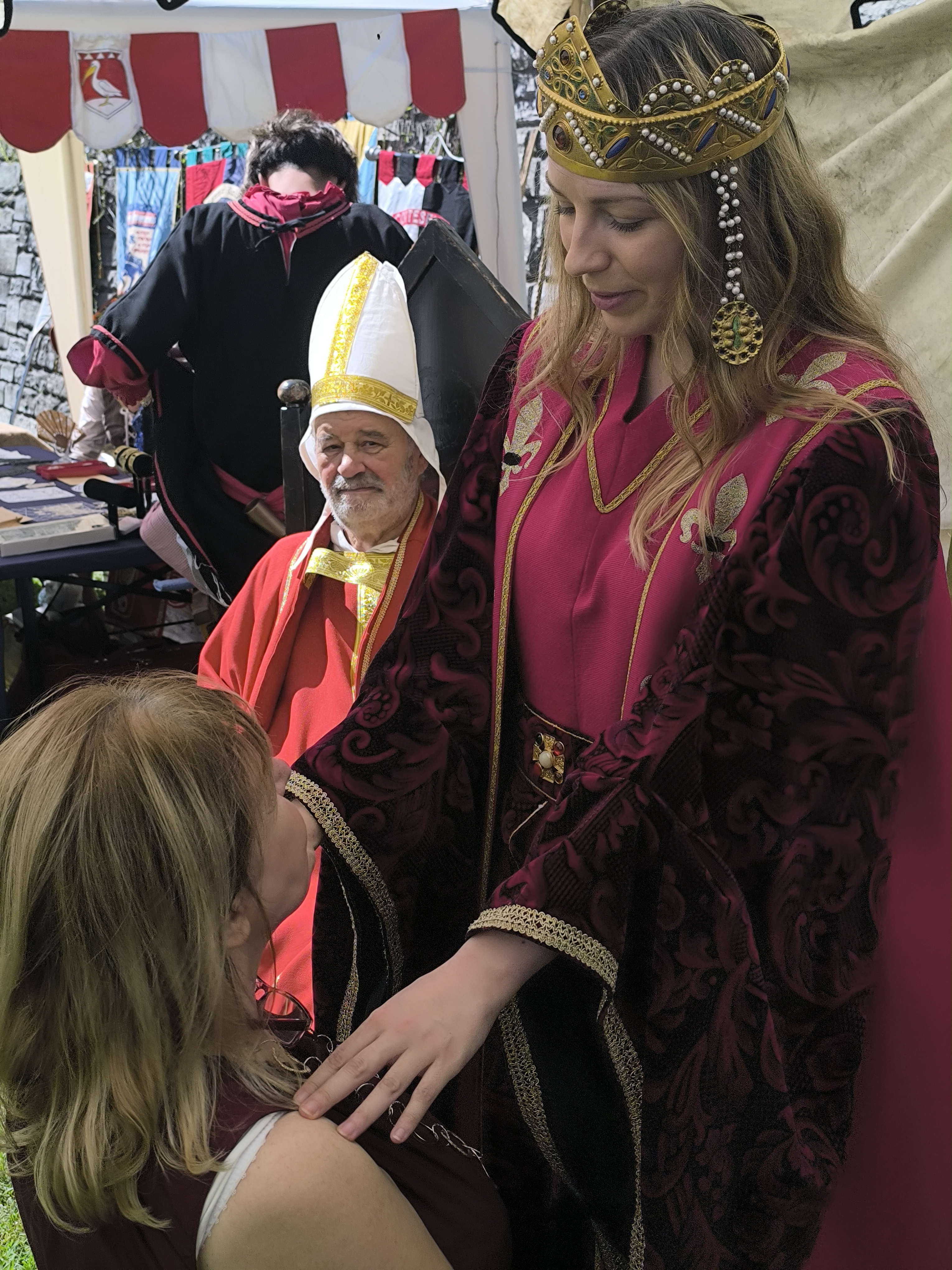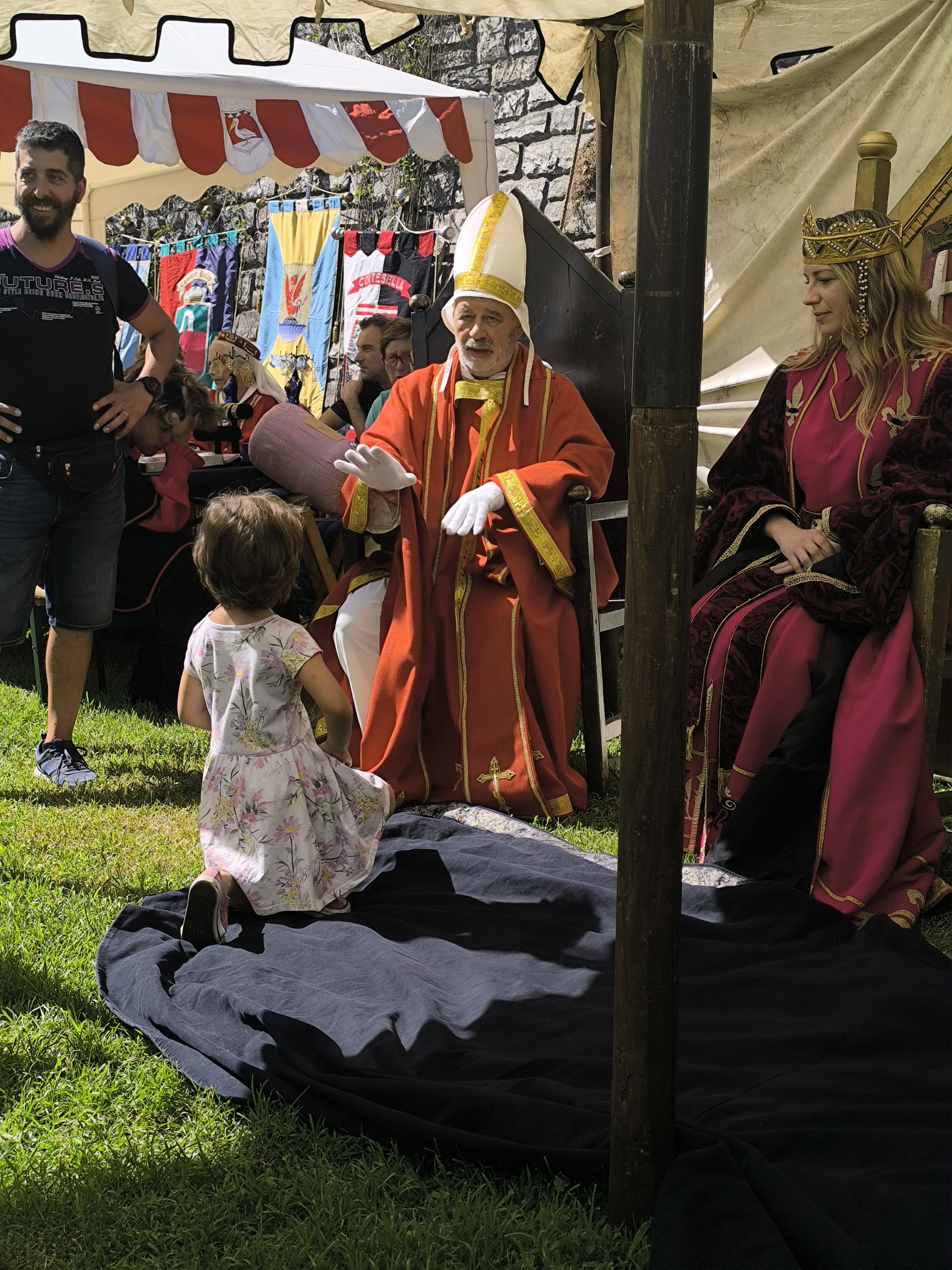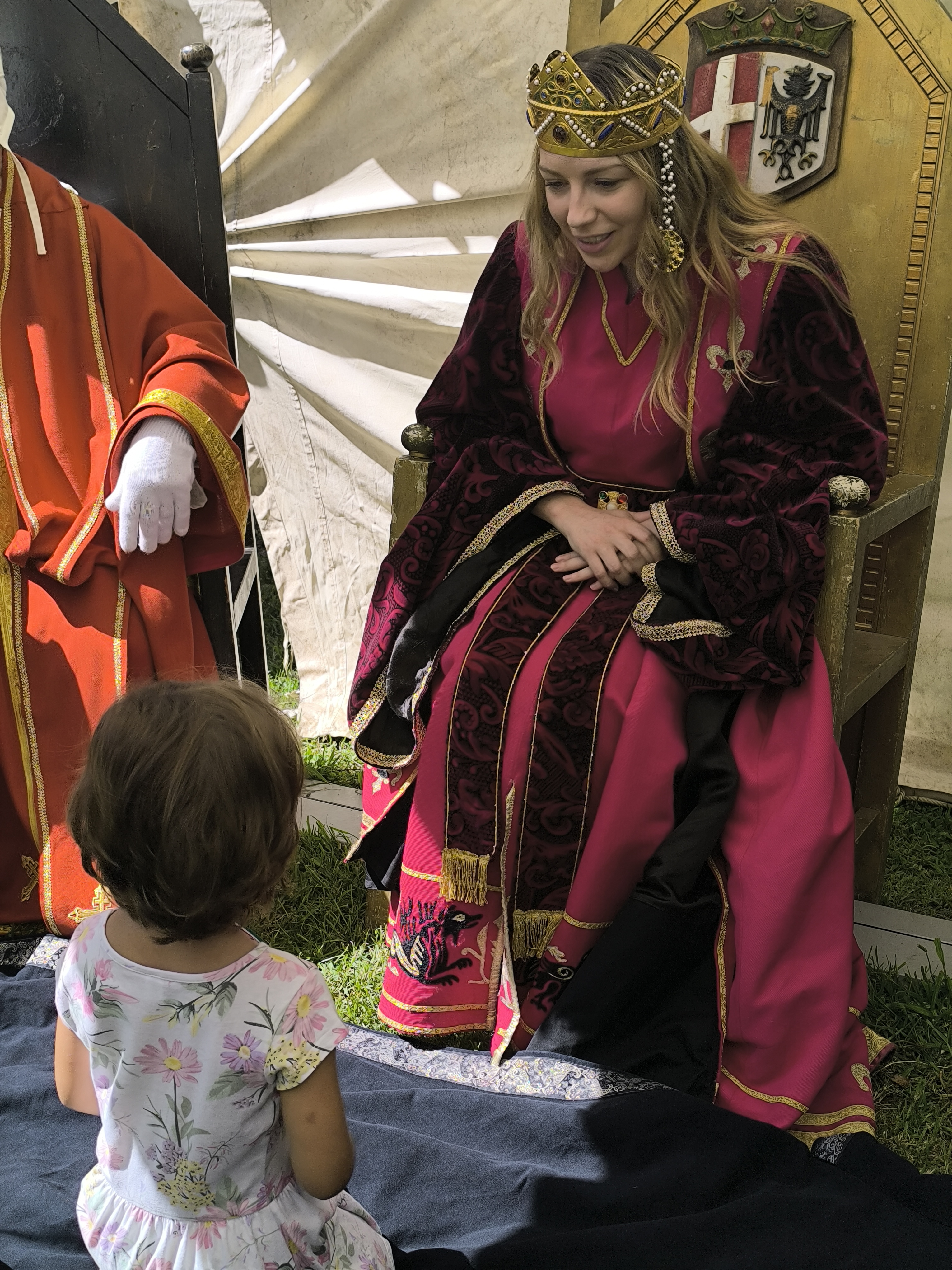 tradizioni cavalleresche. Poi, i bambini e le bambine, emozionati e orgogliosi, si inginocchiavano davanti all’Imperatore o all’Imperatrice. Dopo aver risposto alle domande che mettevano alla prova le loro abilità – quelle belliche per i futuri cavalieri e quelle di intrattenimento per le aspiranti dame – ricevevano la tanto ambita investitura.