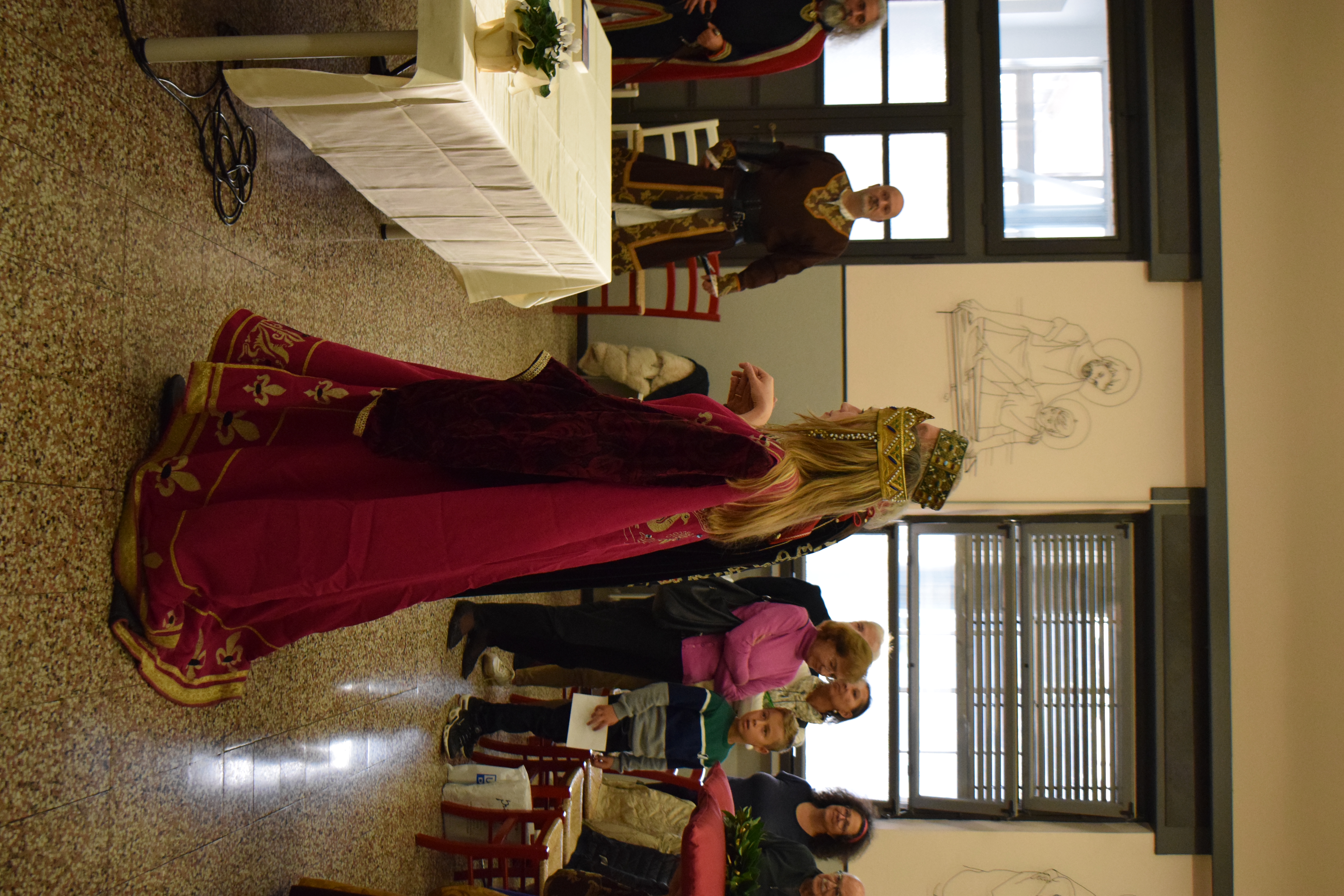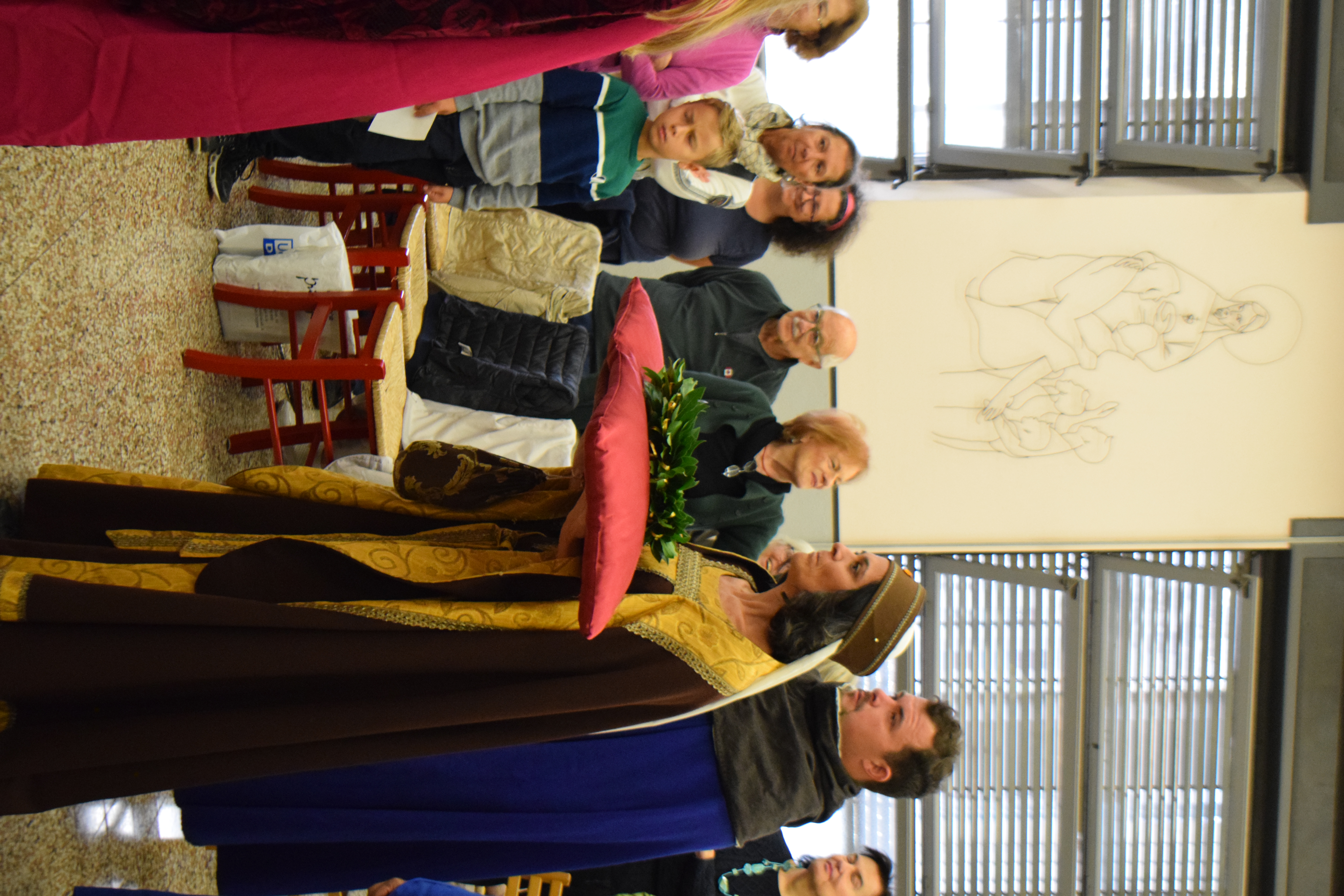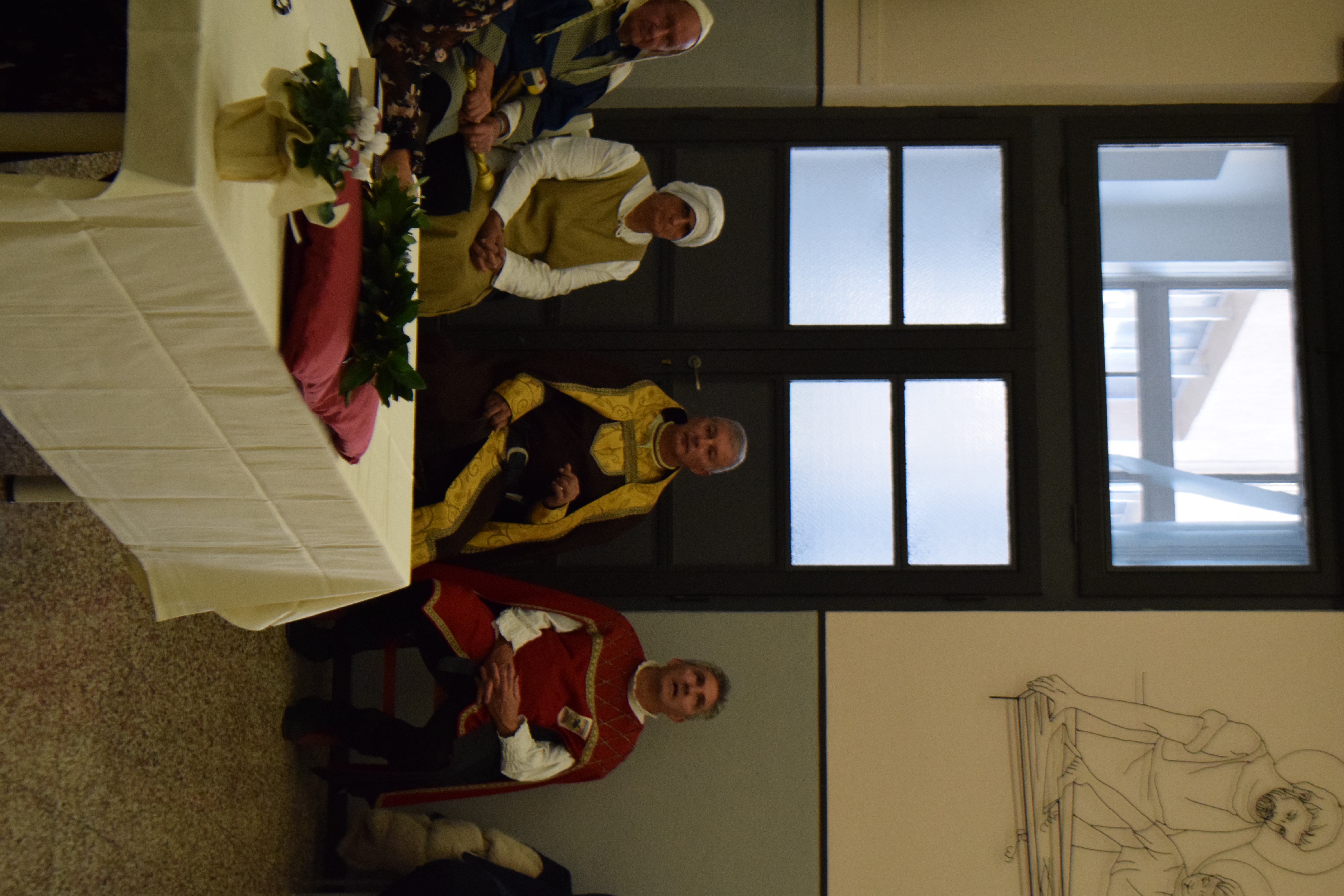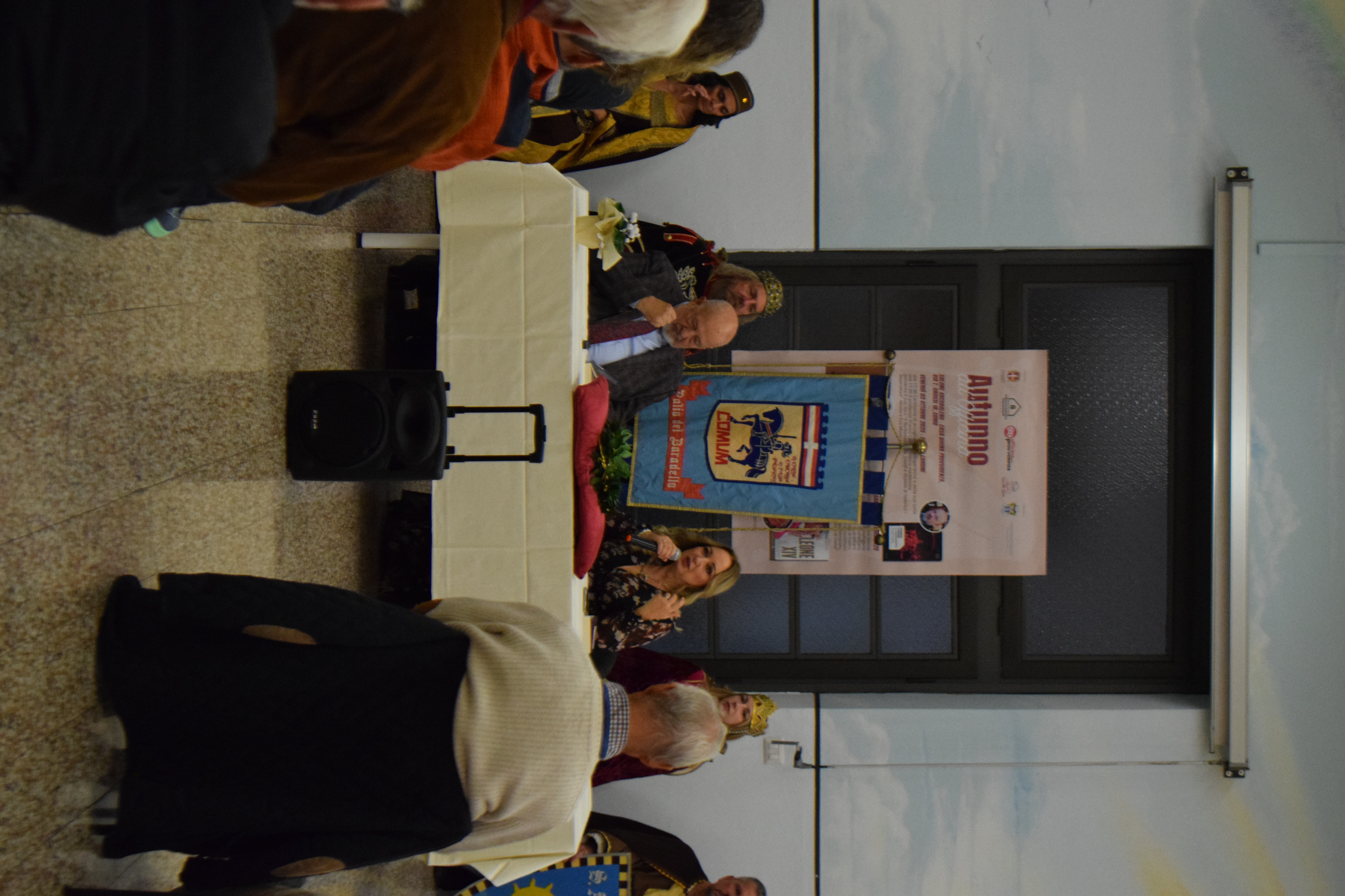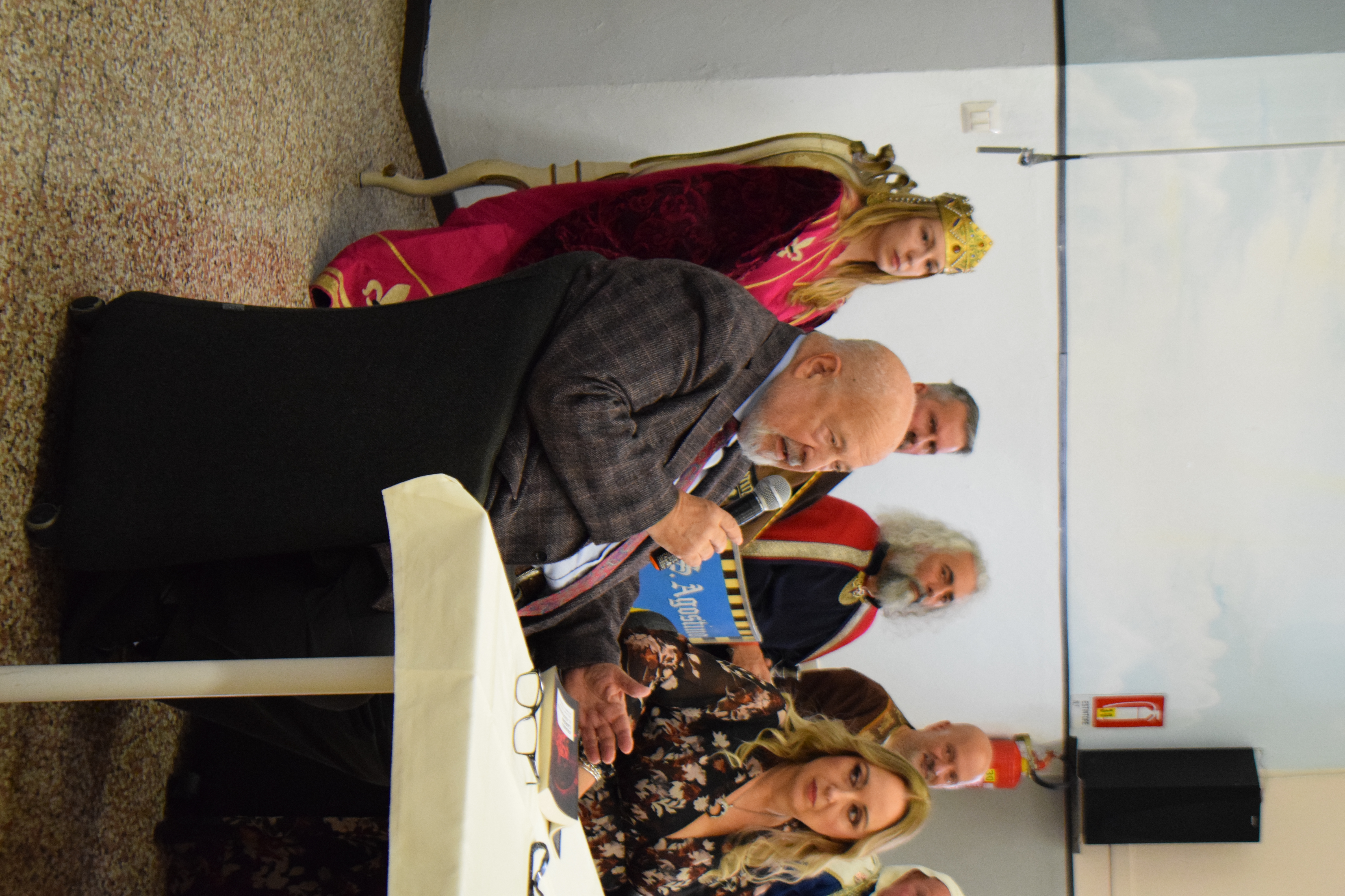 di intrecciare rigore scientifico e sensibilità narrativa, restituendo al pubblico figure storiche complesse con profondità e chiarezza. Ritrovarsi al suo cospetto con l’imperatore e l’imperatrice impersonati dai rievocatori del Palio del Baradello ha creato un momento di forte suggestione, quasi un ponte simbolico tra la ricerca storica e la storia rievocata, tra studio e memoria viva.