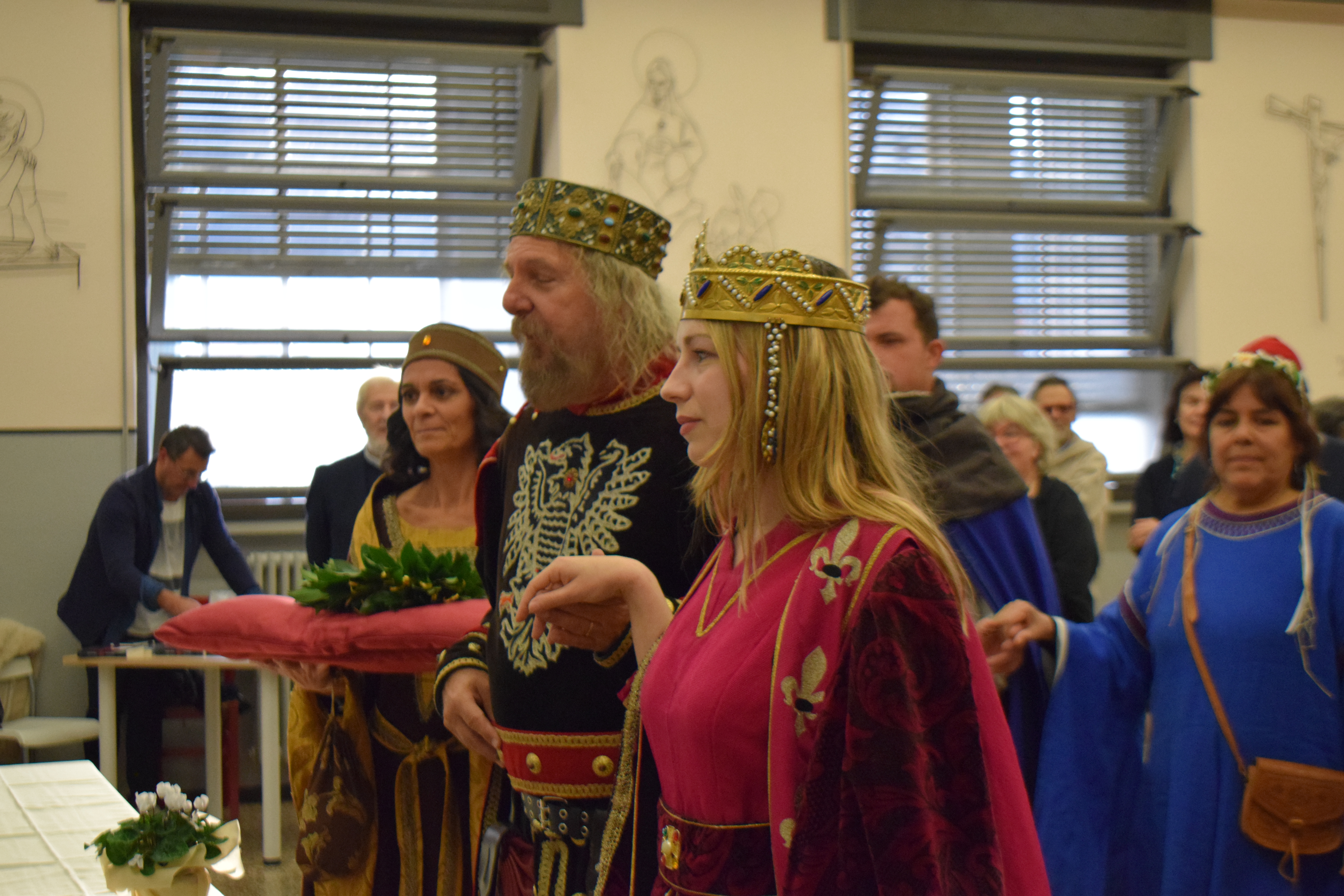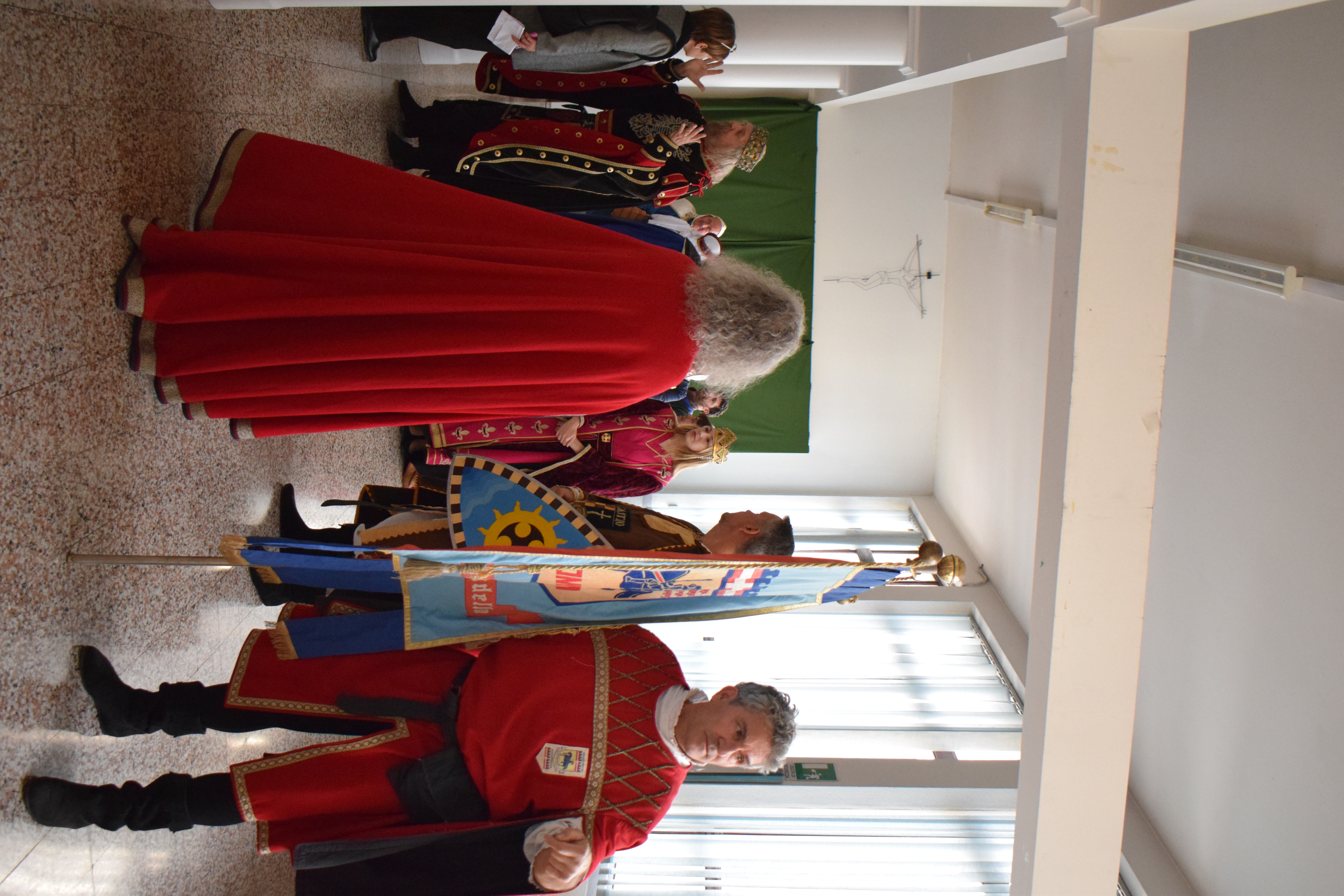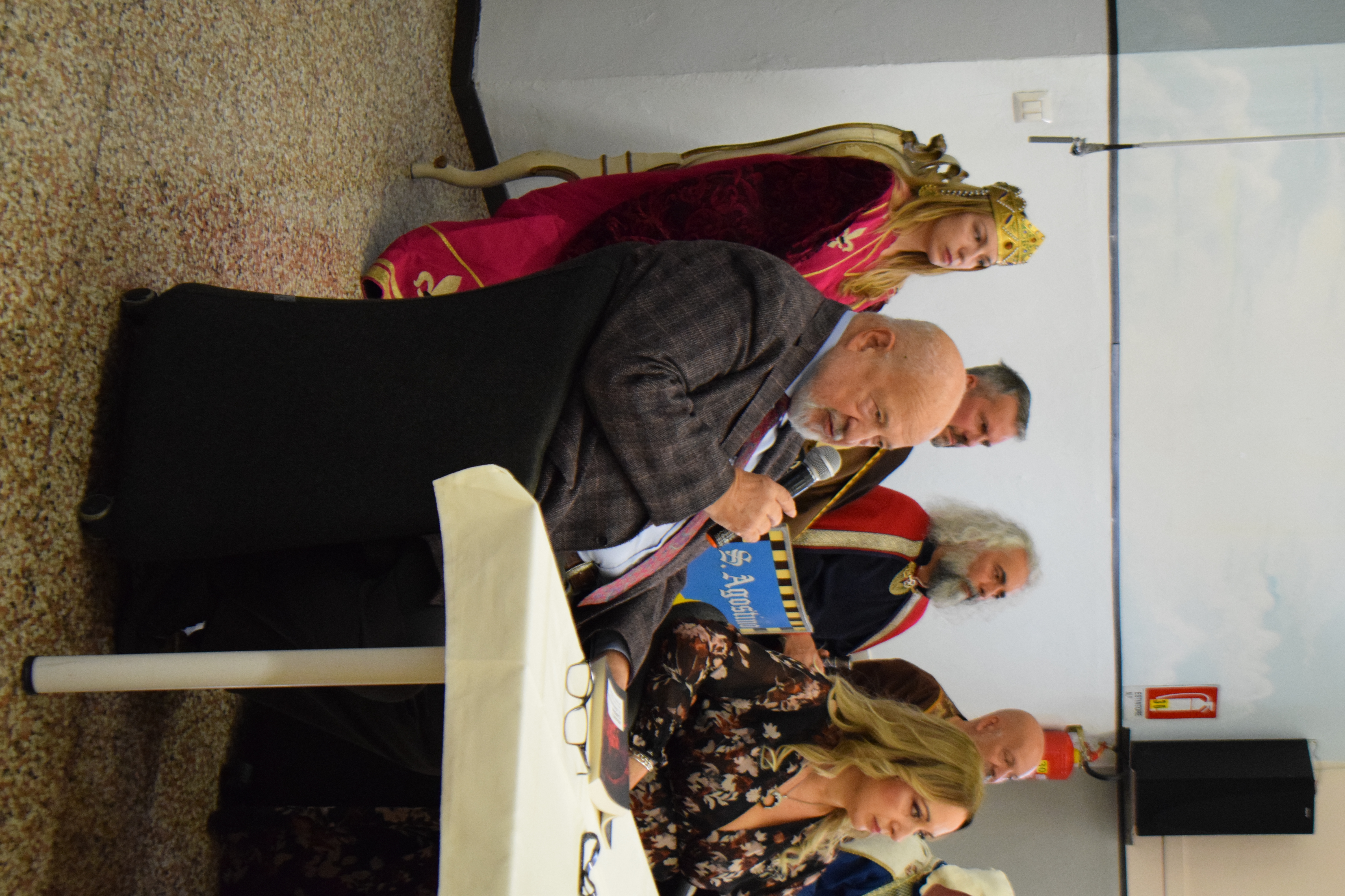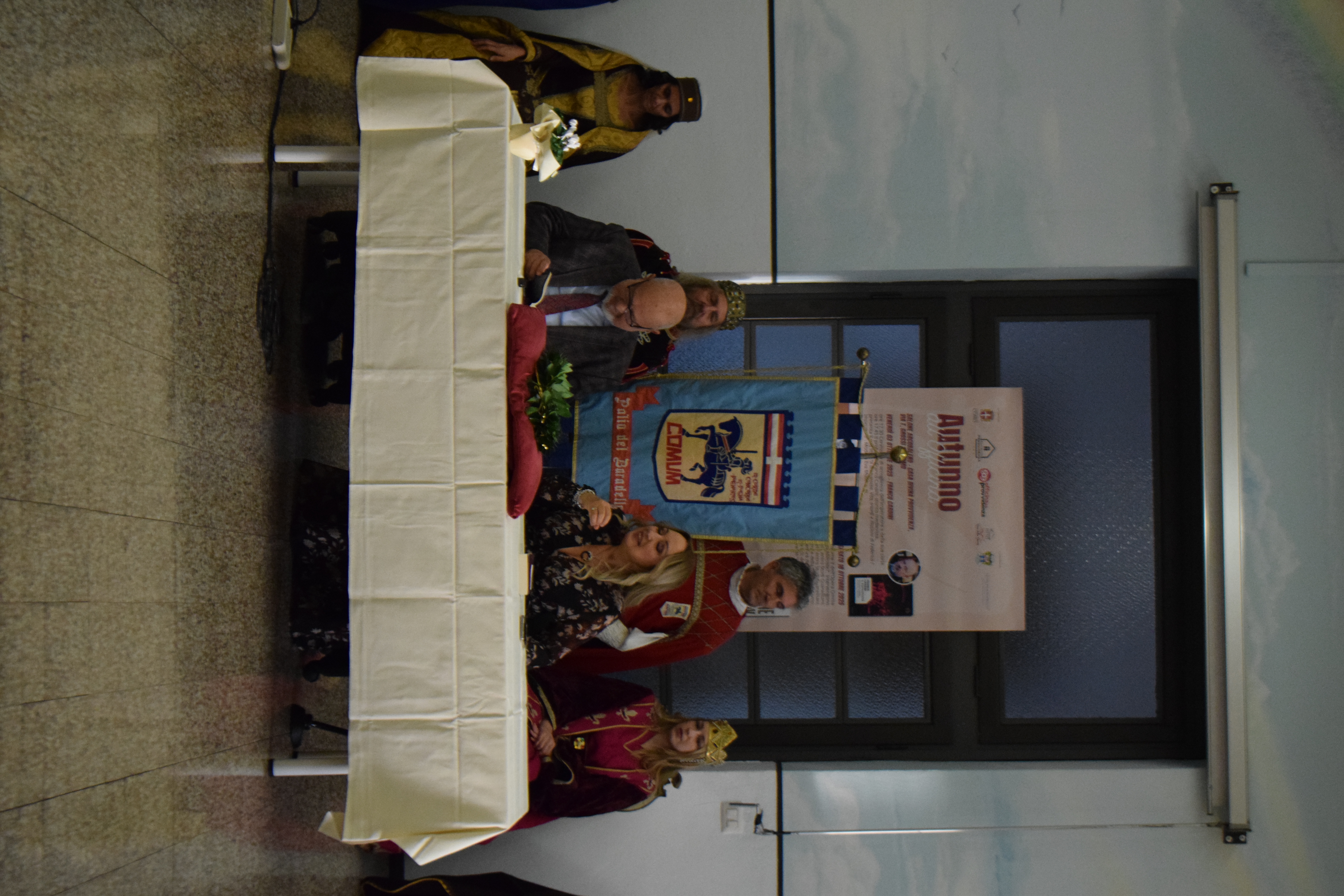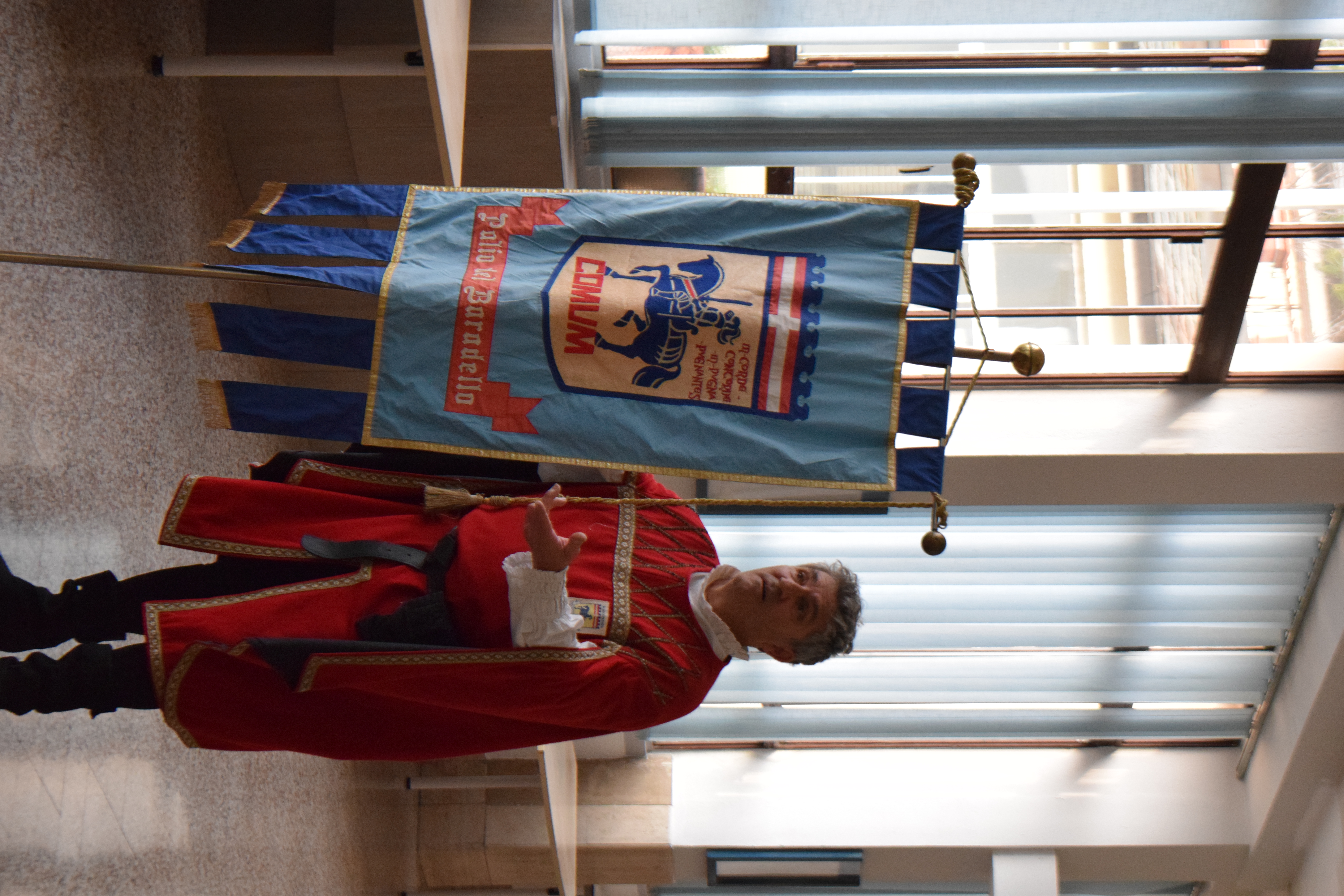 di intrecciare rigore scientifico e sensibilità narrativa, restituendo al pubblico figure storiche complesse con profondità e chiarezza. Ritrovarsi al suo cospetto con l’imperatore e l’imperatrice impersonati dai rievocatori del Palio del Baradello ha creato un momento di forte suggestione, quasi un ponte simbolico tra la ricerca storica e la storia rievocata, tra studio e memoria viva.