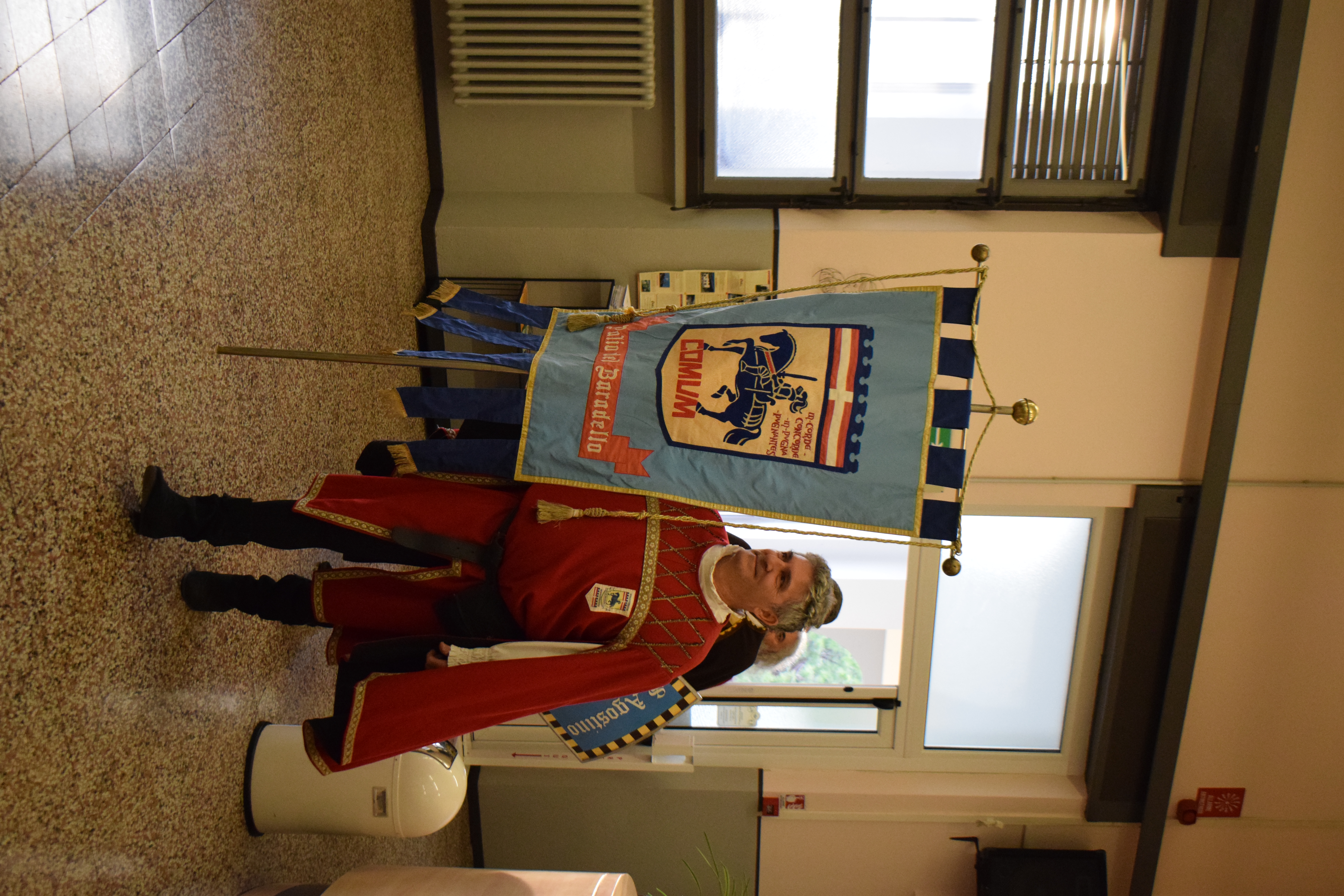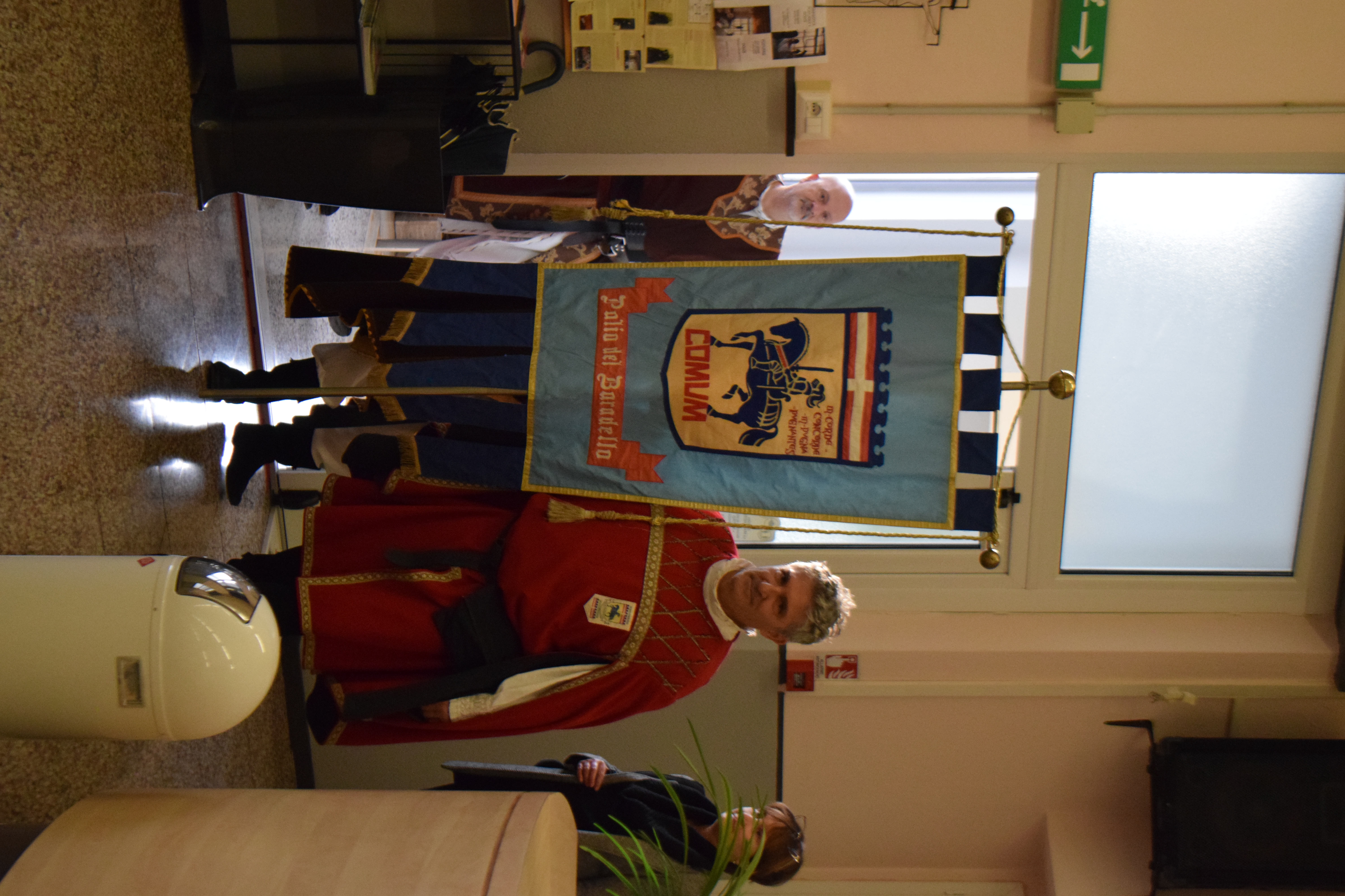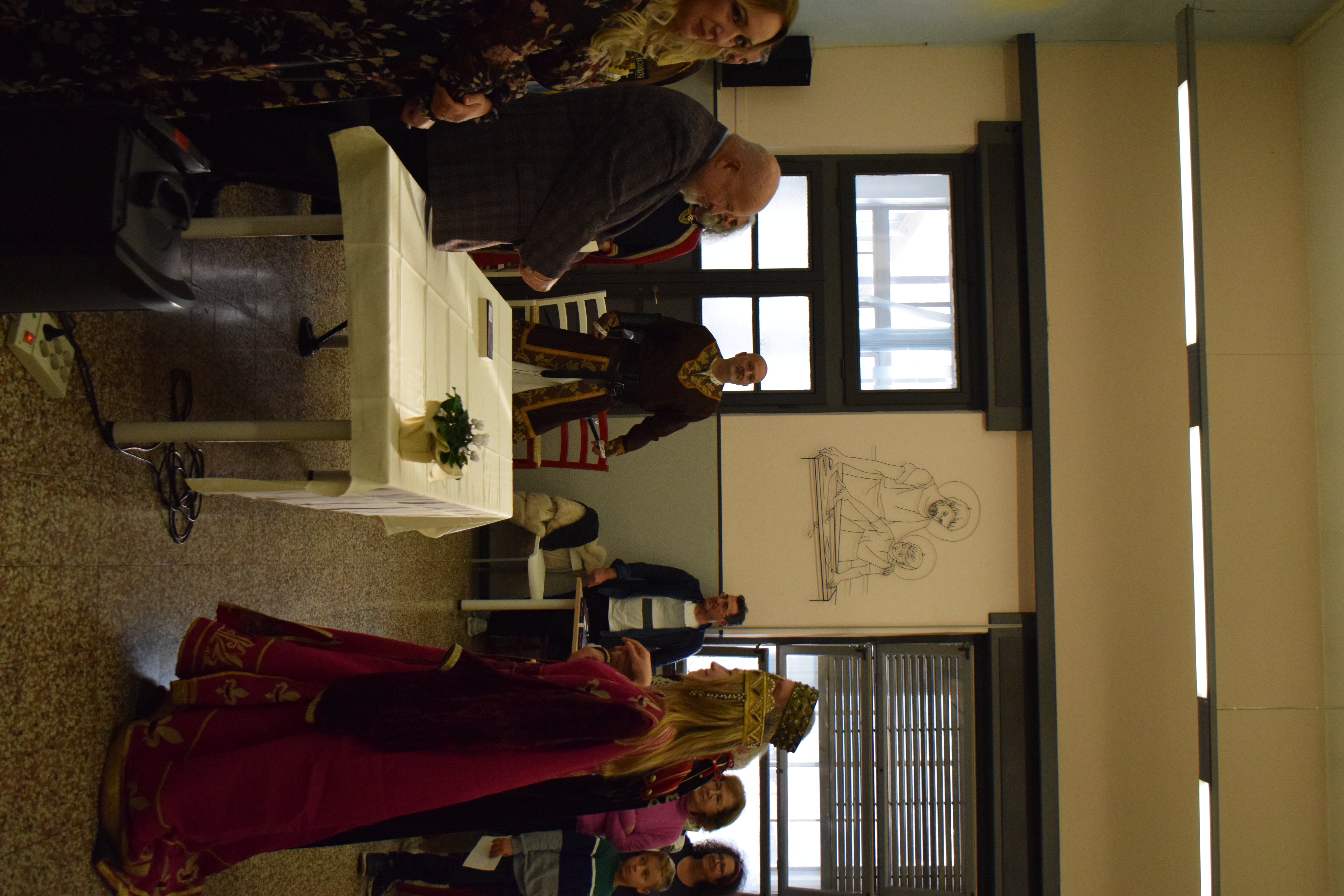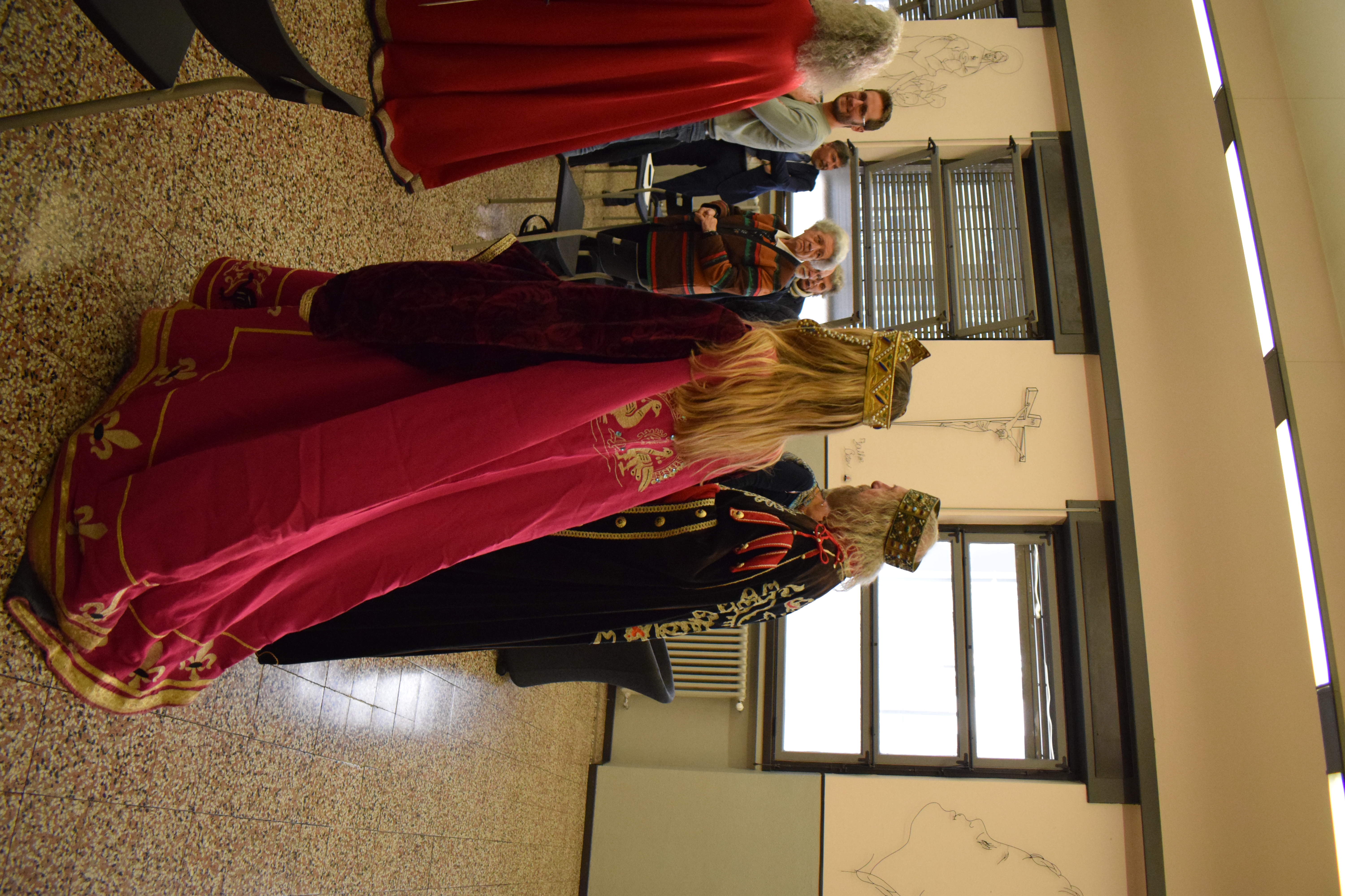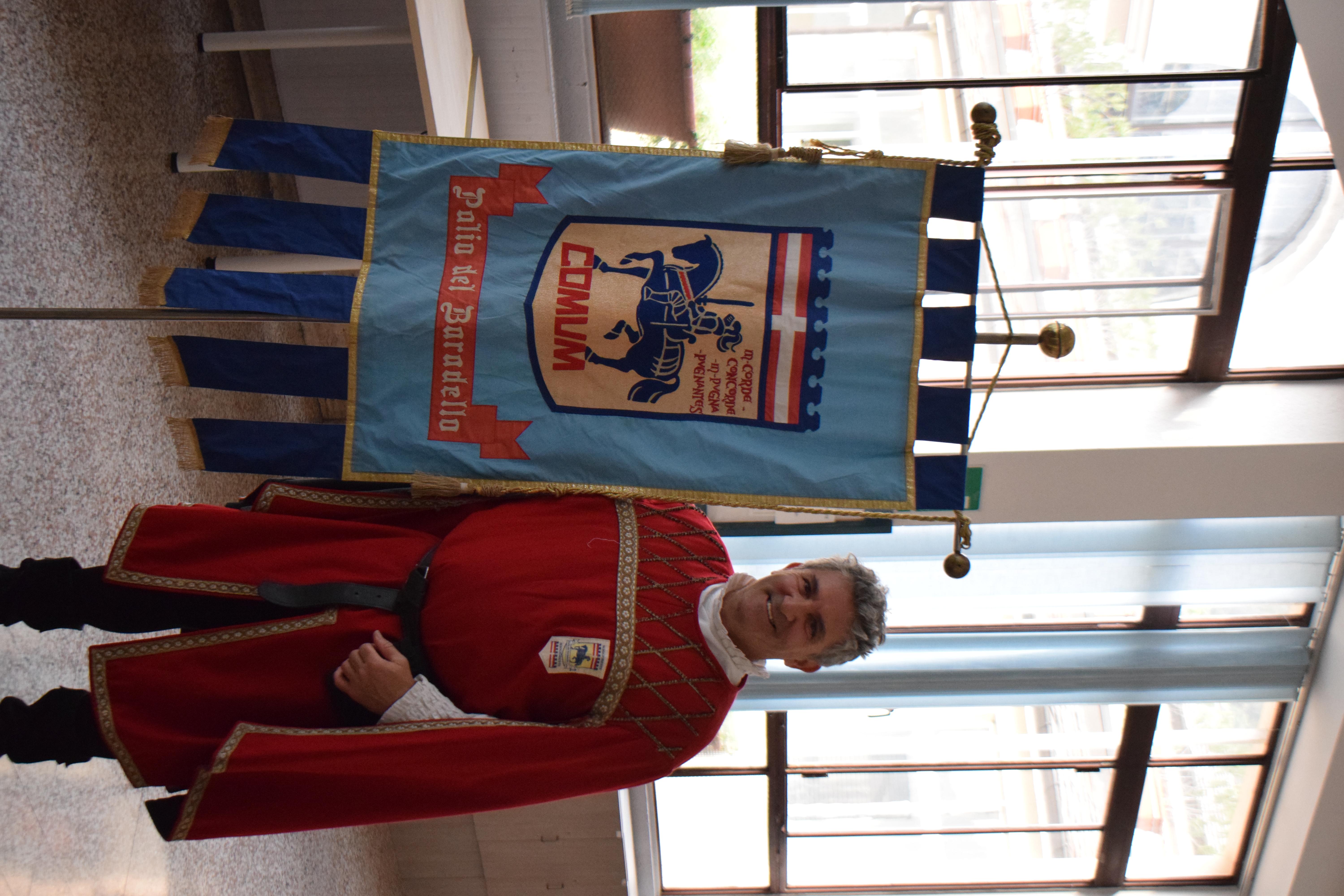 di intrecciare rigore scientifico e sensibilità narrativa, restituendo al pubblico figure storiche complesse con profondità e chiarezza. Ritrovarsi al suo cospetto con l’imperatore e l’imperatrice impersonati dai rievocatori del Palio del Baradello ha creato un momento di forte suggestione, quasi un ponte simbolico tra la ricerca storica e la storia rievocata, tra studio e memoria viva.