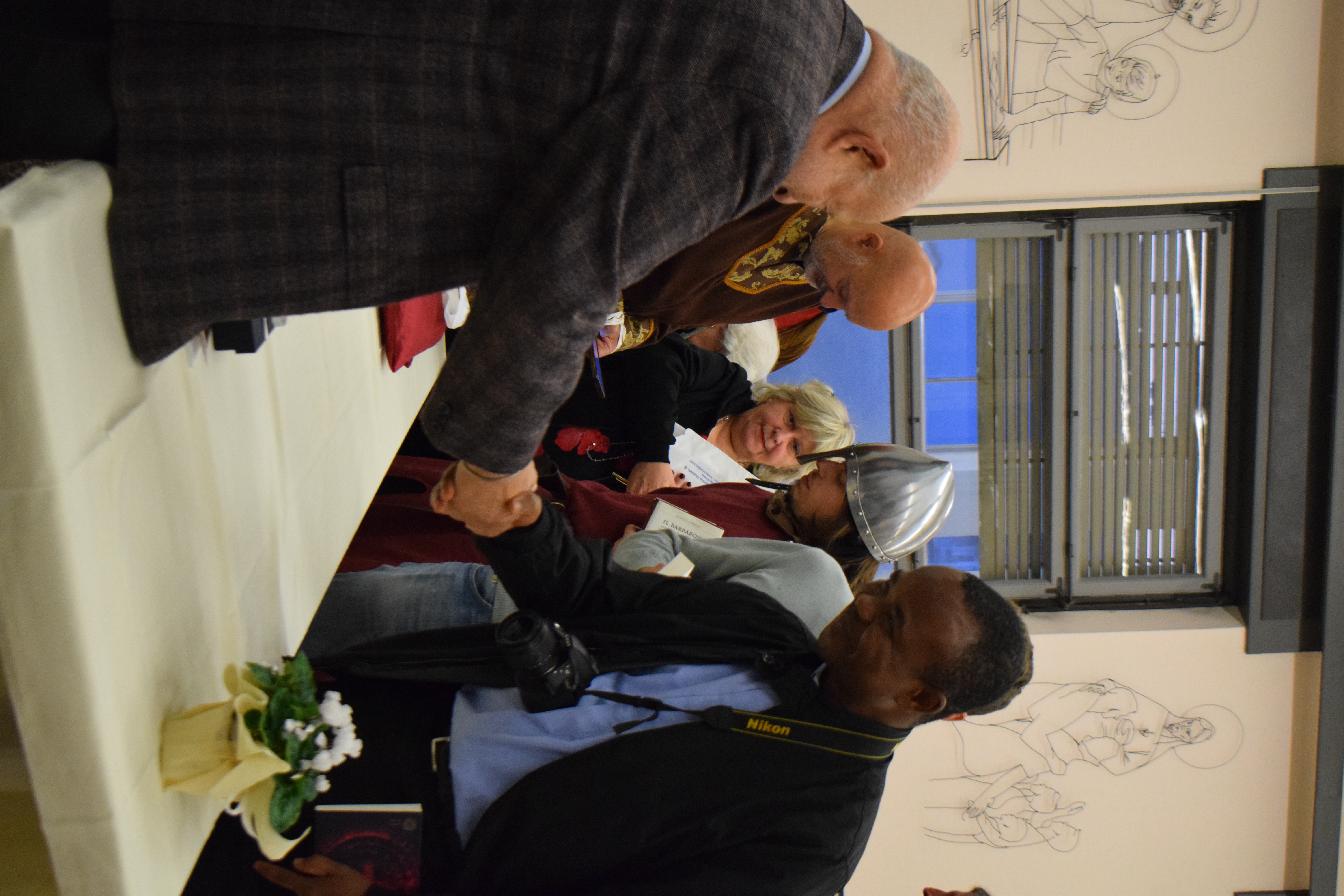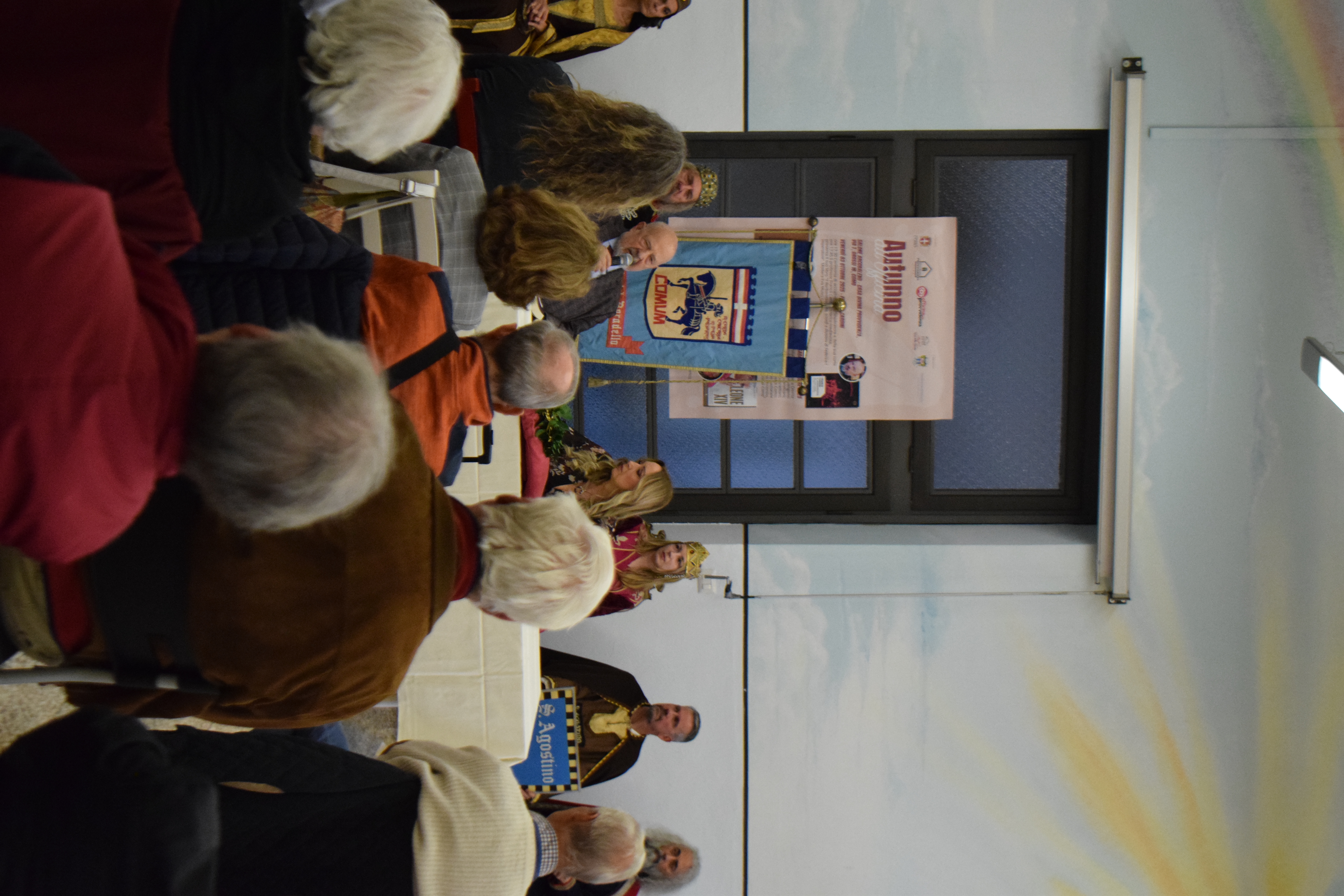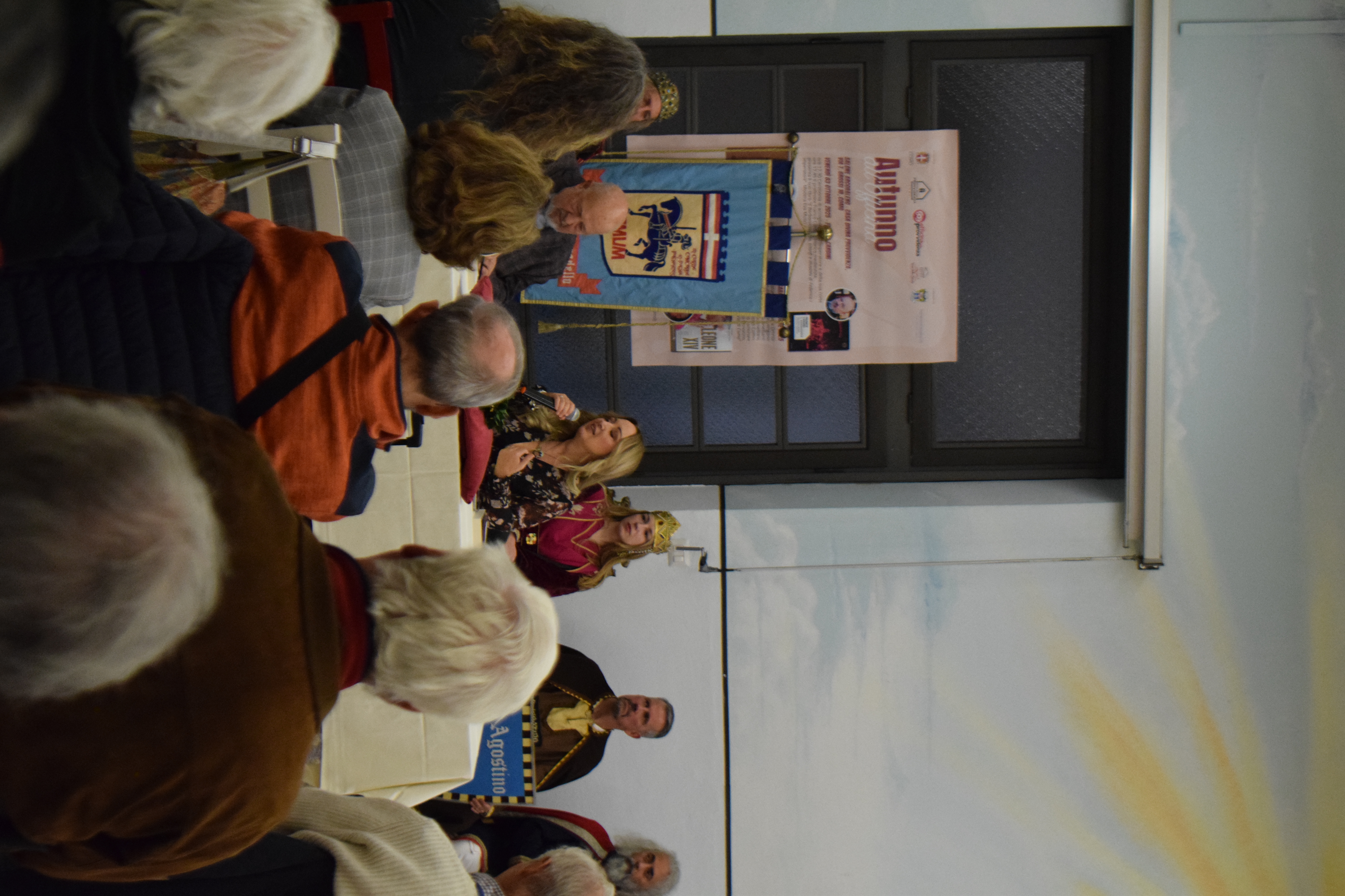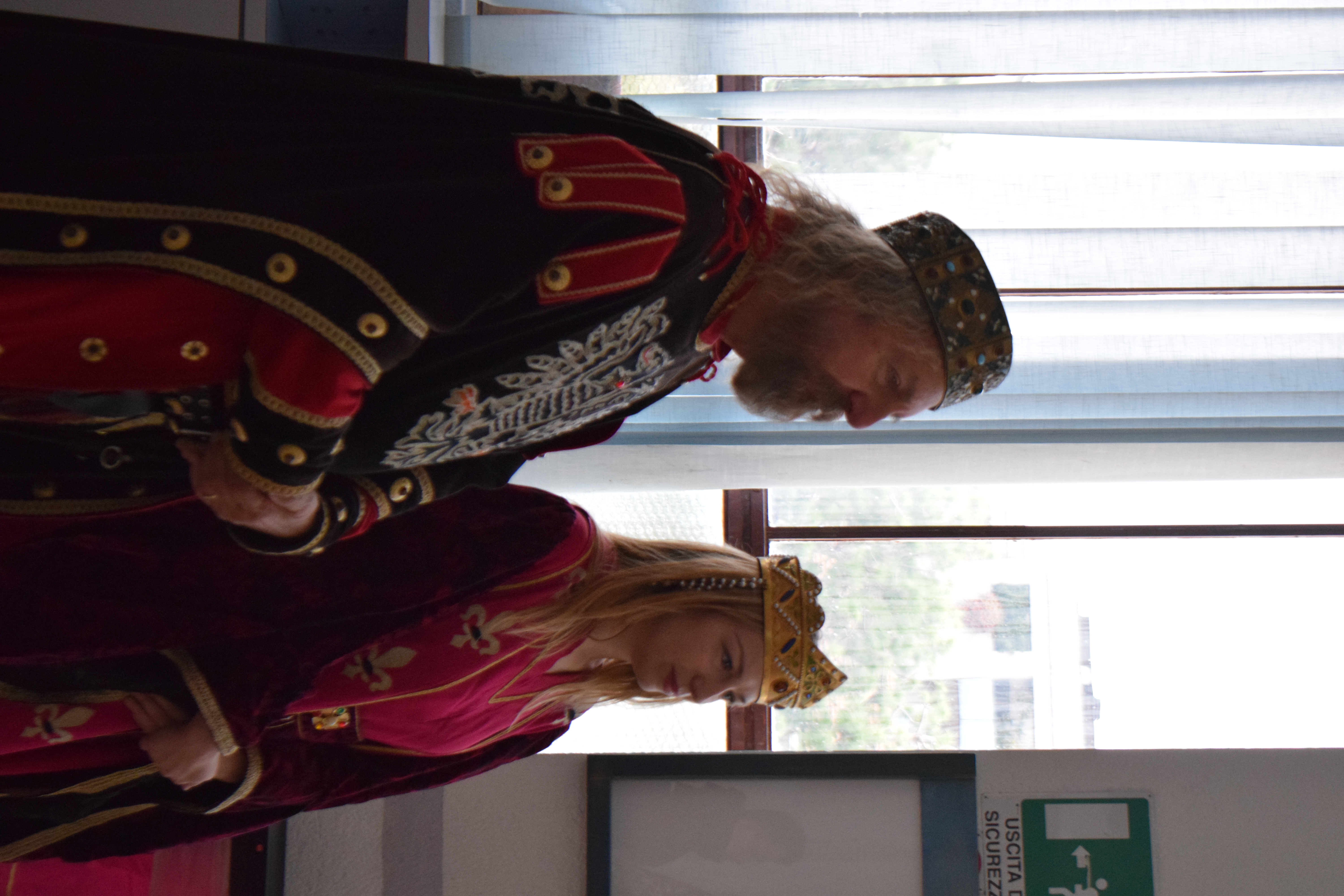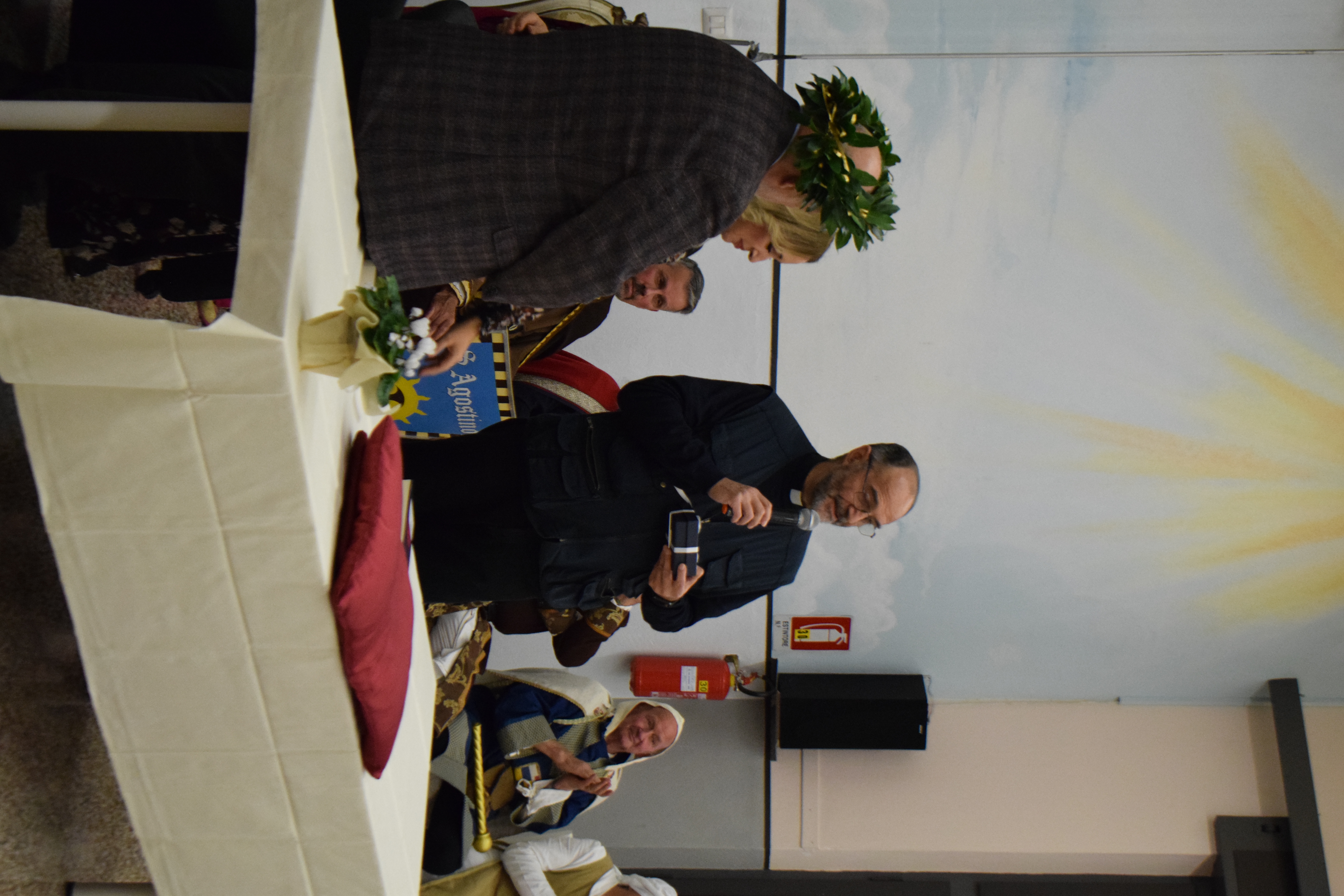 di intrecciare rigore scientifico e sensibilità narrativa, restituendo al pubblico figure storiche complesse con profondità e chiarezza. Ritrovarsi al suo cospetto con l’imperatore e l’imperatrice impersonati dai rievocatori del Palio del Baradello ha creato un momento di forte suggestione, quasi un ponte simbolico tra la ricerca storica e la storia rievocata, tra studio e memoria viva.