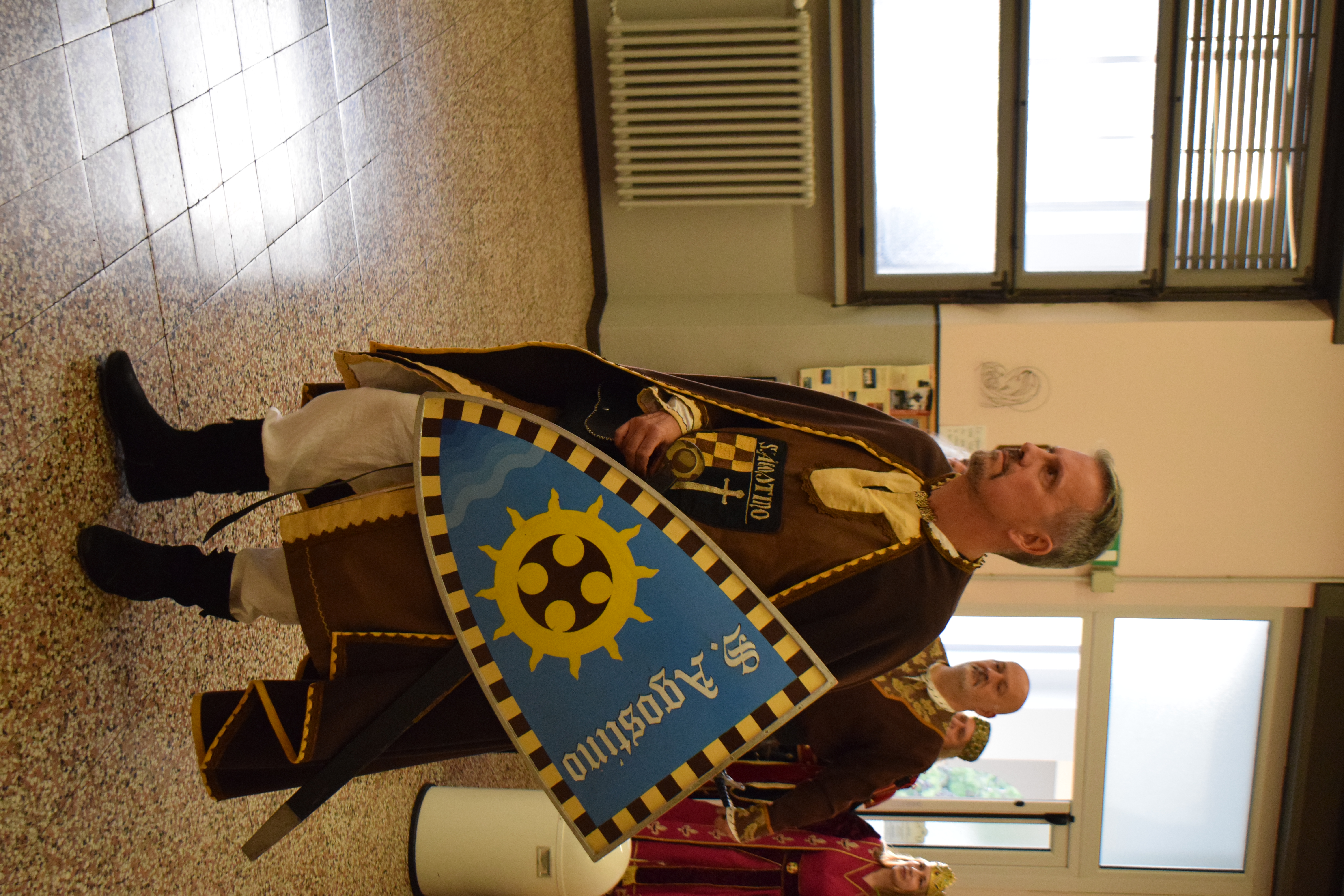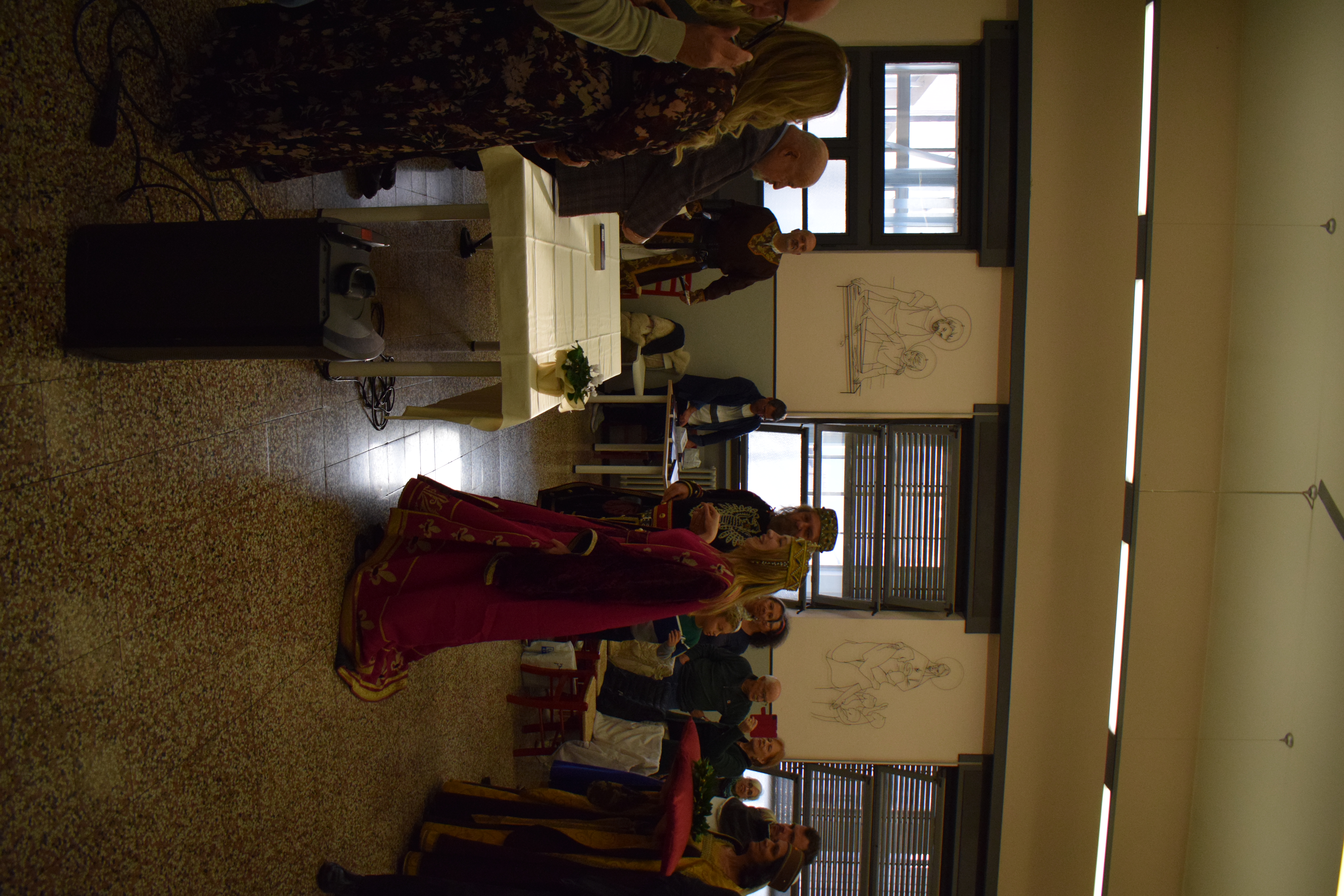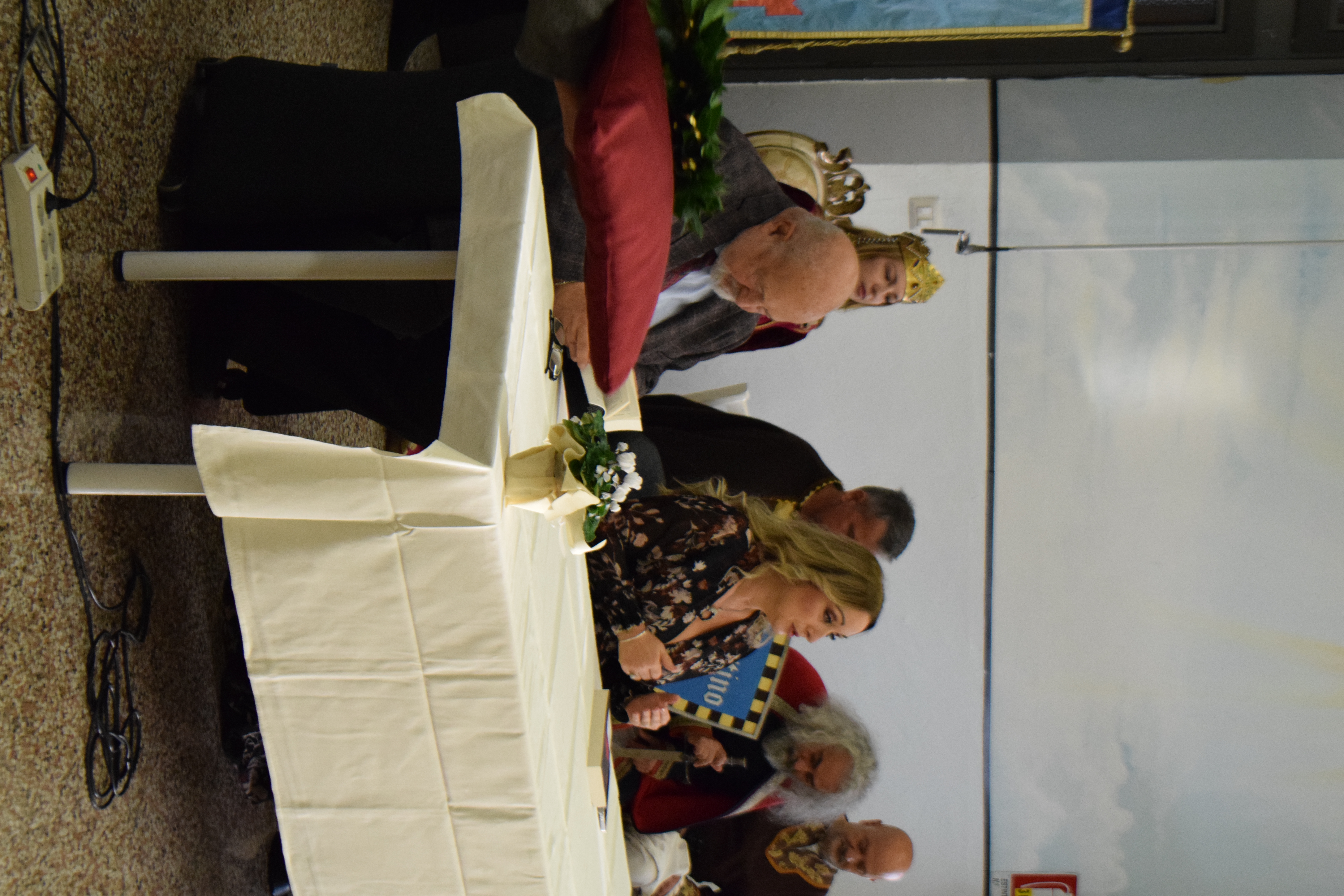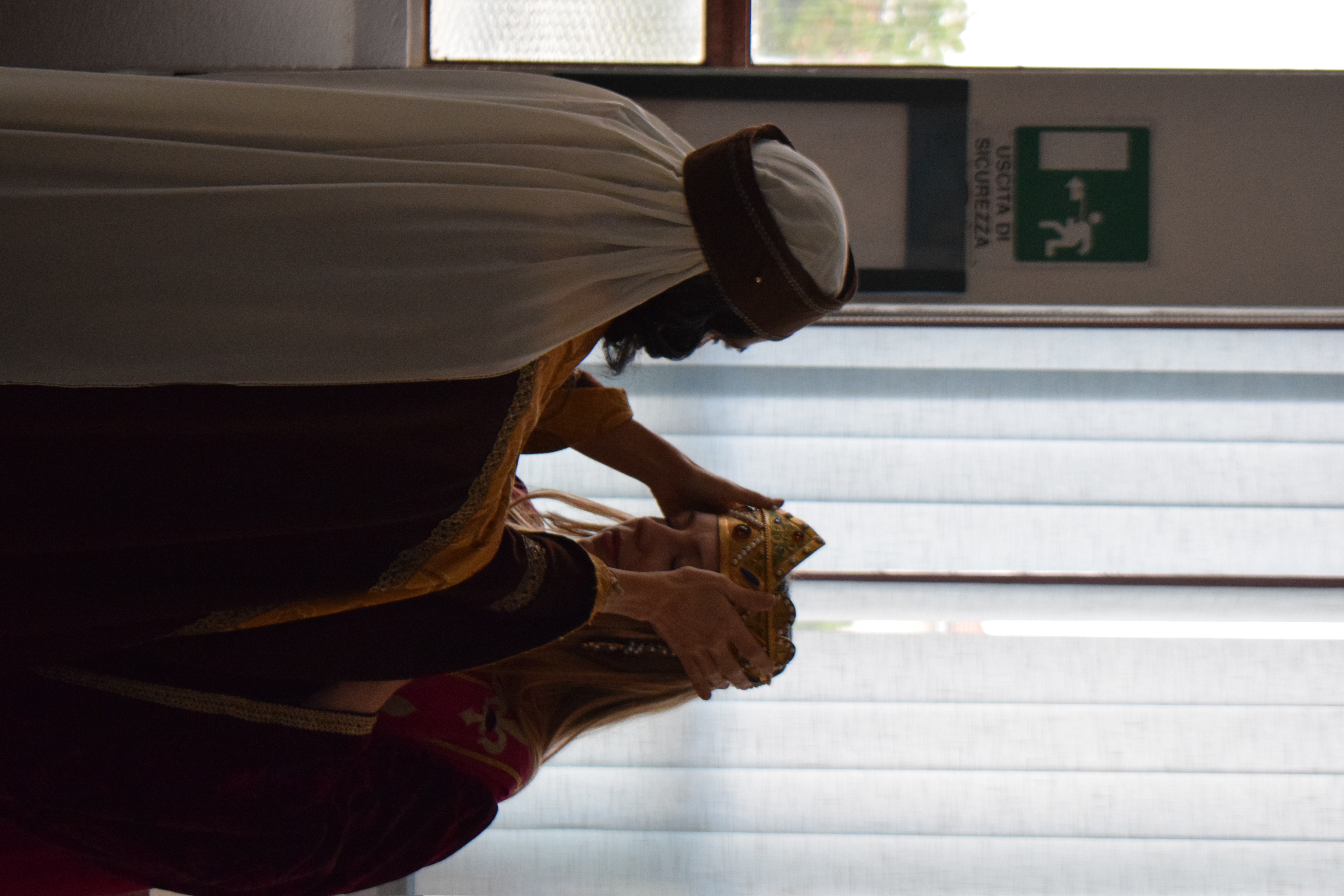 di intrecciare rigore scientifico e sensibilità narrativa, restituendo al pubblico figure storiche complesse con profondità e chiarezza. Ritrovarsi al suo cospetto con l’imperatore e l’imperatrice impersonati dai rievocatori del Palio del Baradello ha creato un momento di forte suggestione, quasi un ponte simbolico tra la ricerca storica e la storia rievocata, tra studio e memoria viva.