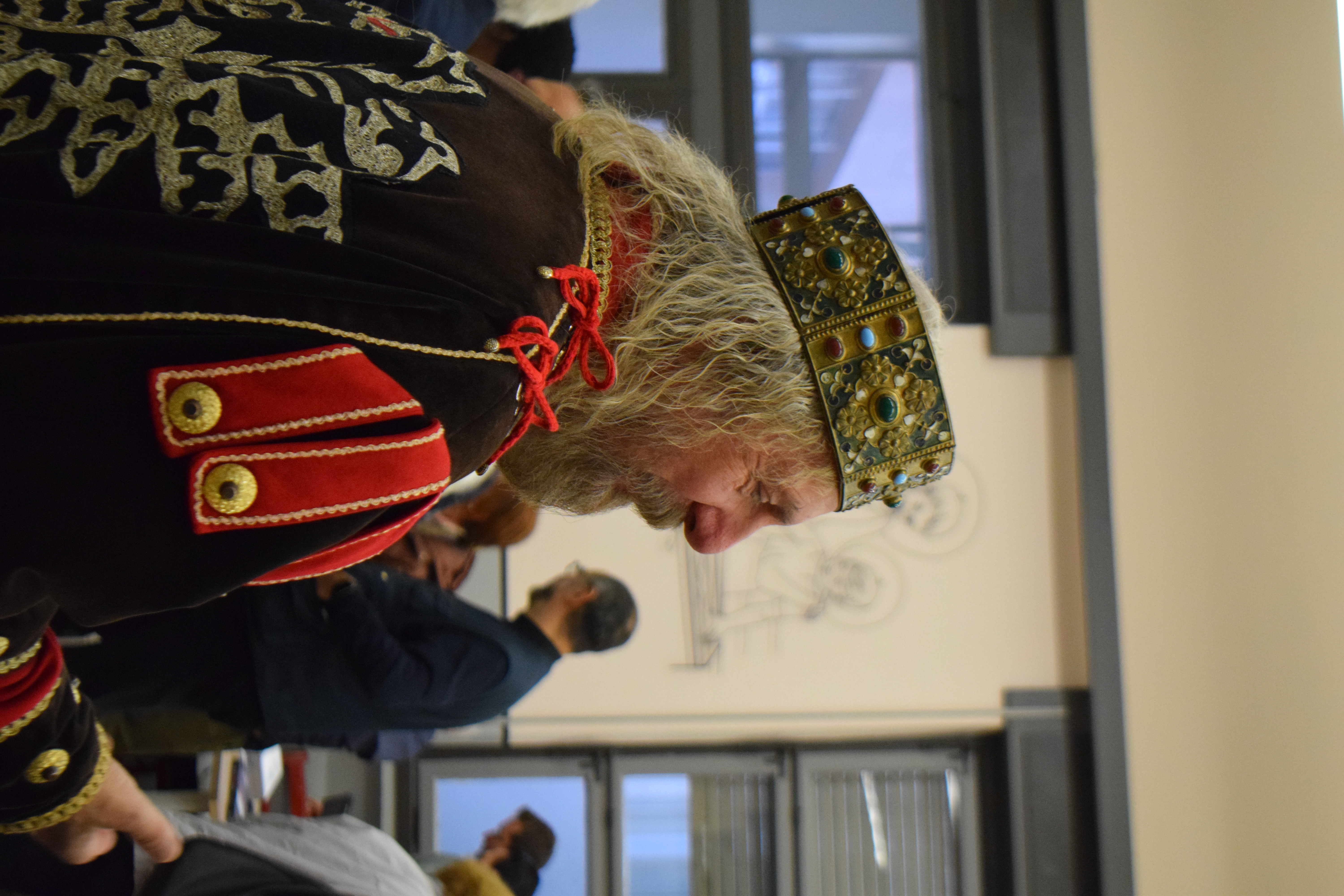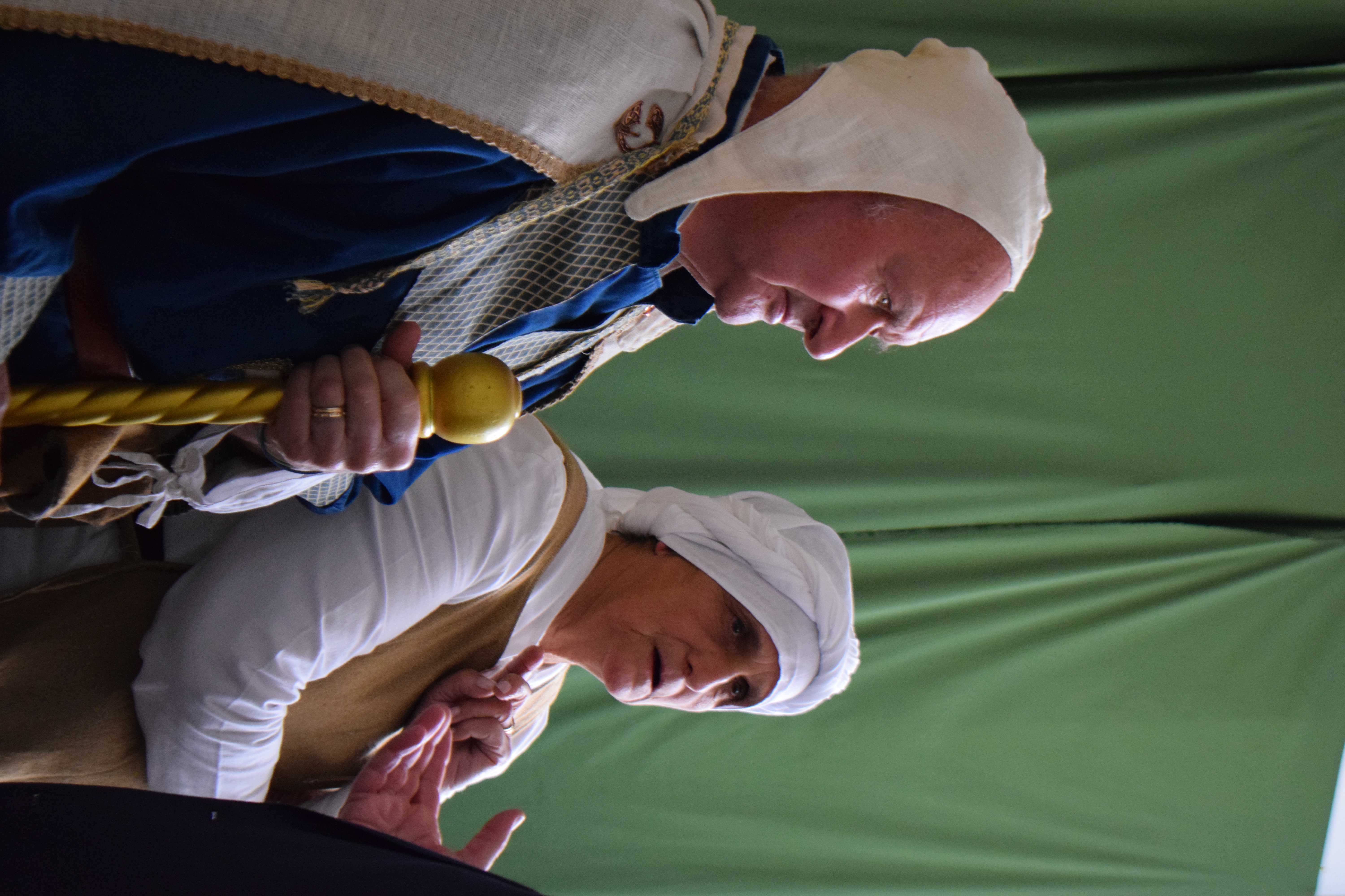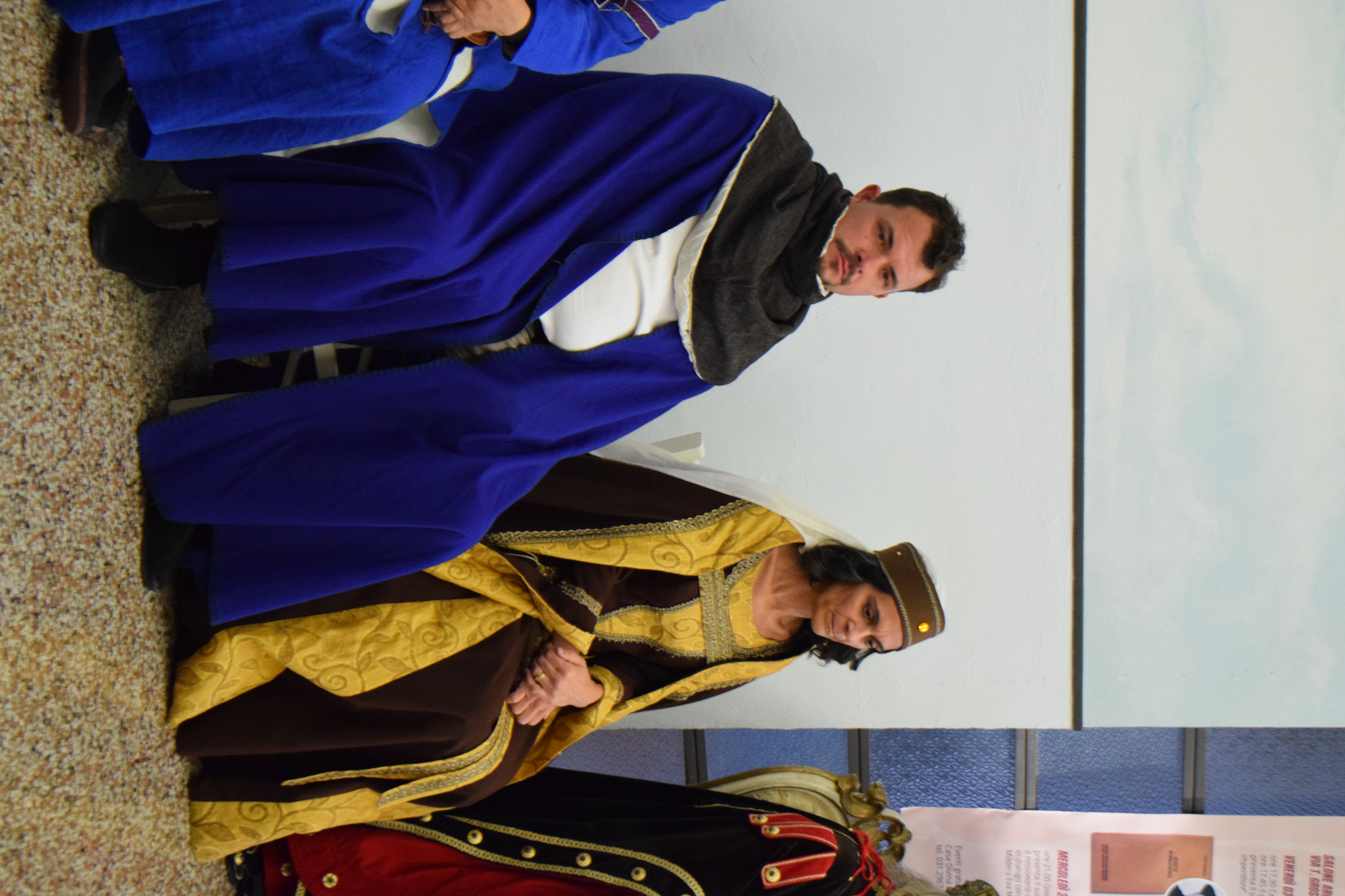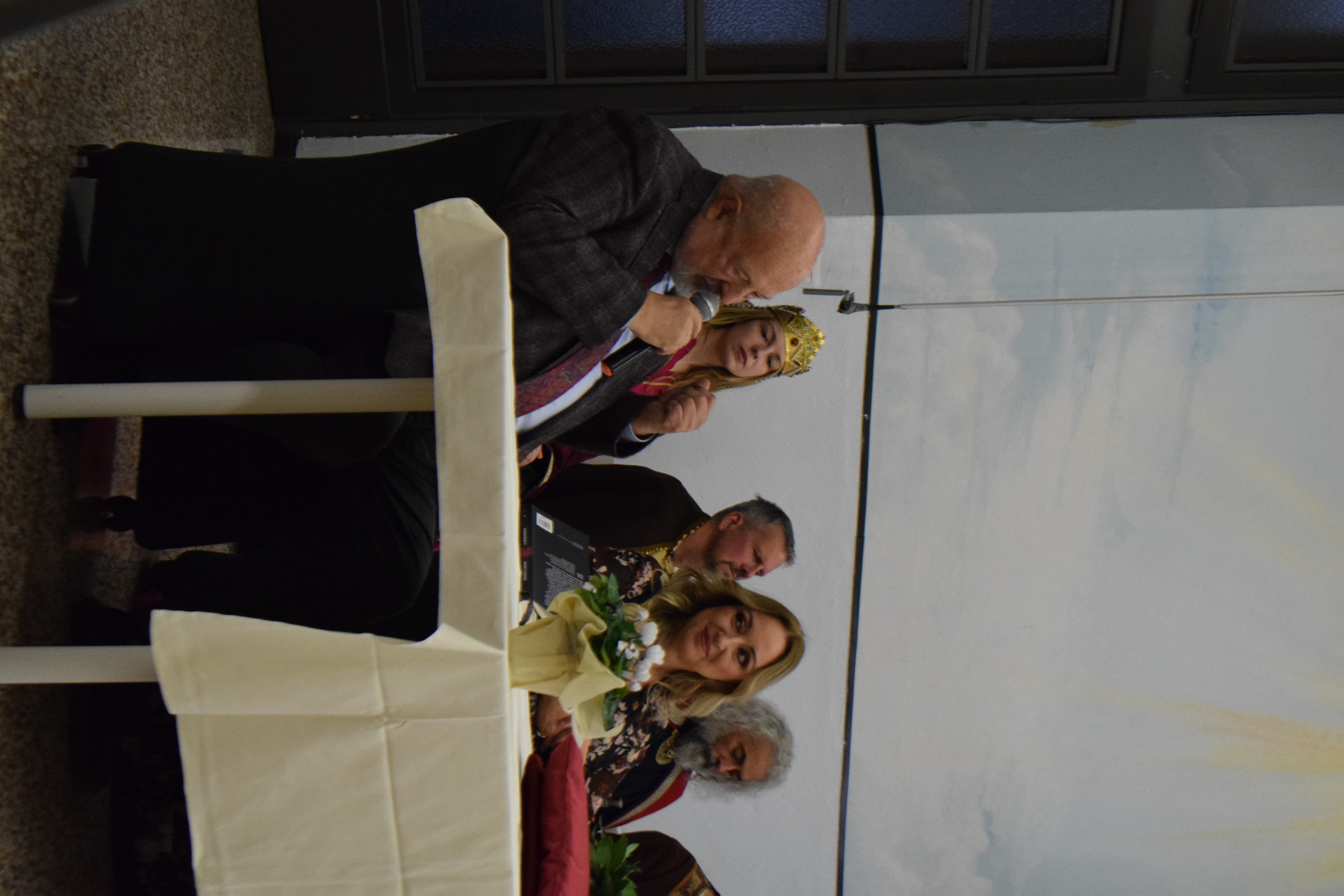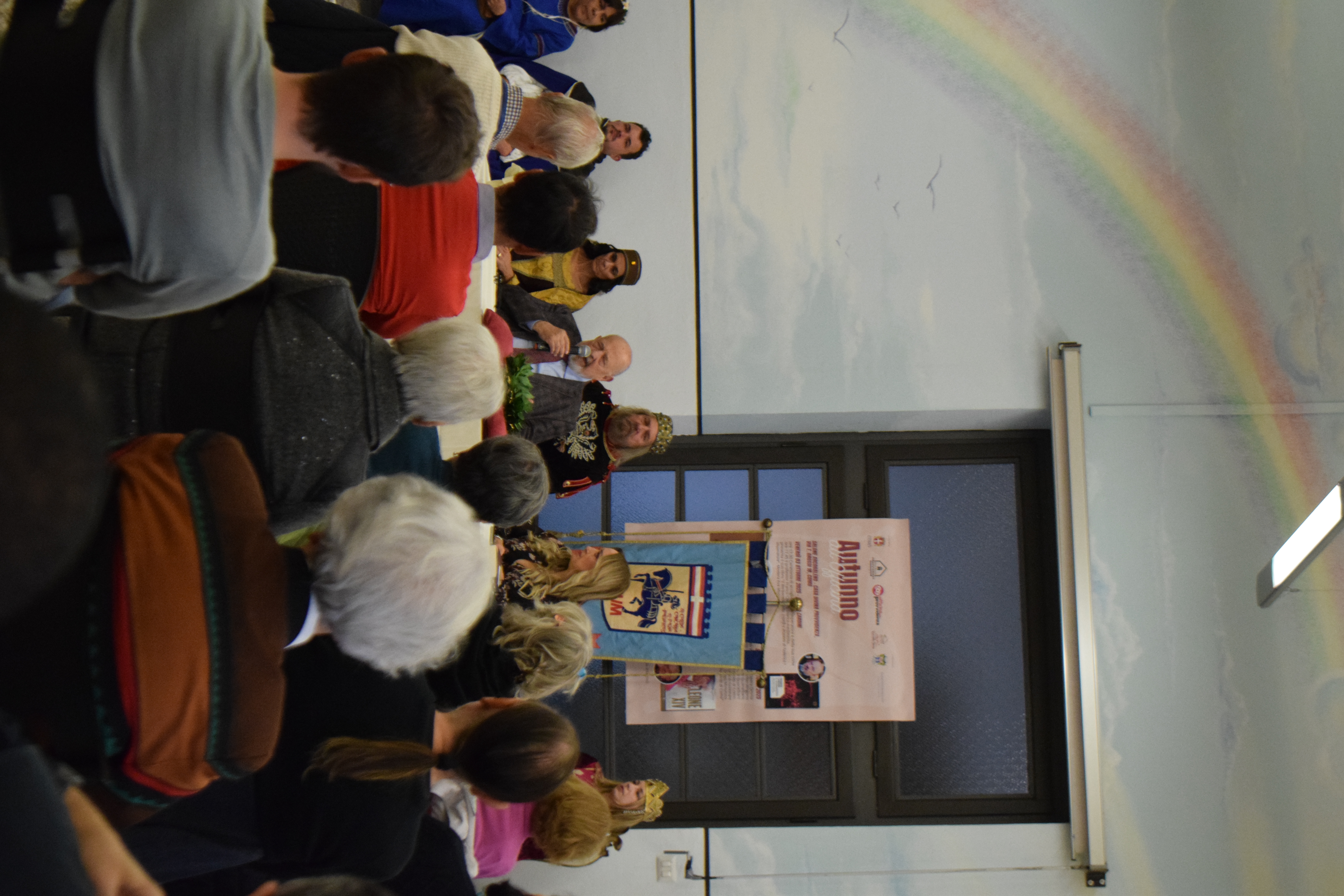 di intrecciare rigore scientifico e sensibilità narrativa, restituendo al pubblico figure storiche complesse con profondità e chiarezza. Ritrovarsi al suo cospetto con l’imperatore e l’imperatrice impersonati dai rievocatori del Palio del Baradello ha creato un momento di forte suggestione, quasi un ponte simbolico tra la ricerca storica e la storia rievocata, tra studio e memoria viva.