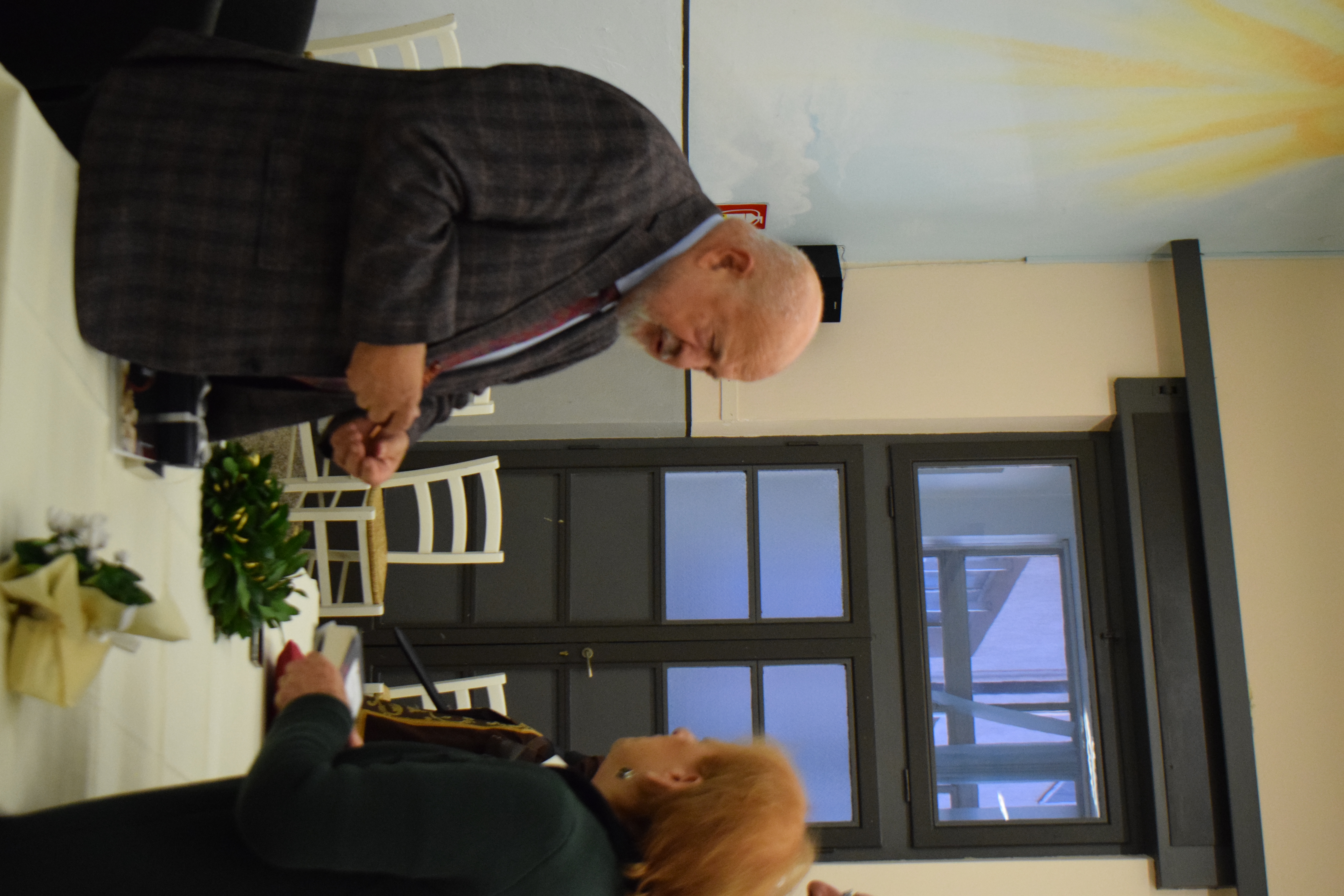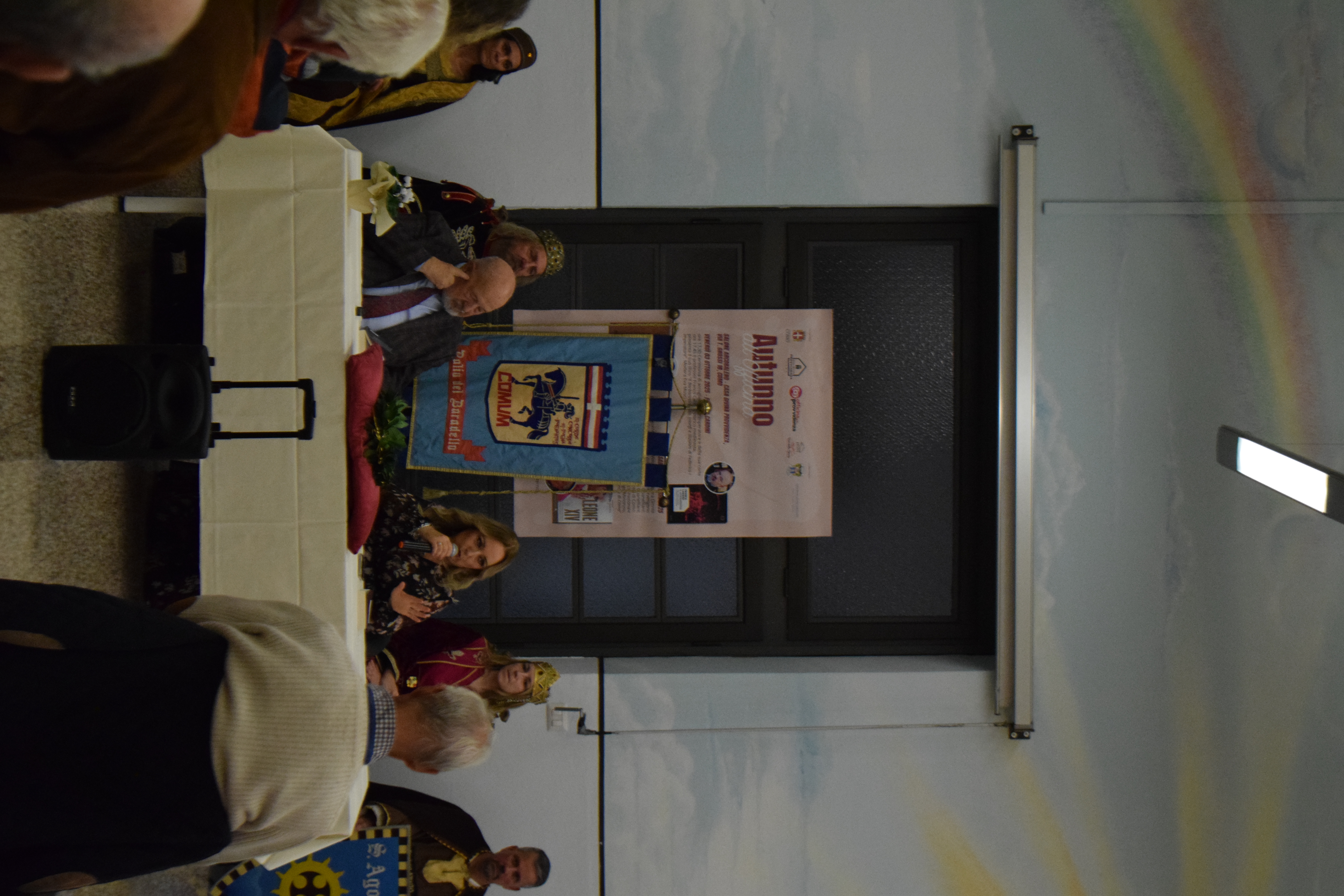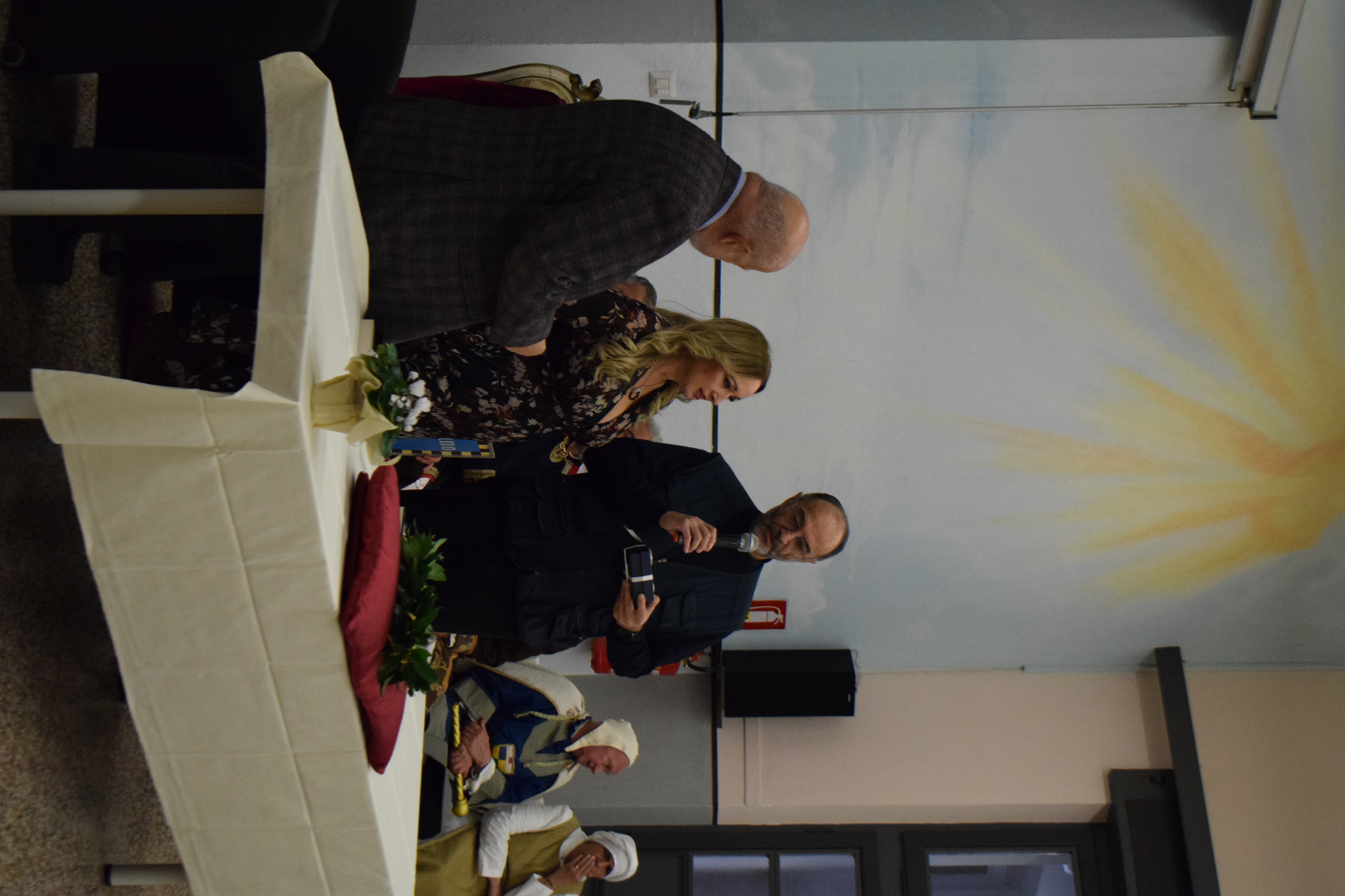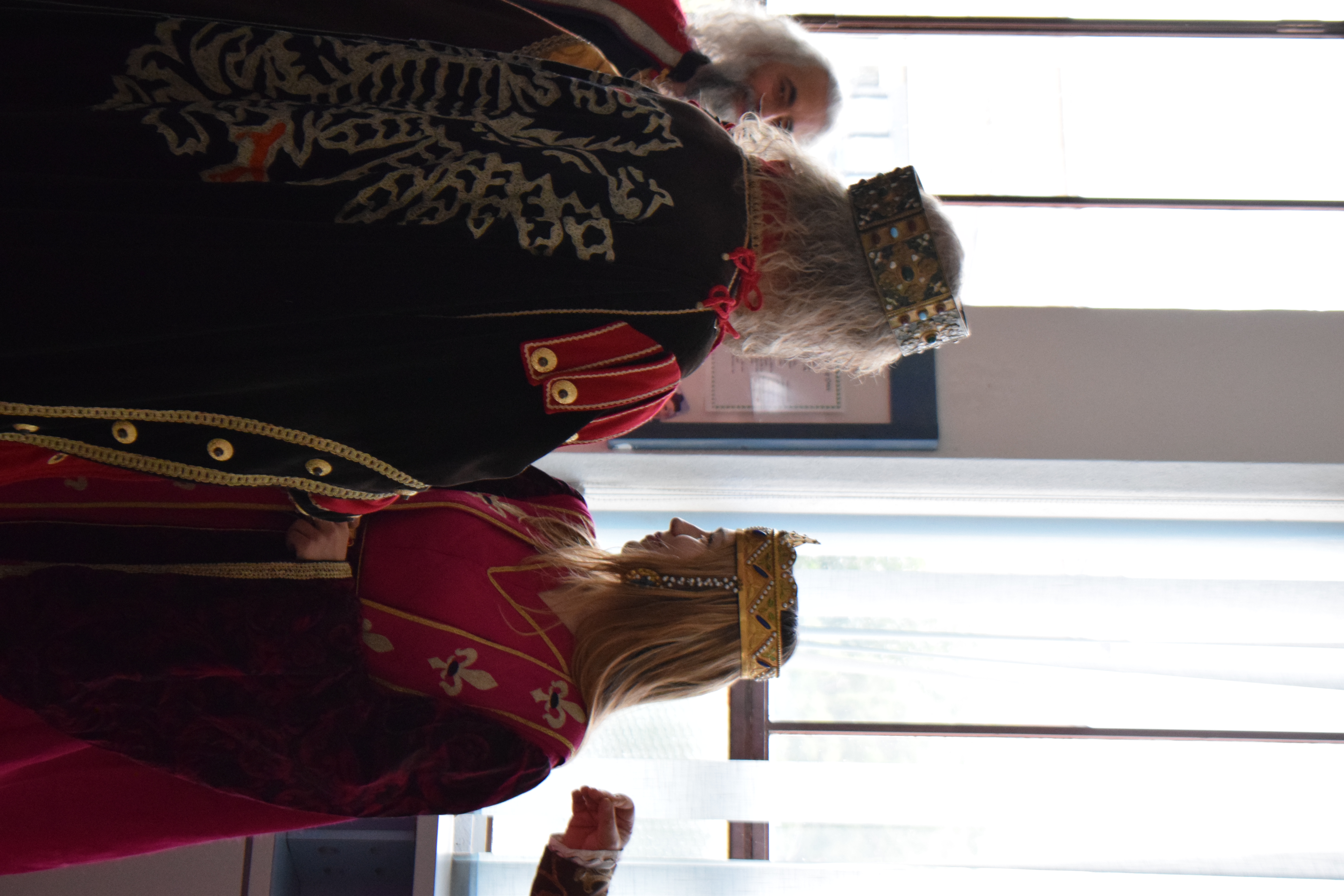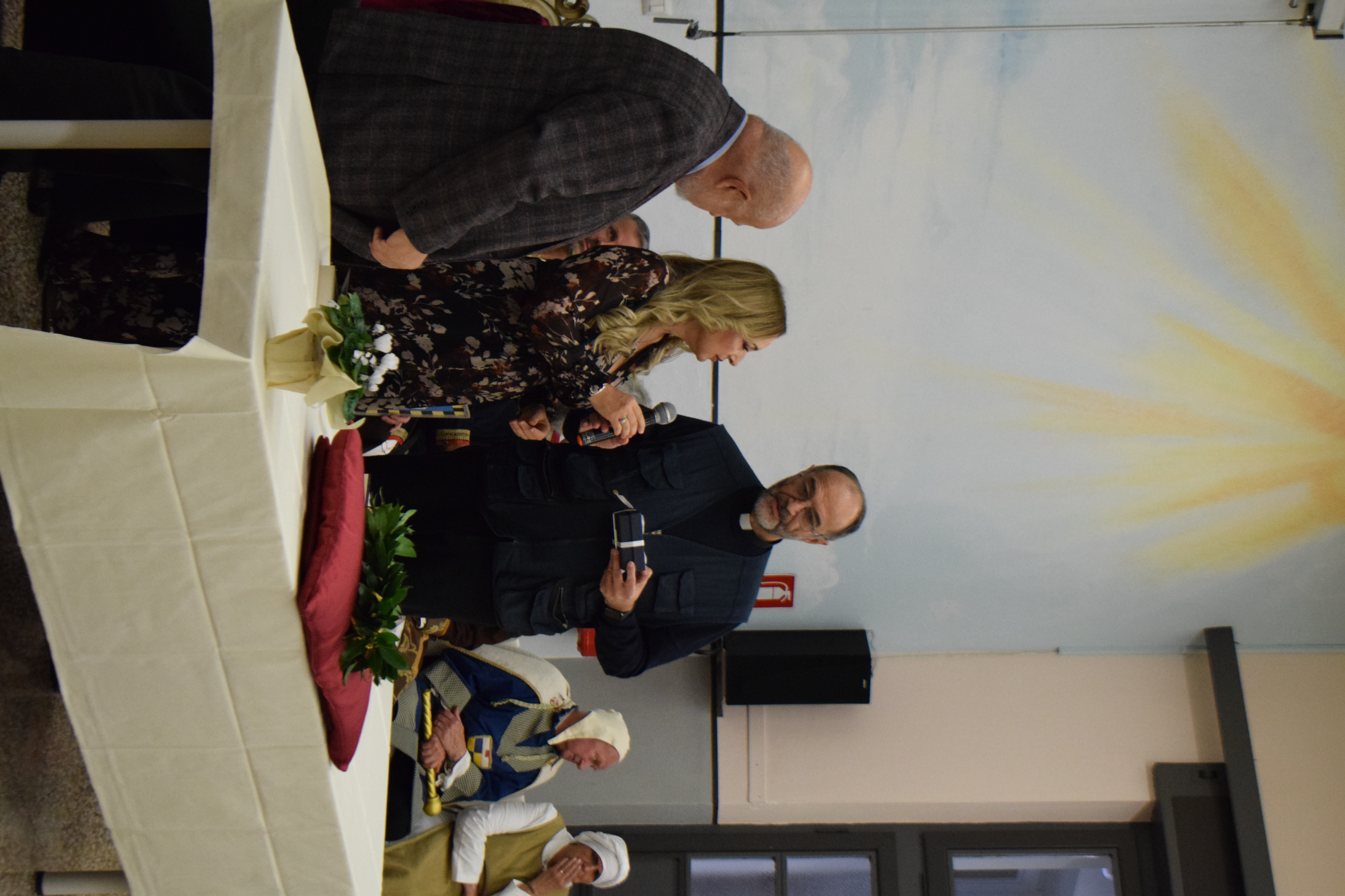 di intrecciare rigore scientifico e sensibilità narrativa, restituendo al pubblico figure storiche complesse con profondità e chiarezza. Ritrovarsi al suo cospetto con l’imperatore e l’imperatrice impersonati dai rievocatori del Palio del Baradello ha creato un momento di forte suggestione, quasi un ponte simbolico tra la ricerca storica e la storia rievocata, tra studio e memoria viva.