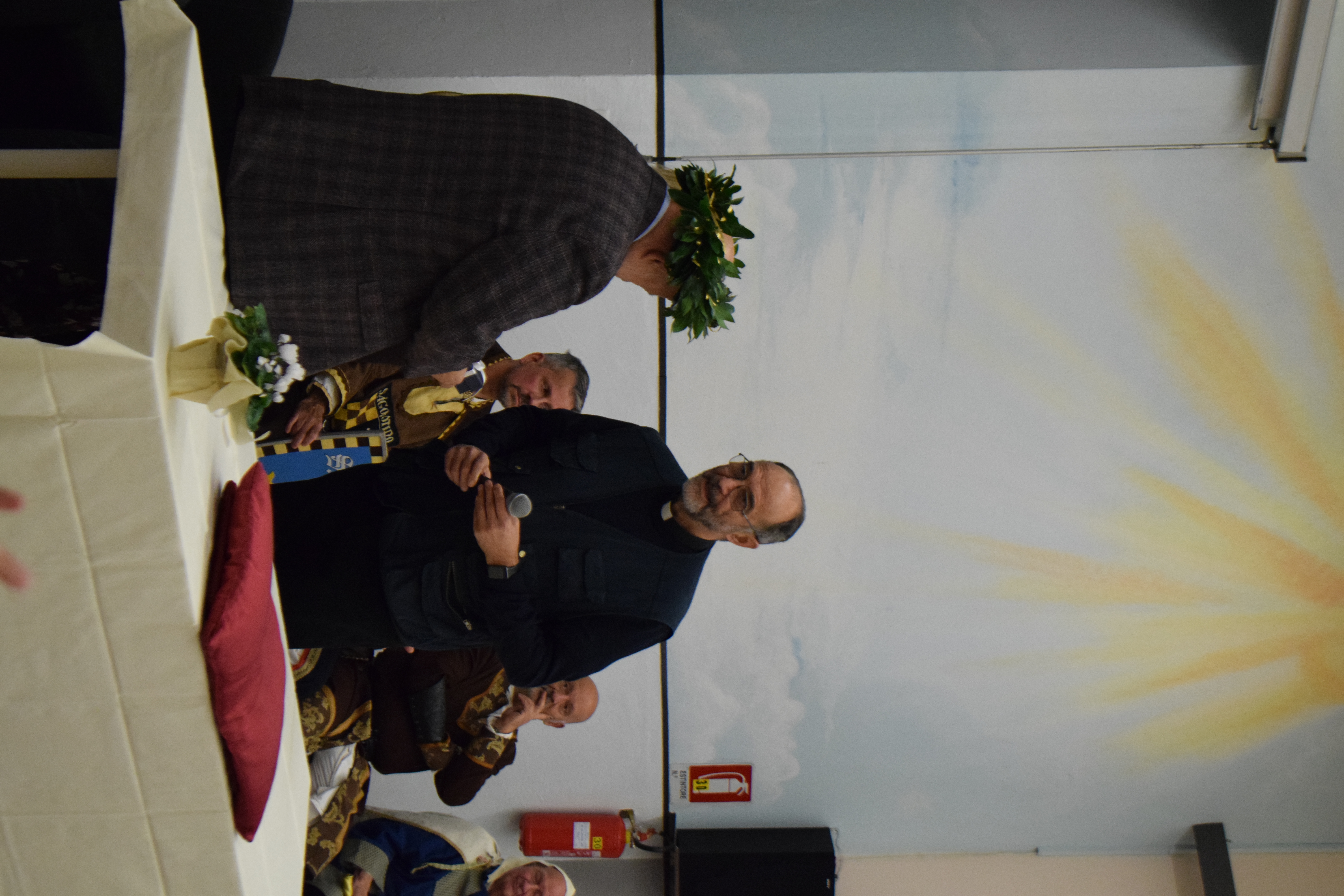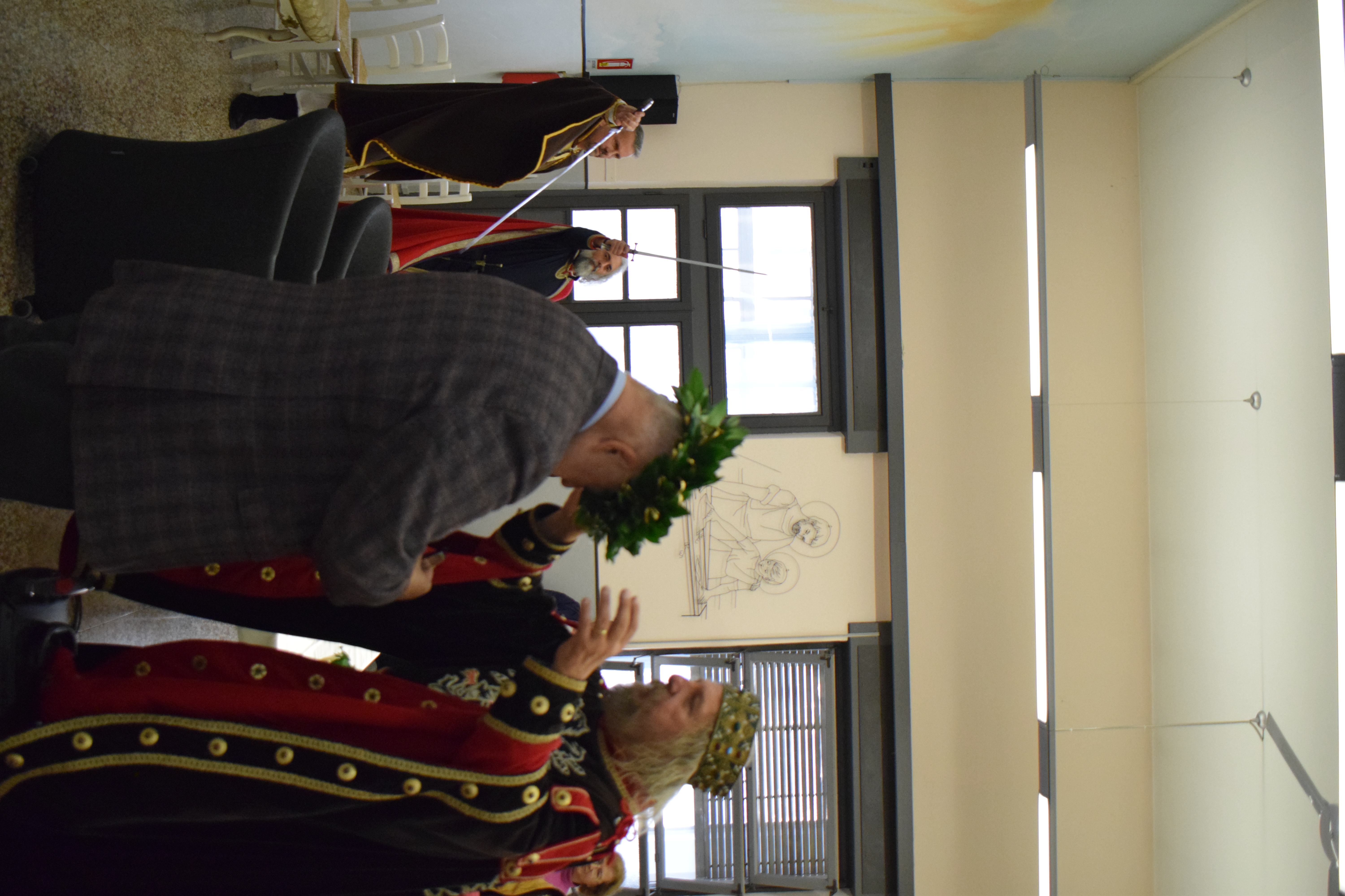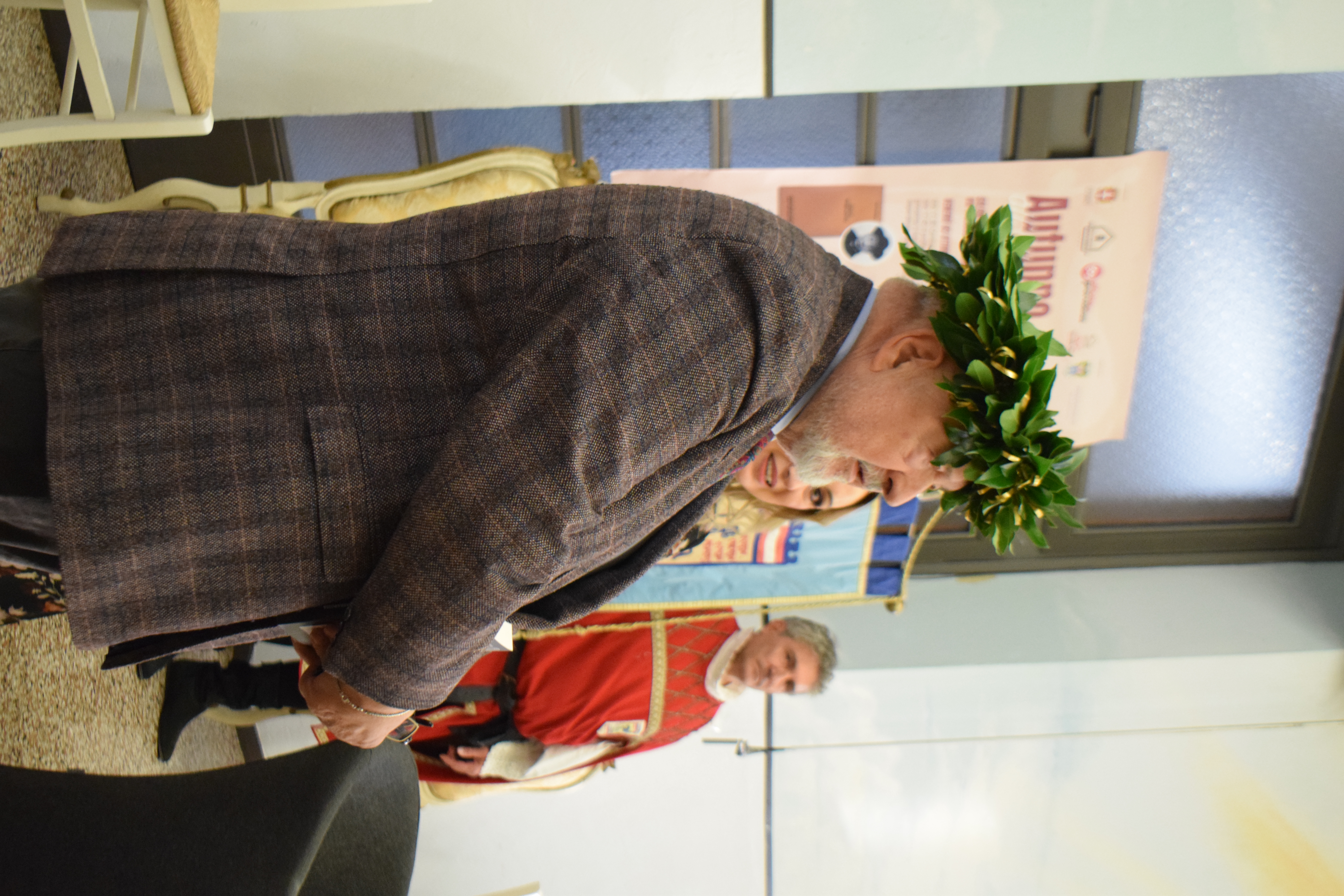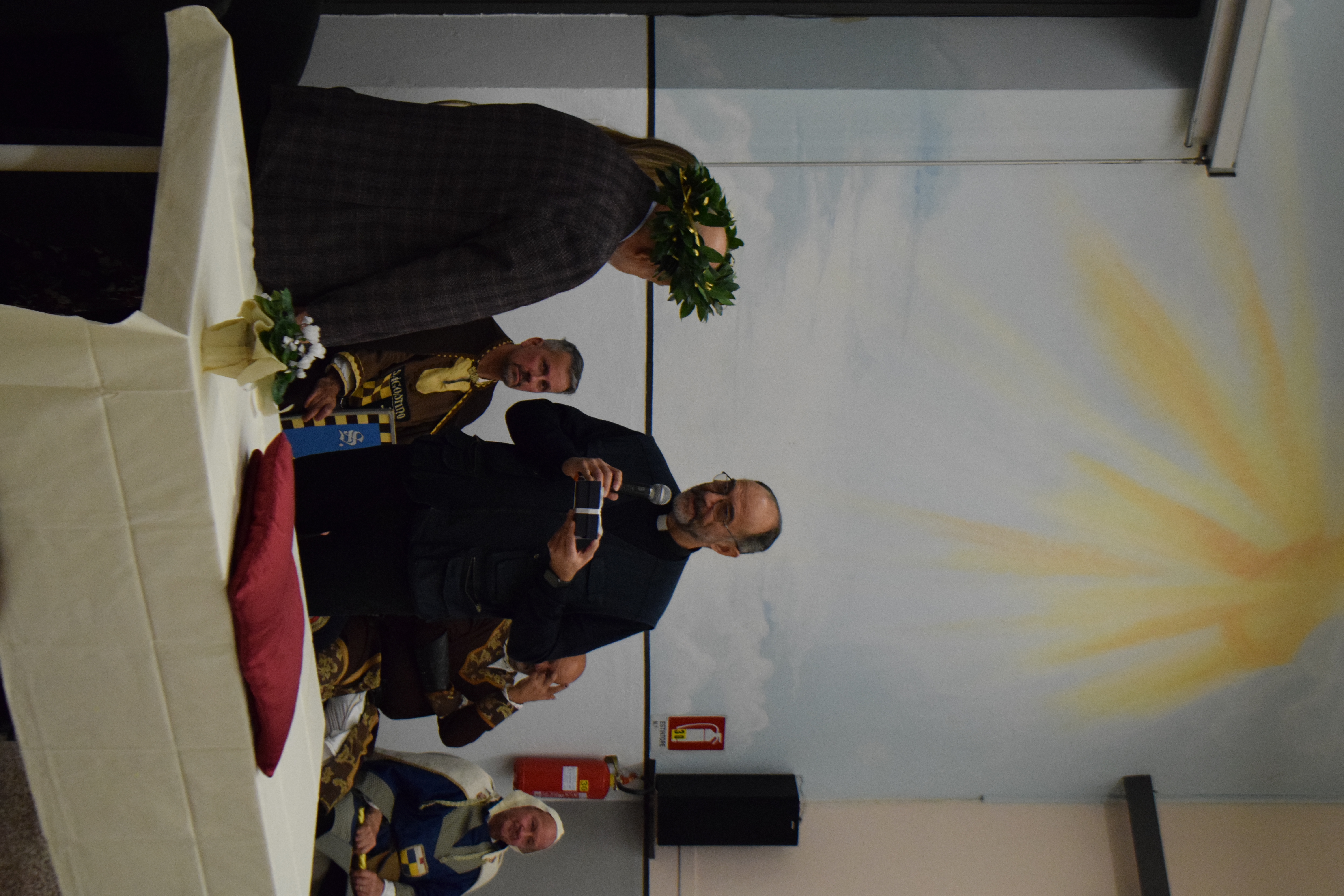 Uno dei passaggi più emozionanti dell’incontro è stato l’atto solenne con cui Federico Barbarossa ha “incoronato” Franco Cardini con una corona d’alloro, gesto carico di significato.