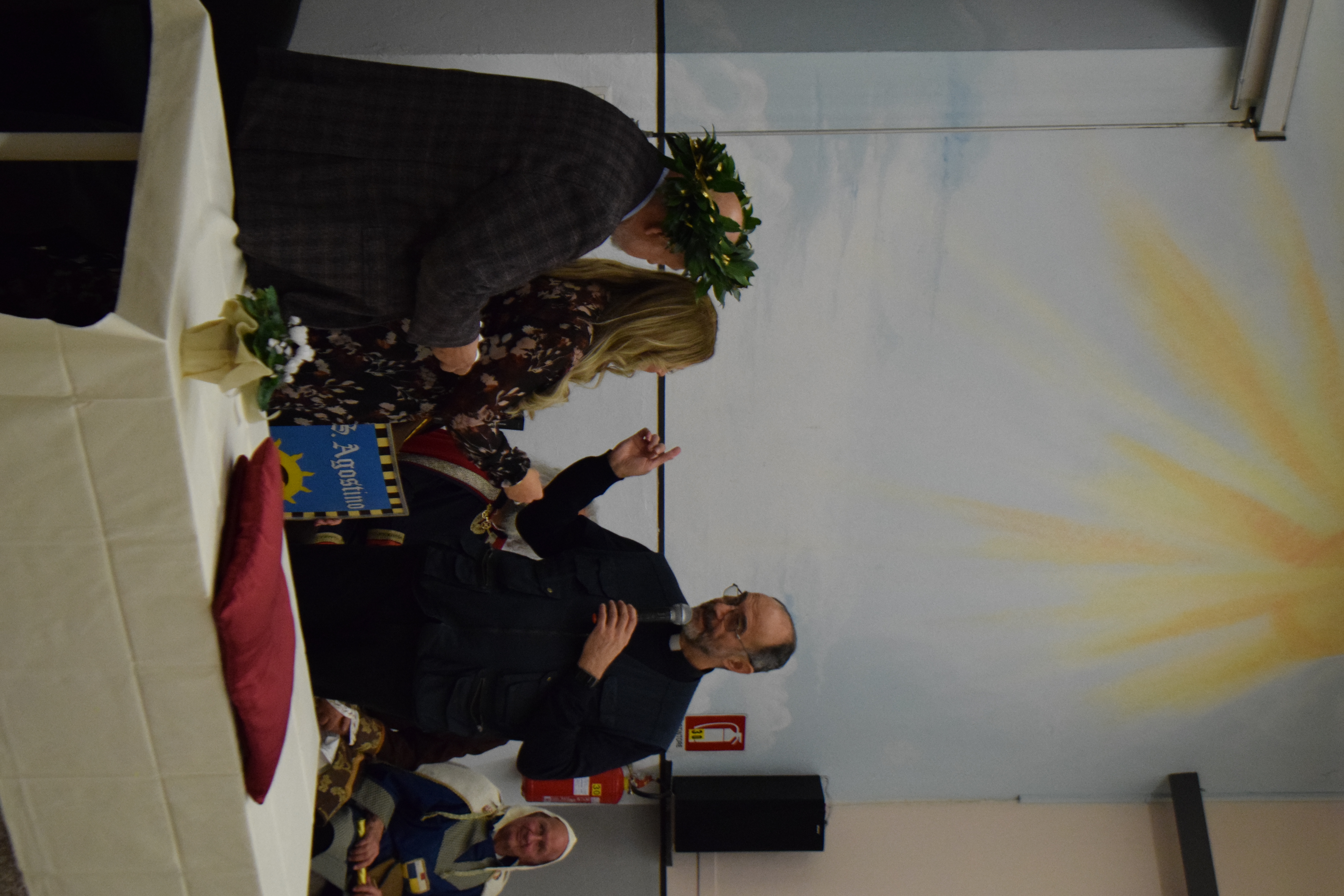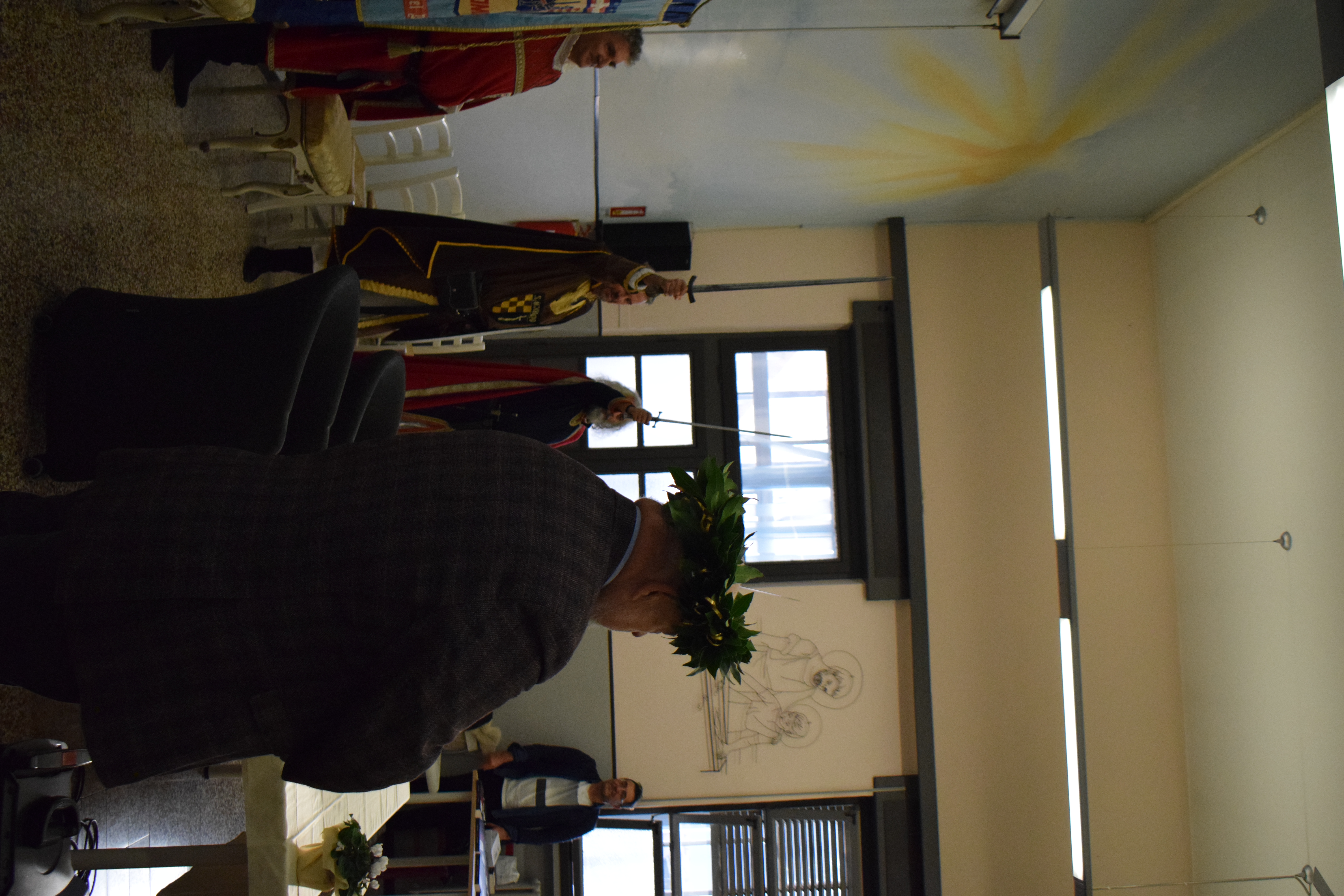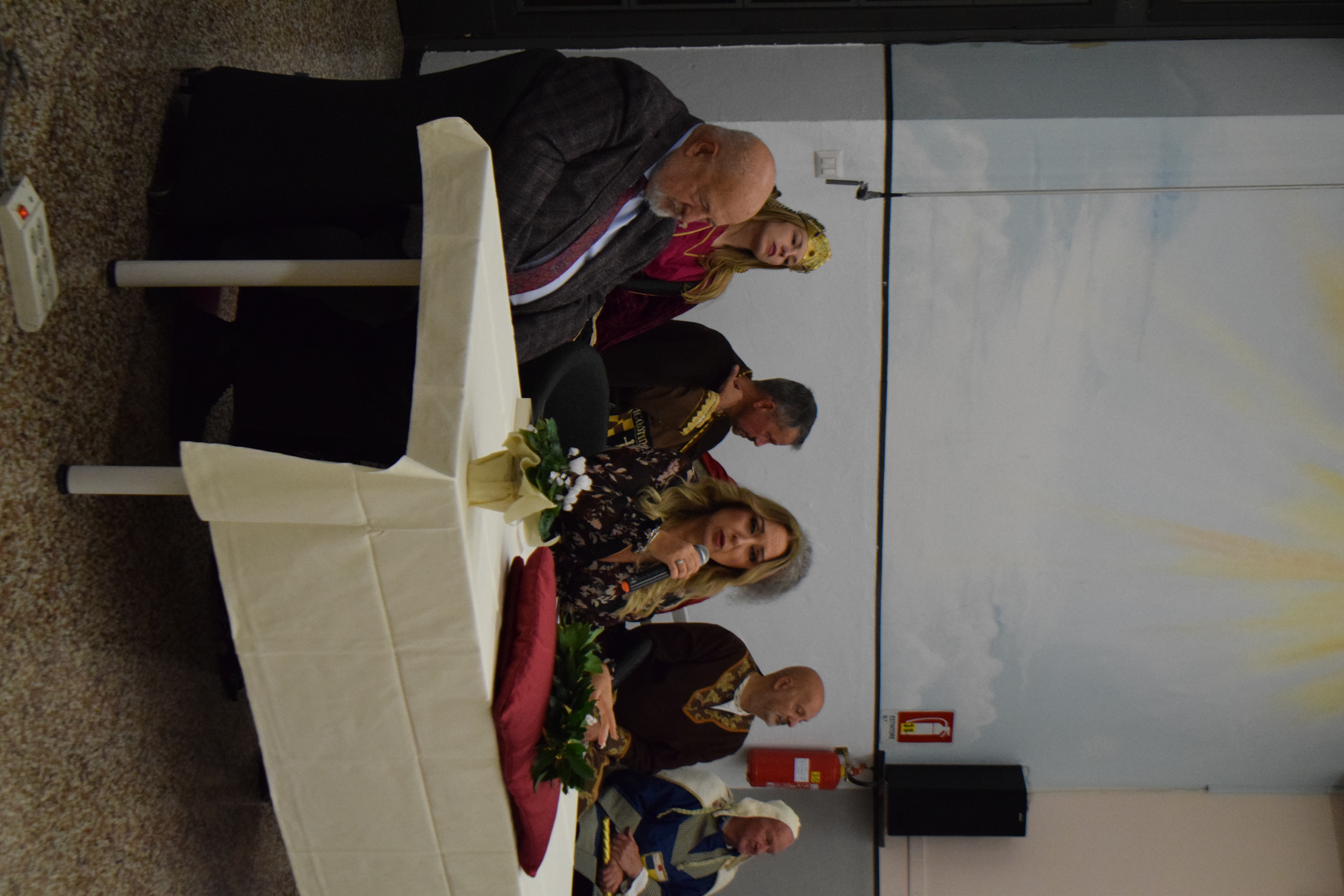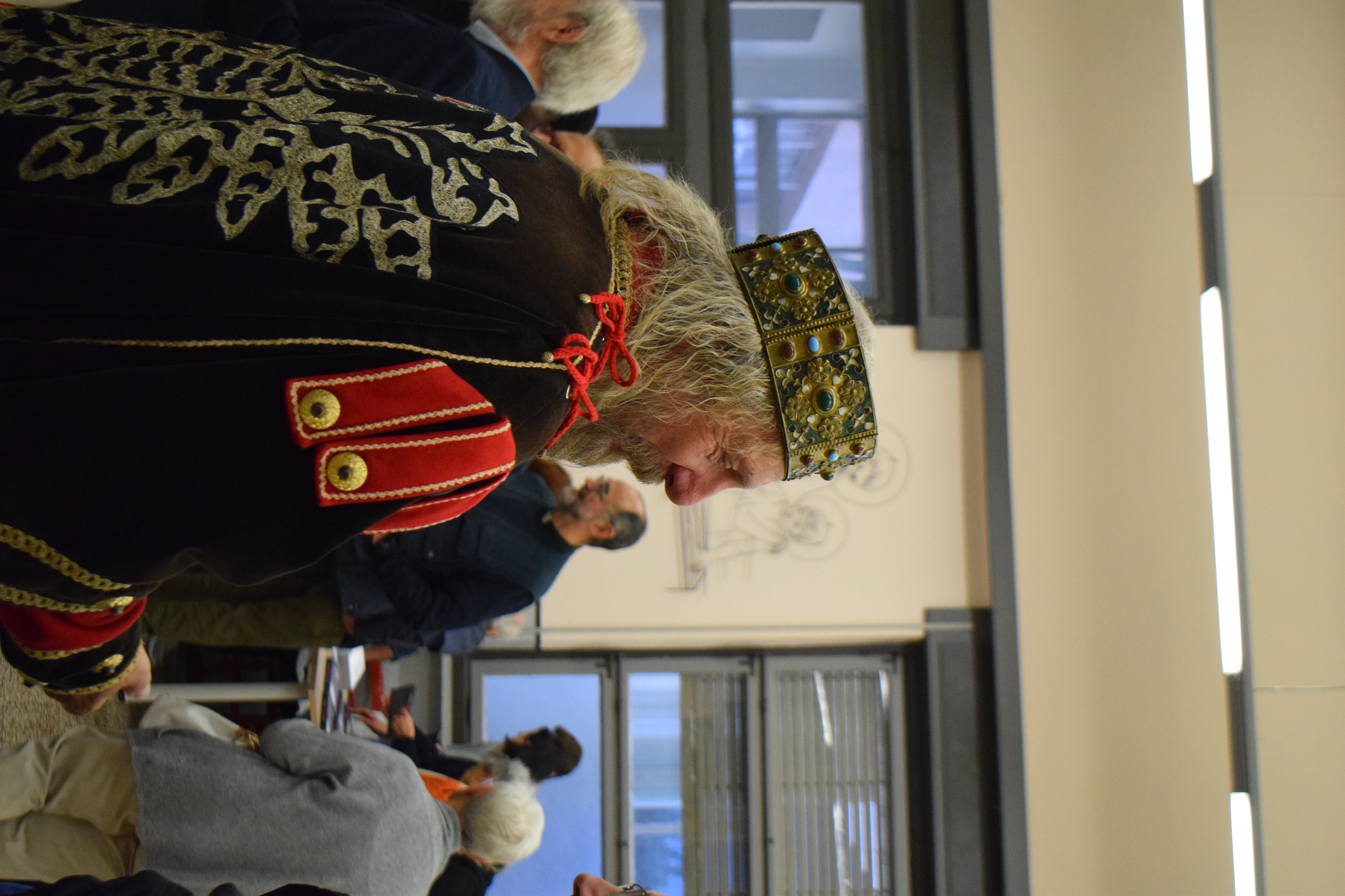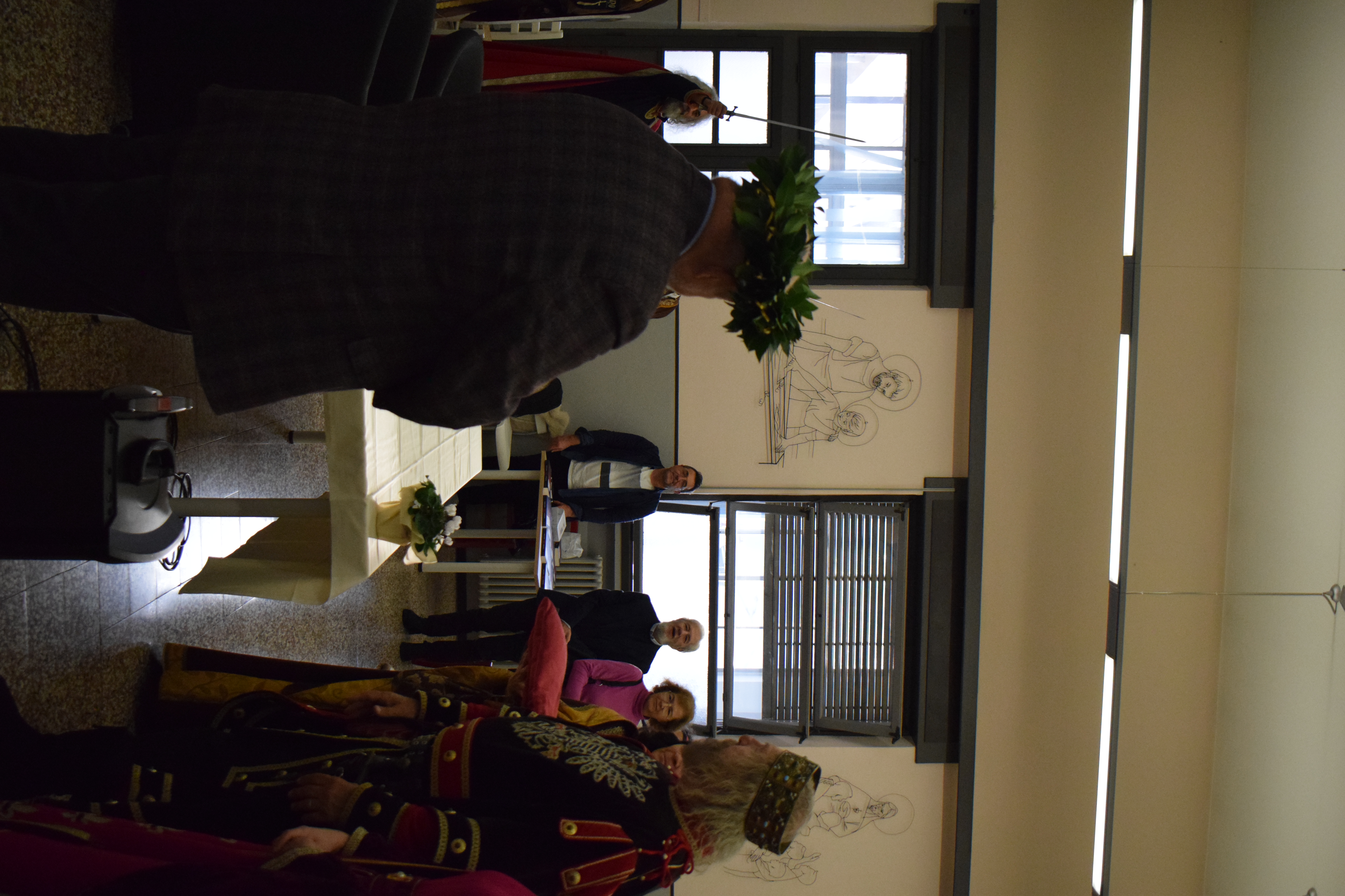 Uno dei passaggi più emozionanti dell’incontro è stato l’atto solenne con cui Federico Barbarossa ha “incoronato” Franco Cardini con una corona d’alloro, gesto carico di significato.