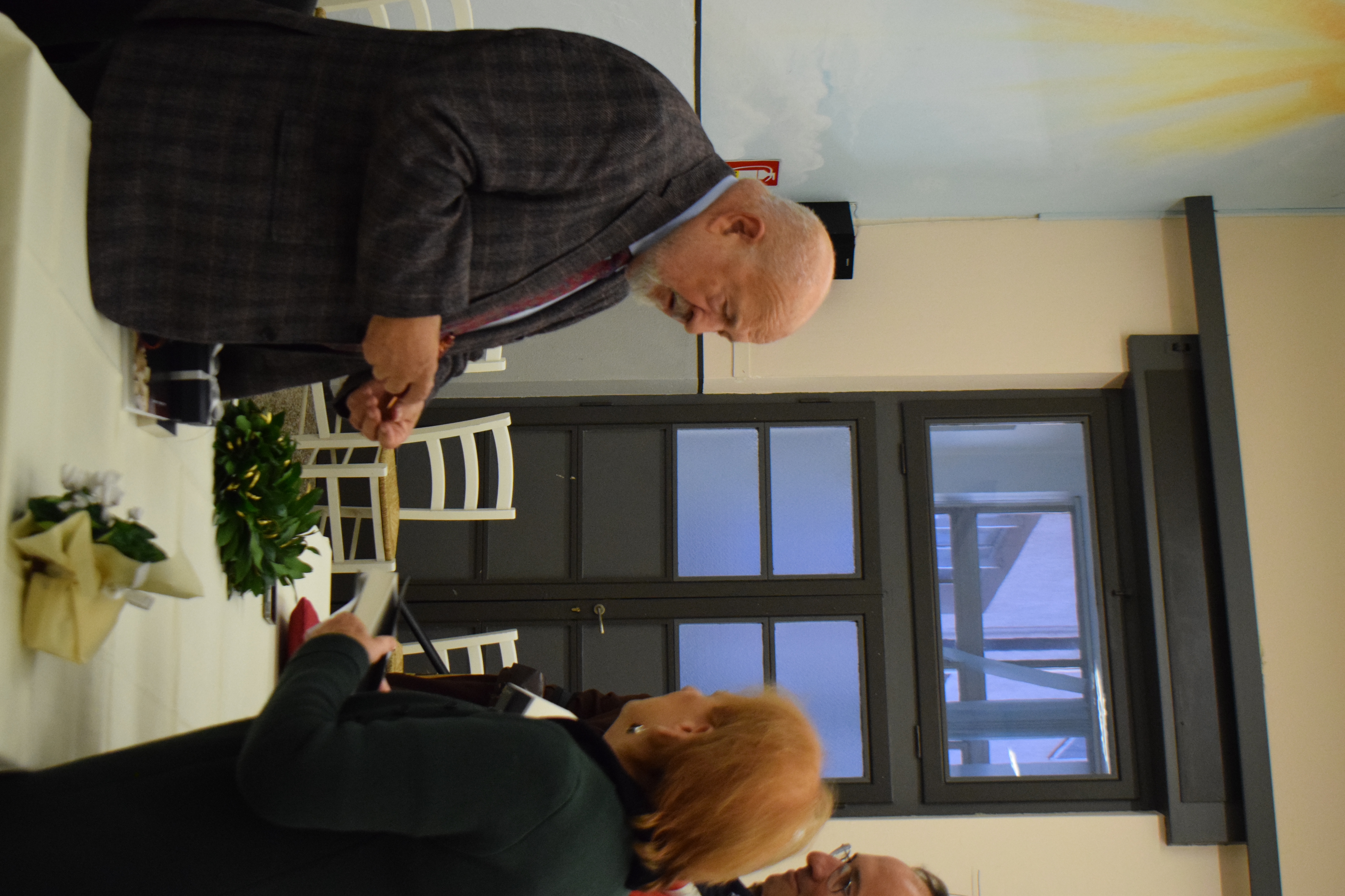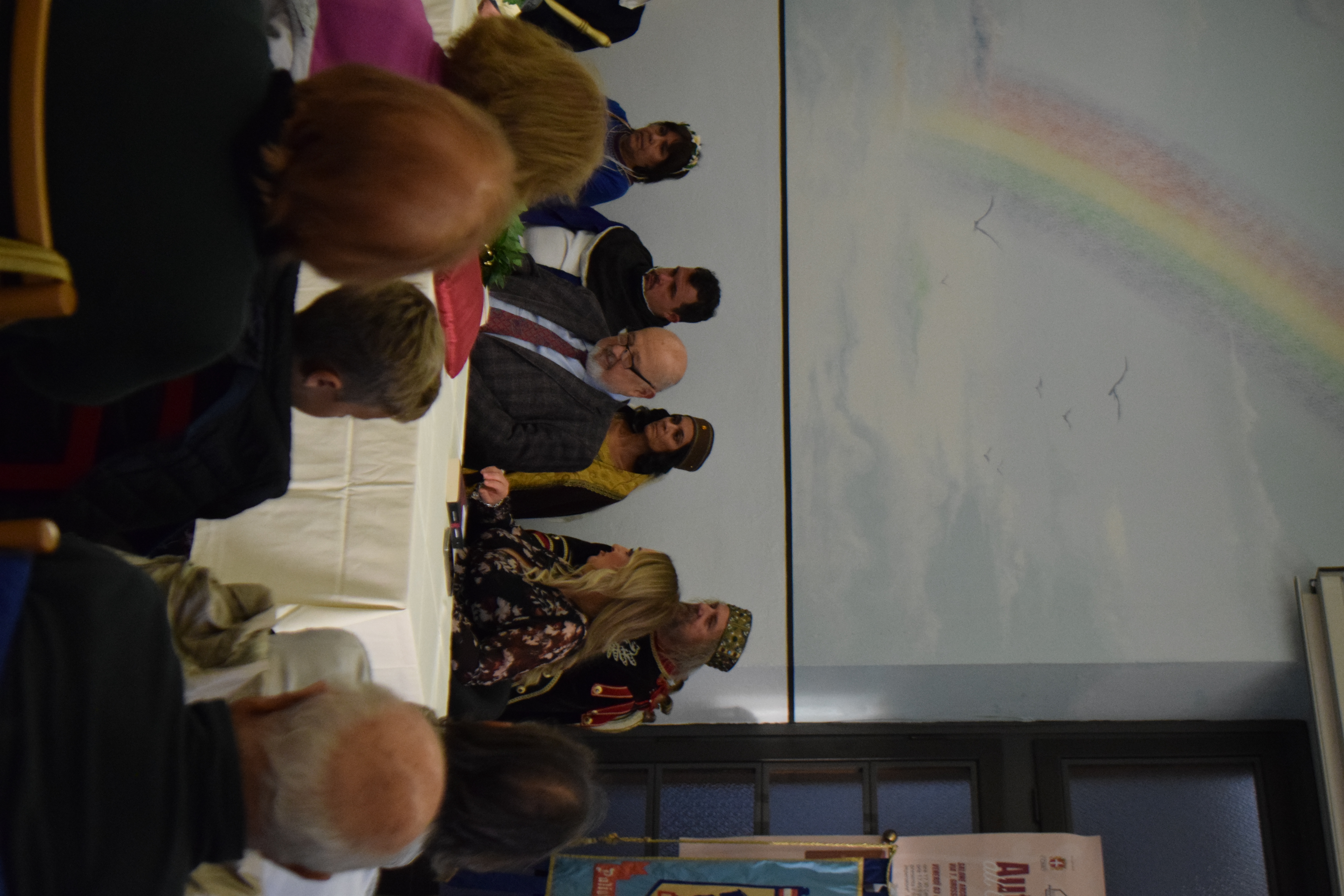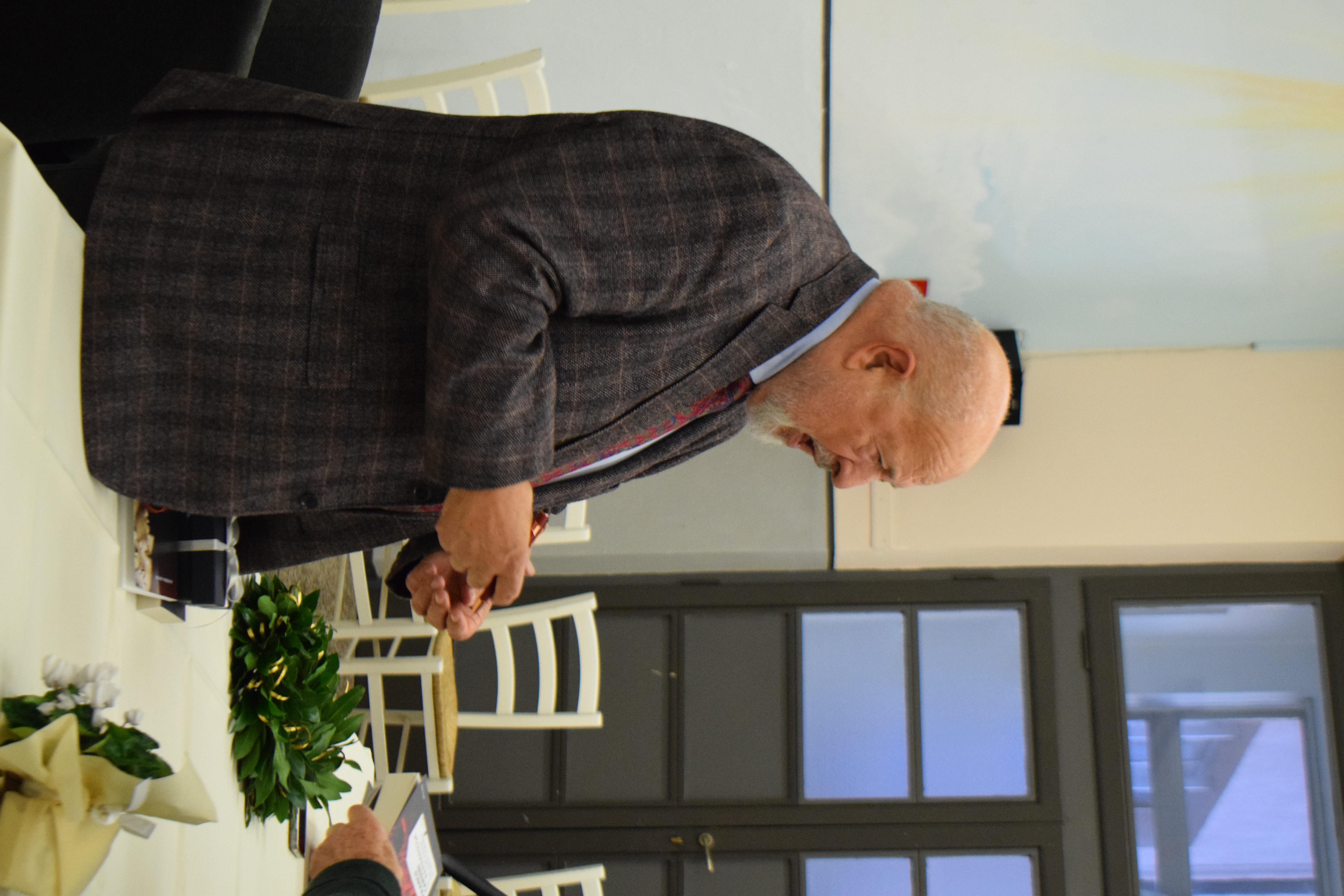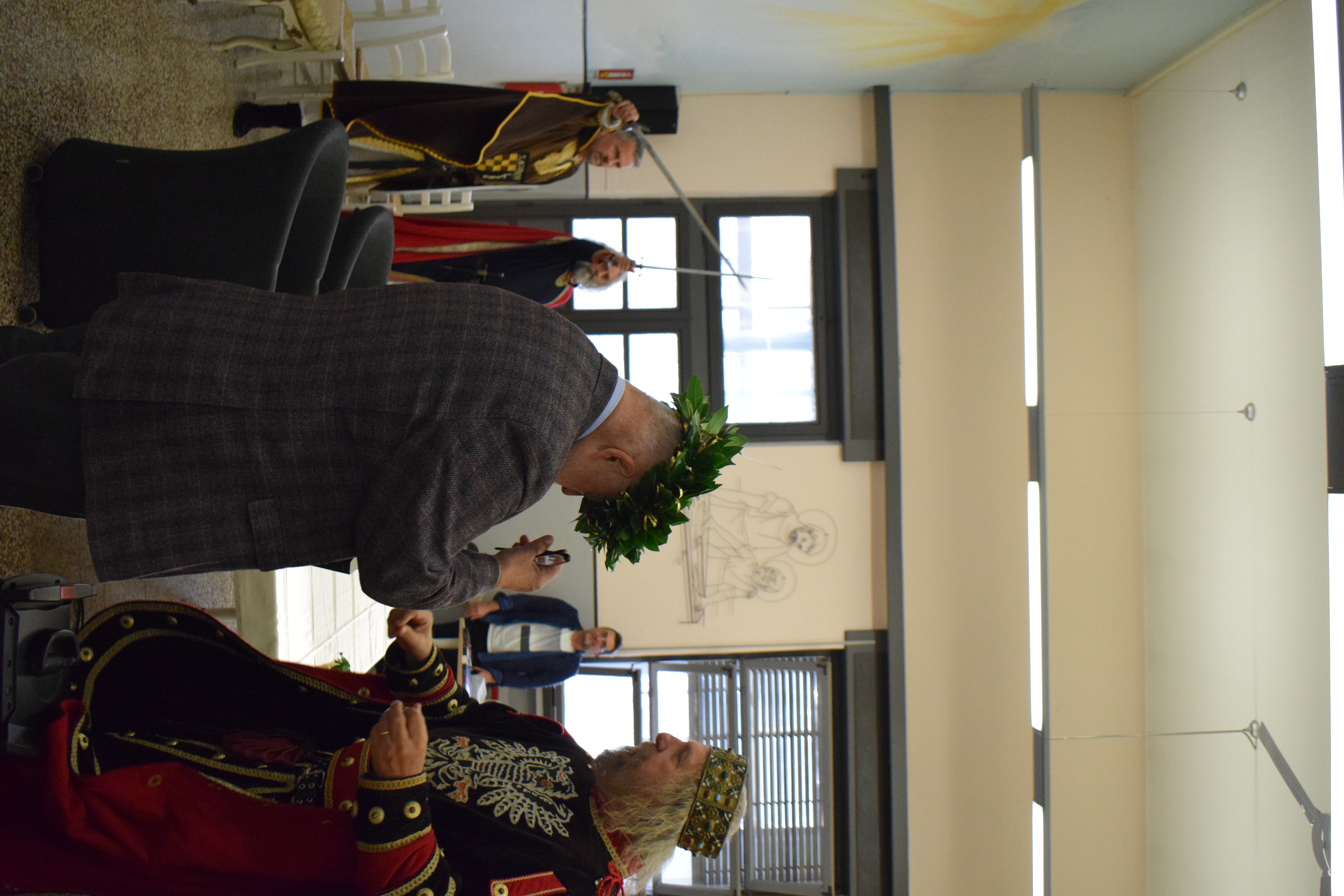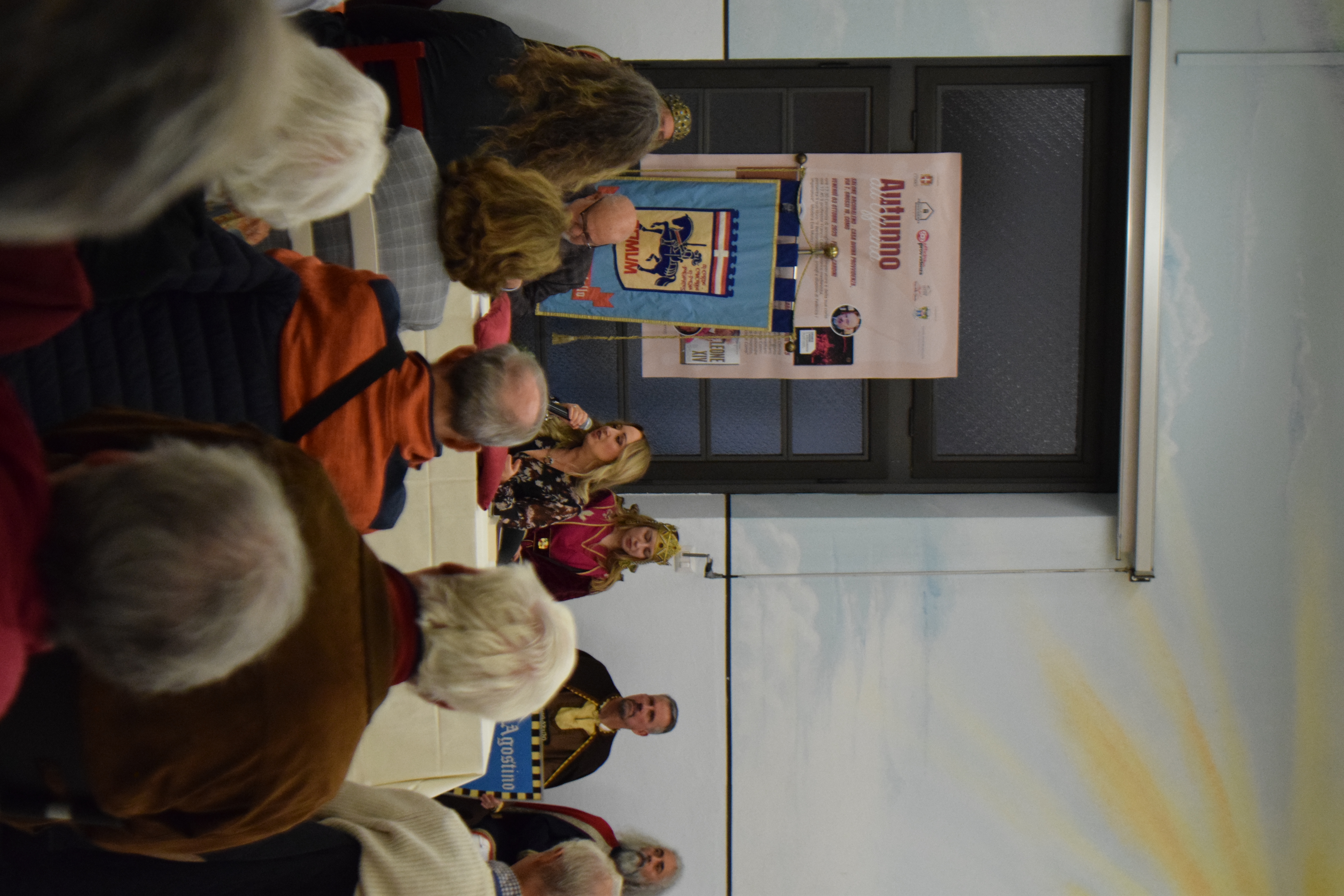 Uno dei passaggi più emozionanti dell’incontro è stato l’atto solenne con cui Federico Barbarossa ha “incoronato” Franco Cardini con una corona d’alloro, gesto carico di significato.