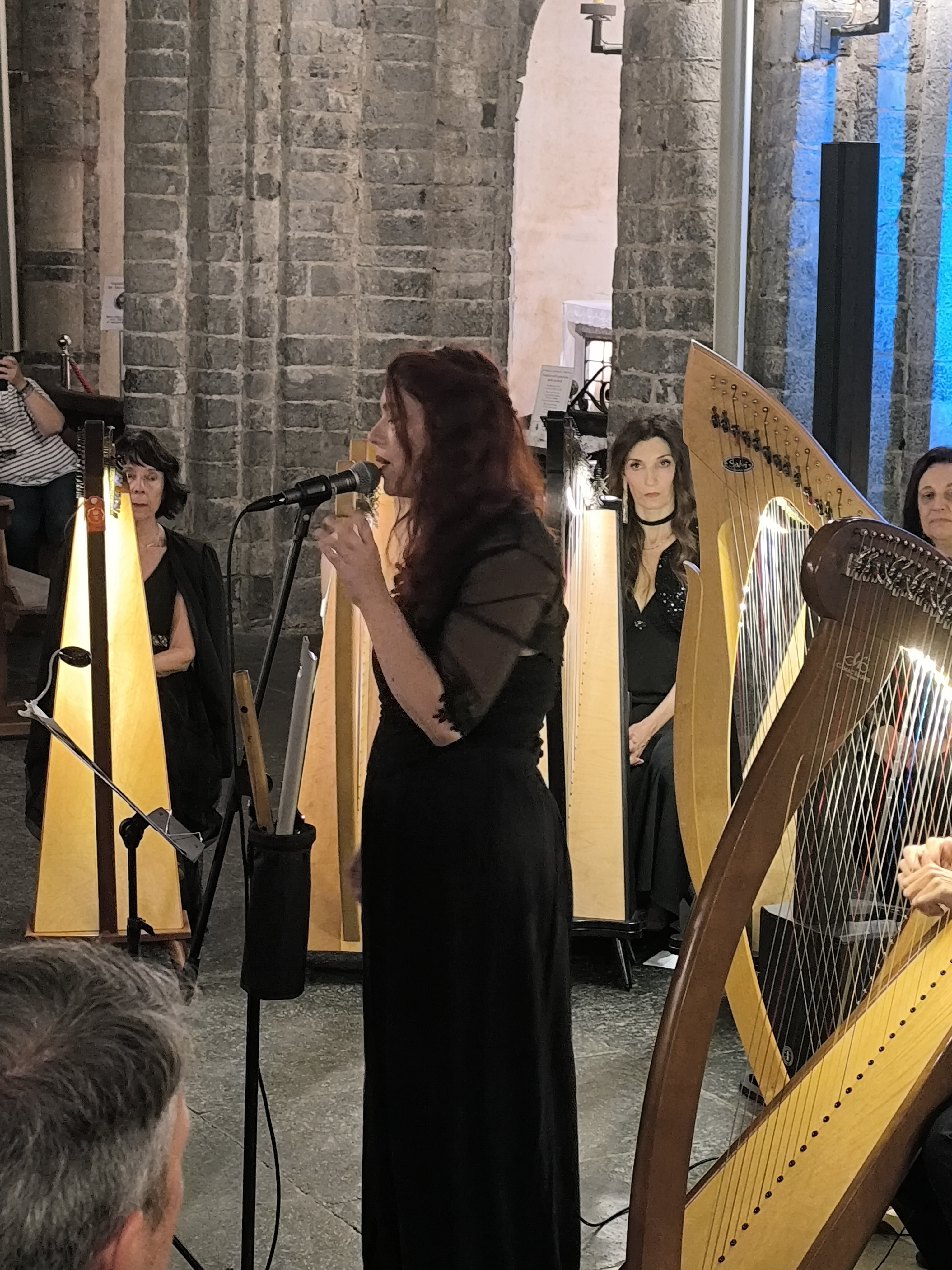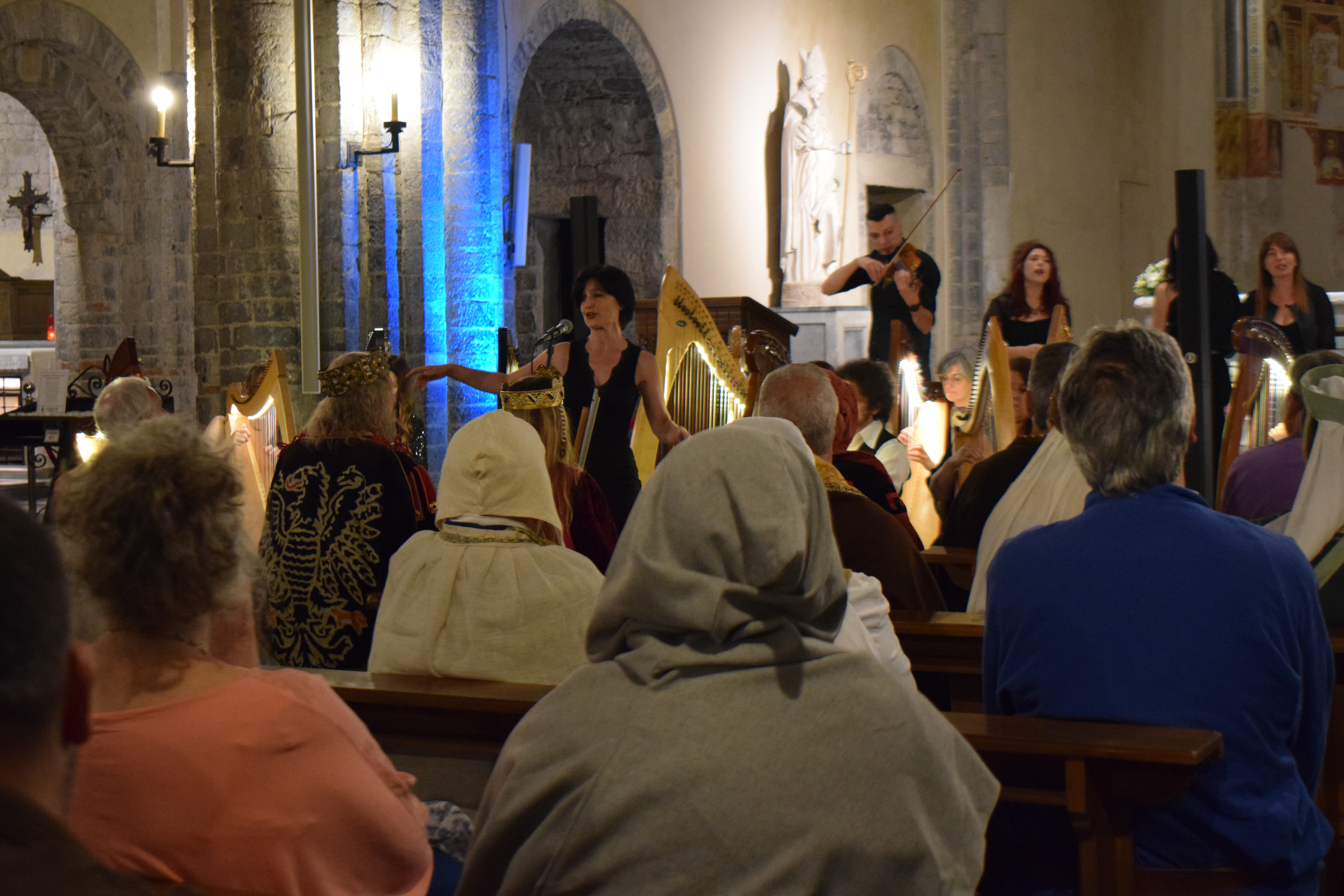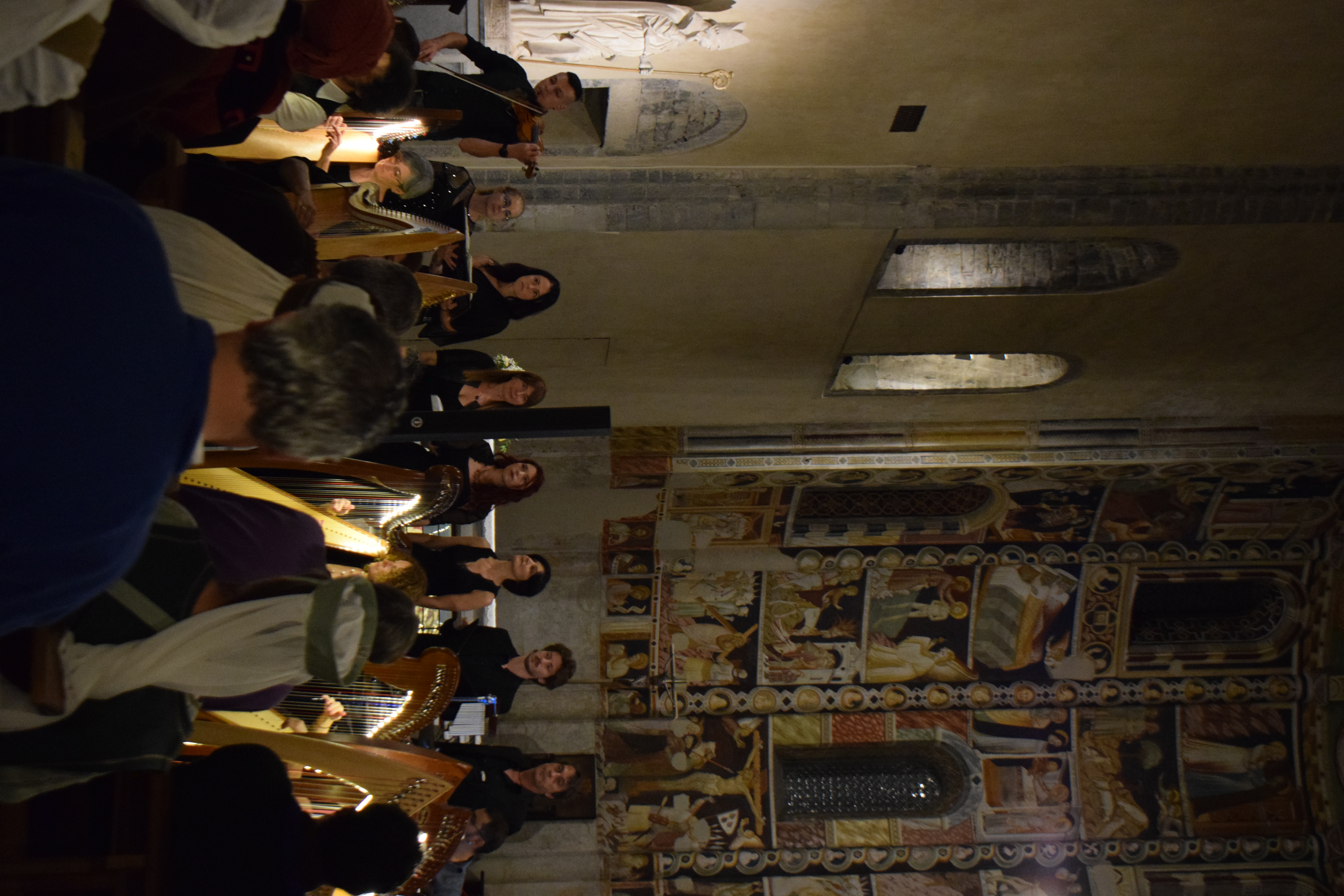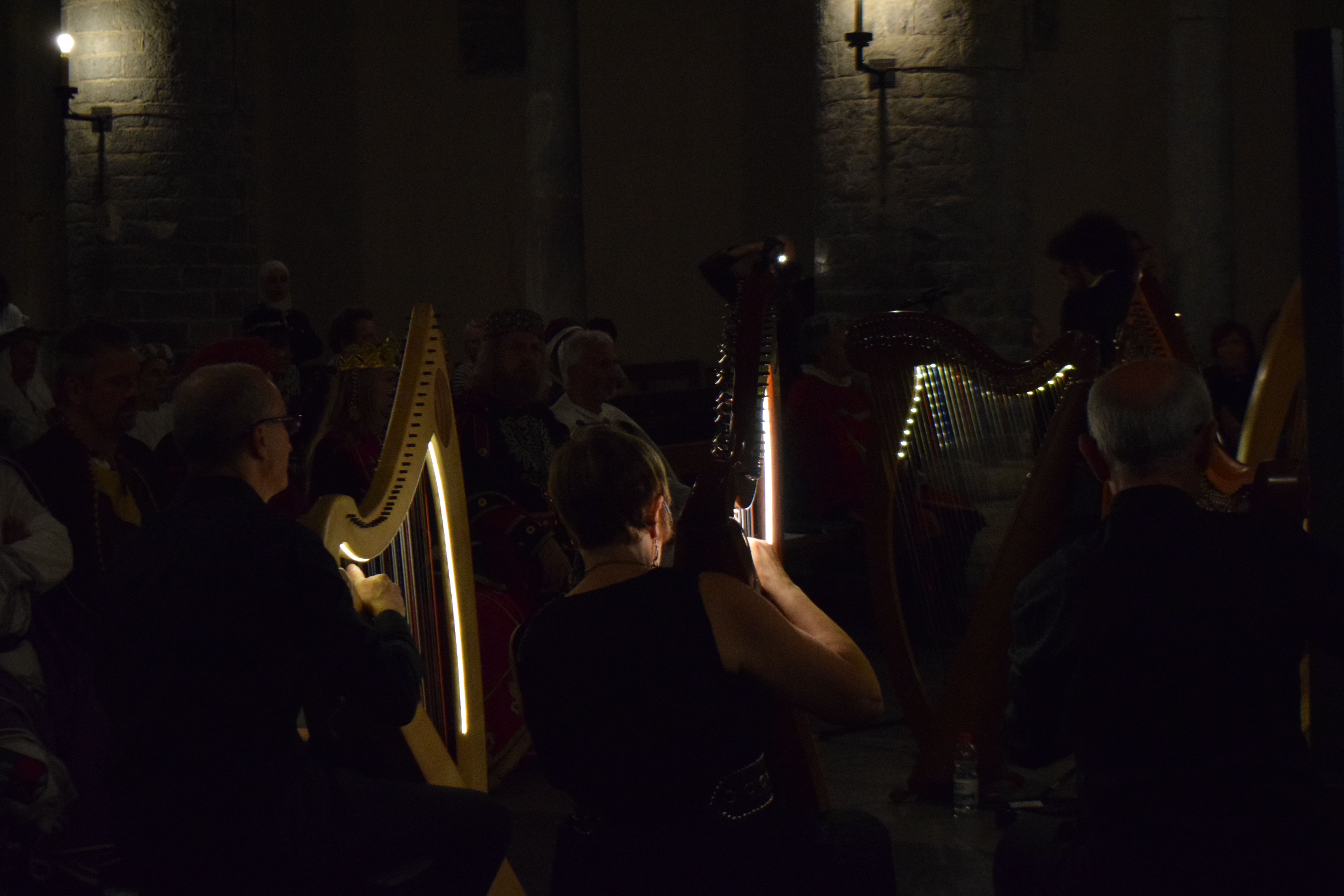 decoravano le arpe dei musicisti. Ogni riflesso, ogni vibrazione delle corde sembrava raccontare storie antiche, mentre i brani eseguiti evocavano melodie medievali e canti che riportavano alla memoria atmosfere di castelli e corti.
