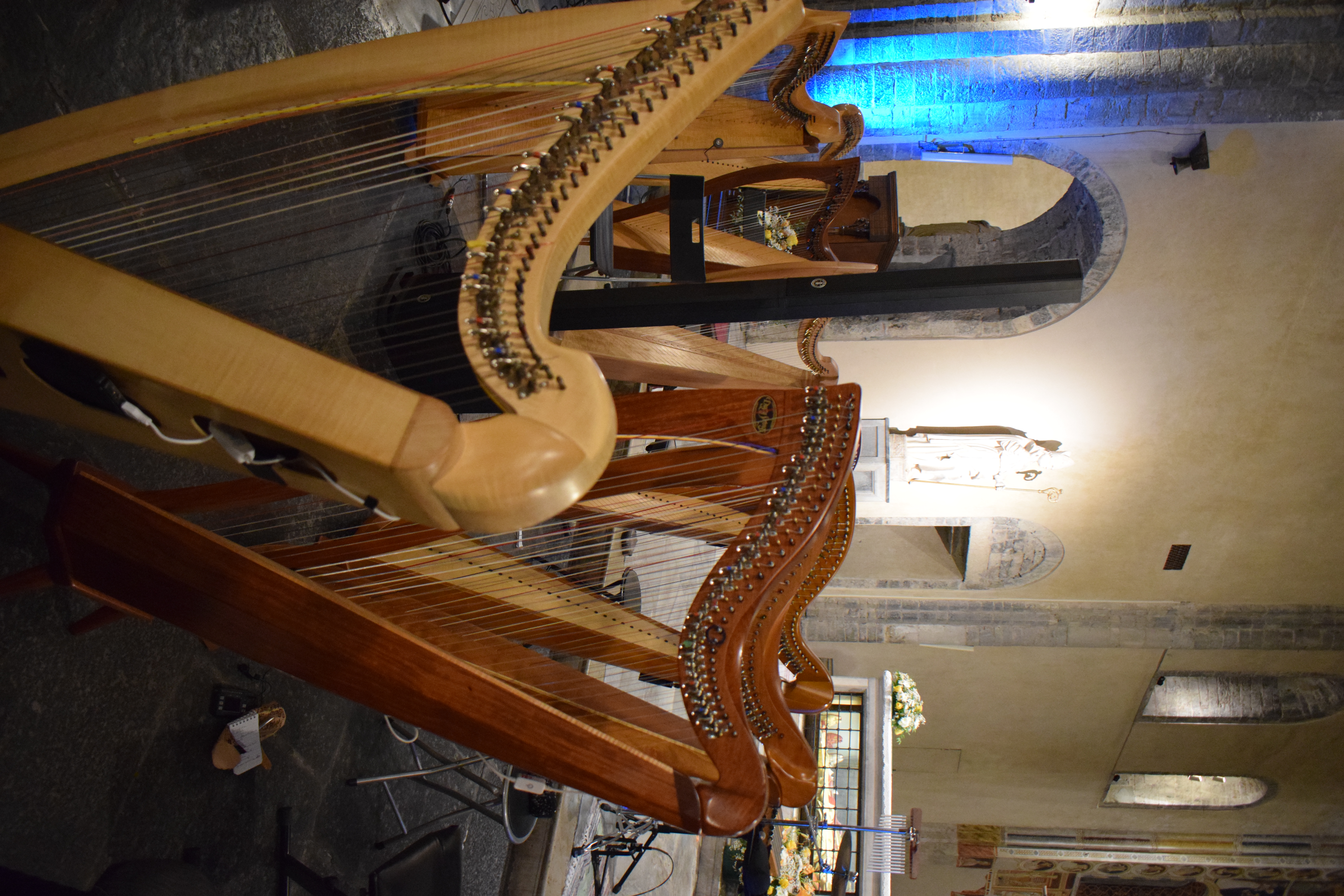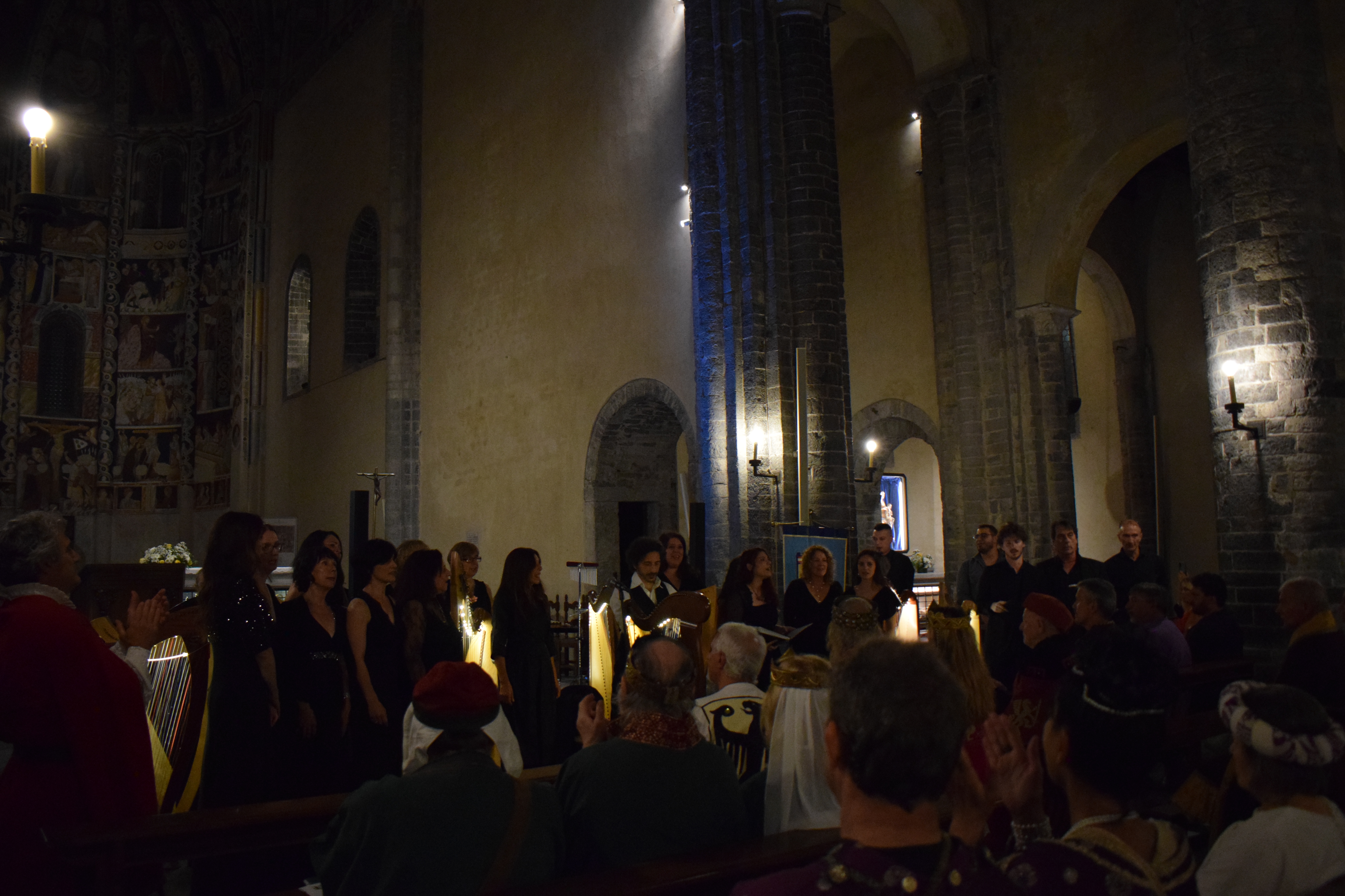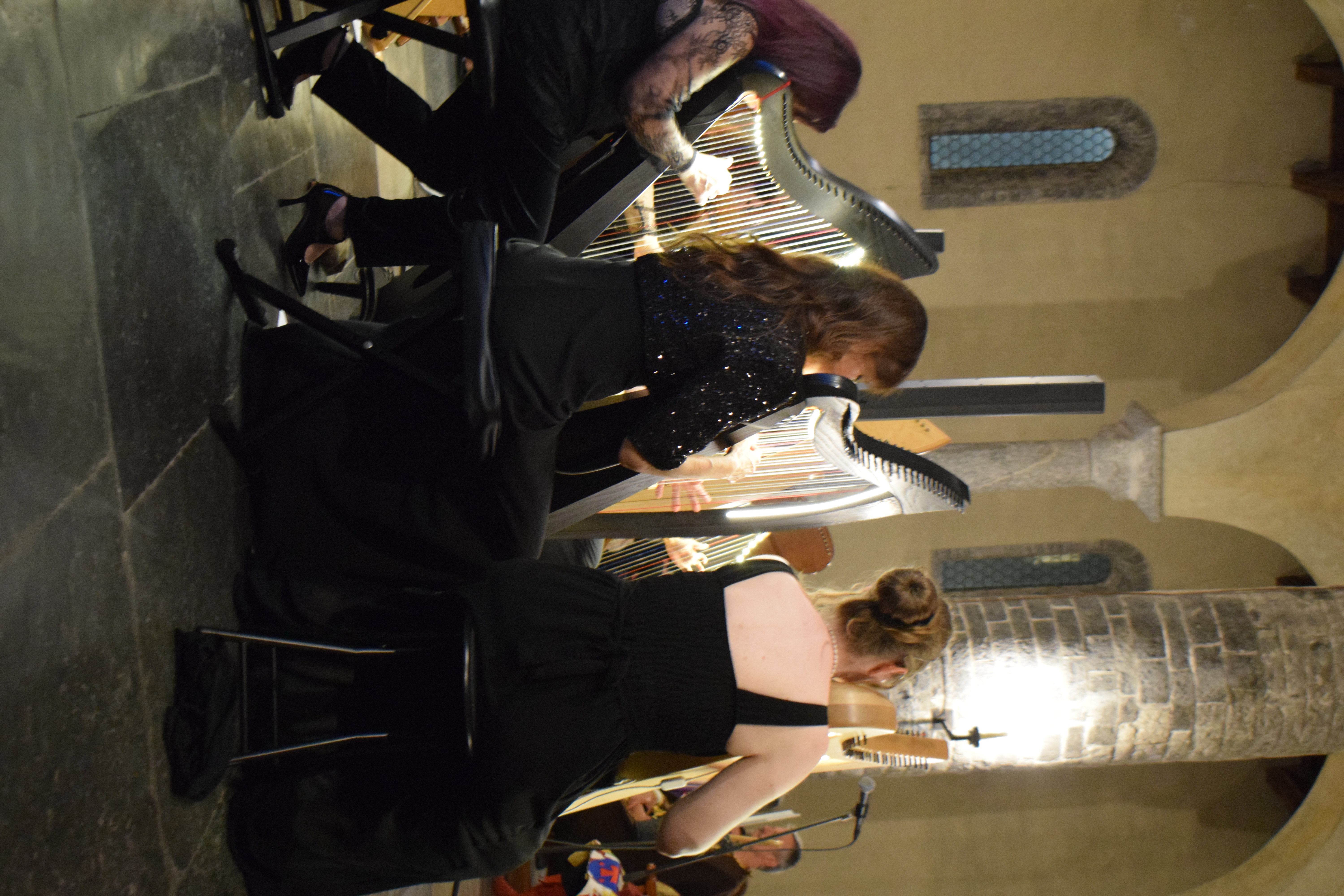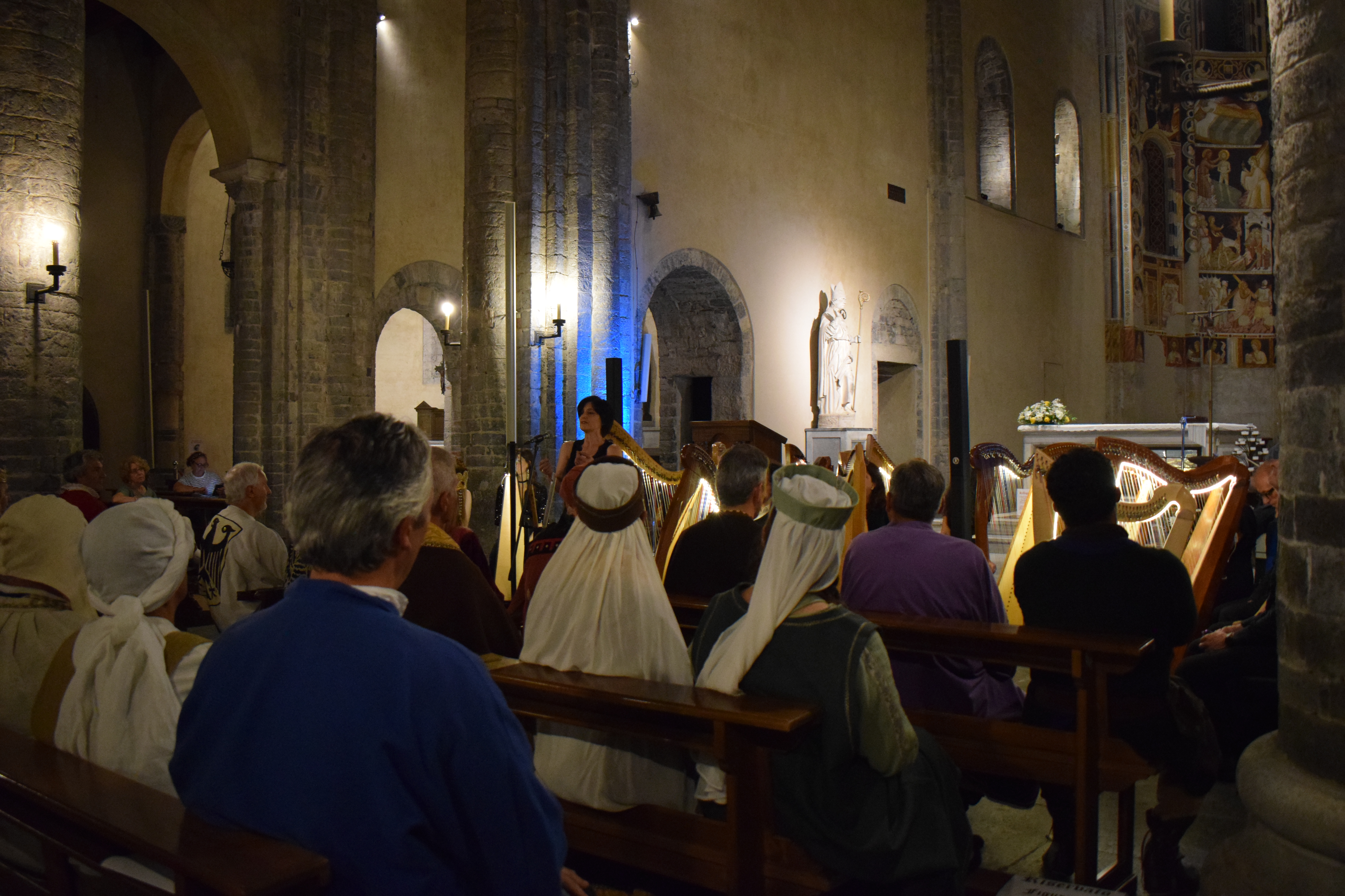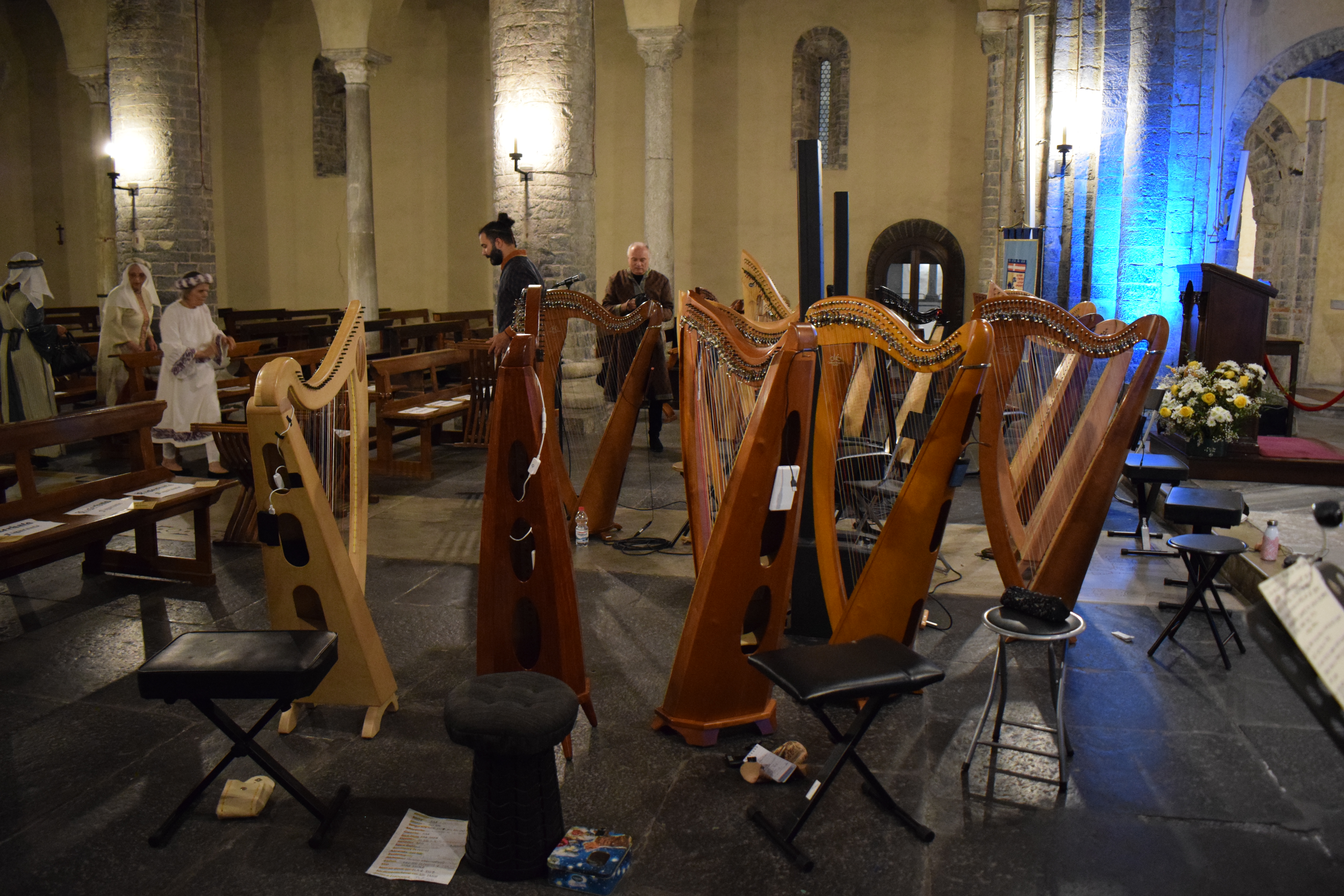decoravano le arpe dei musicisti. Ogni riflesso, ogni vibrazione delle corde sembrava raccontare storie antiche, mentre i brani eseguiti evocavano melodie medievali e canti che riportavano alla memoria atmosfere di castelli e corti.