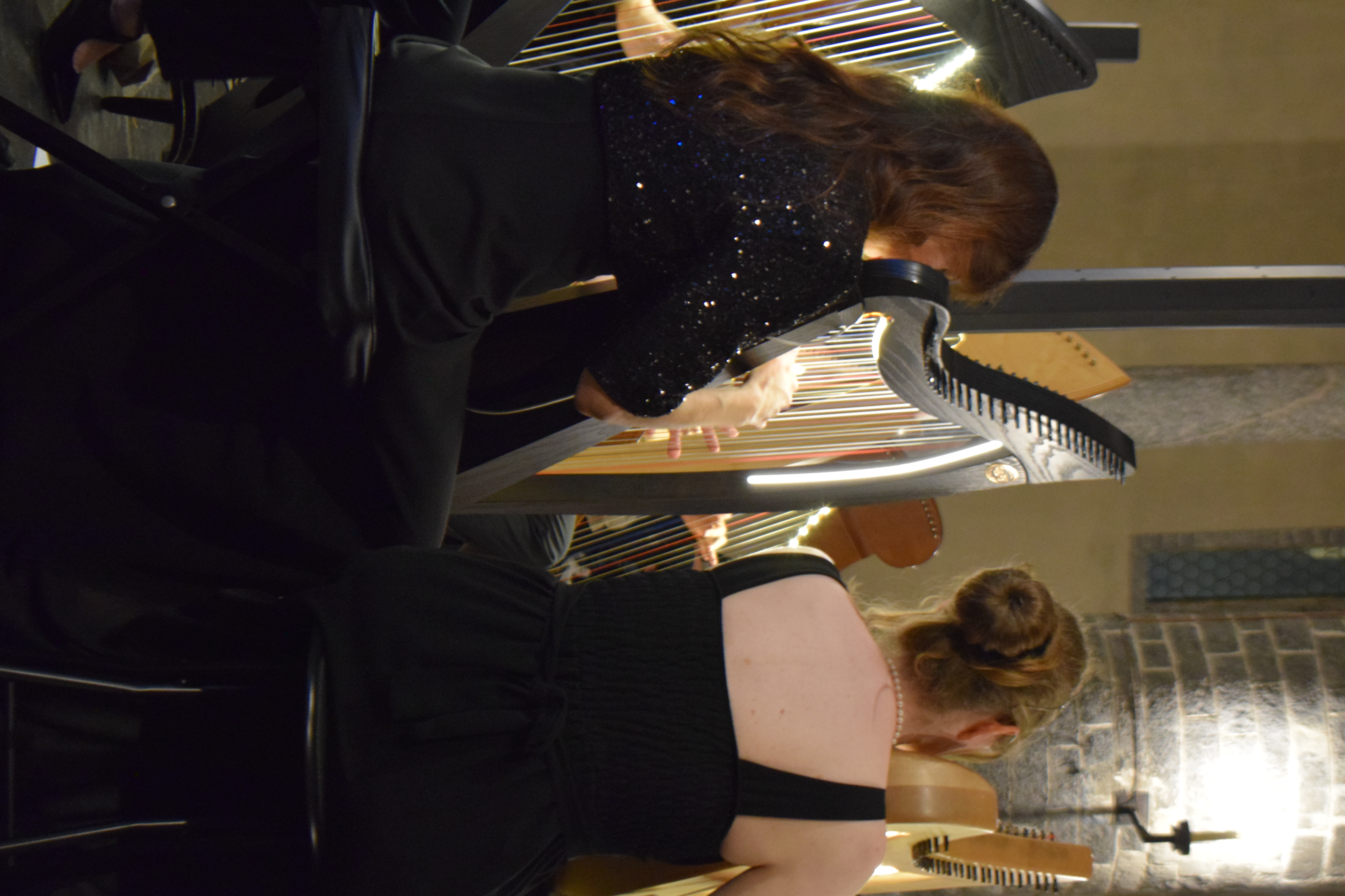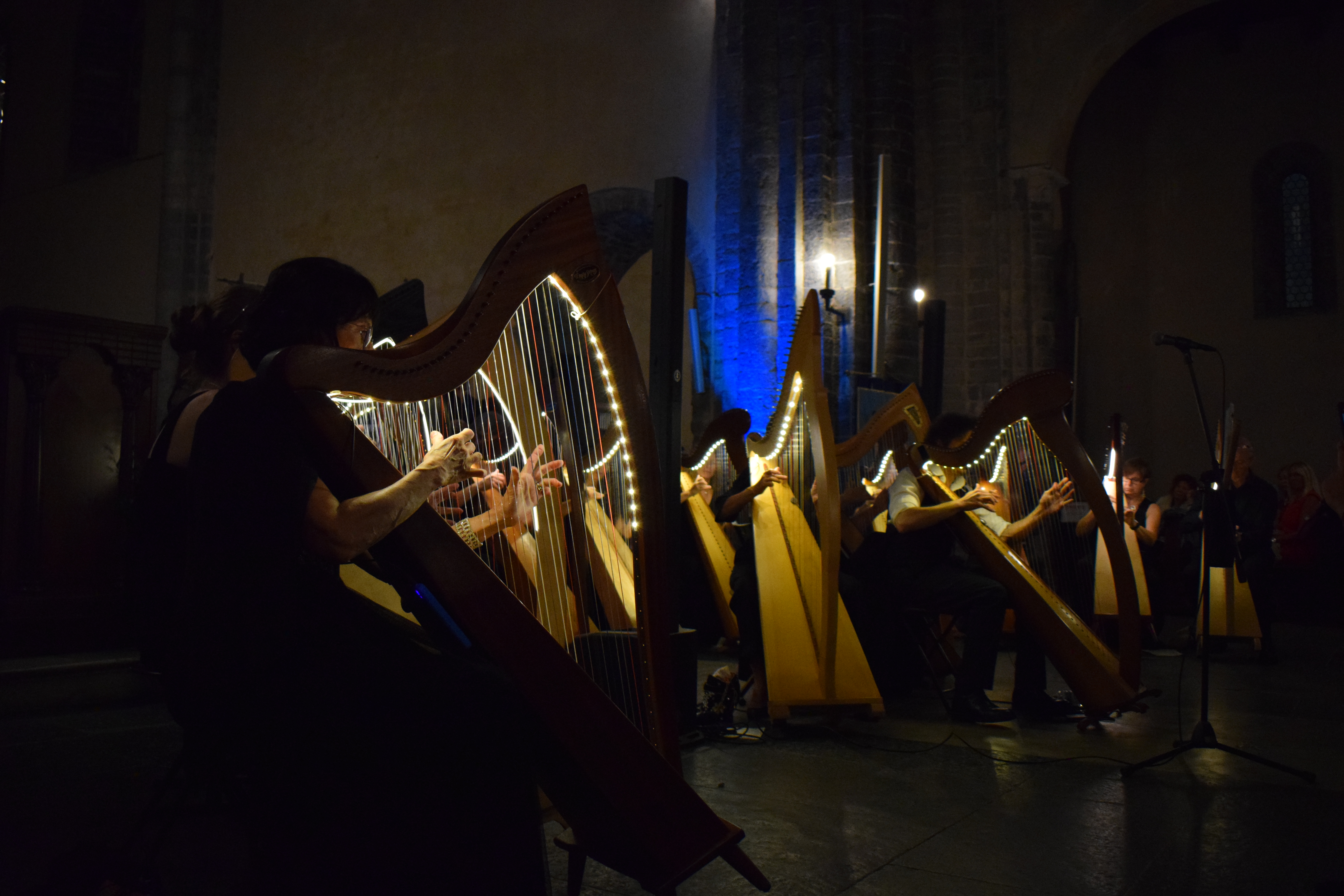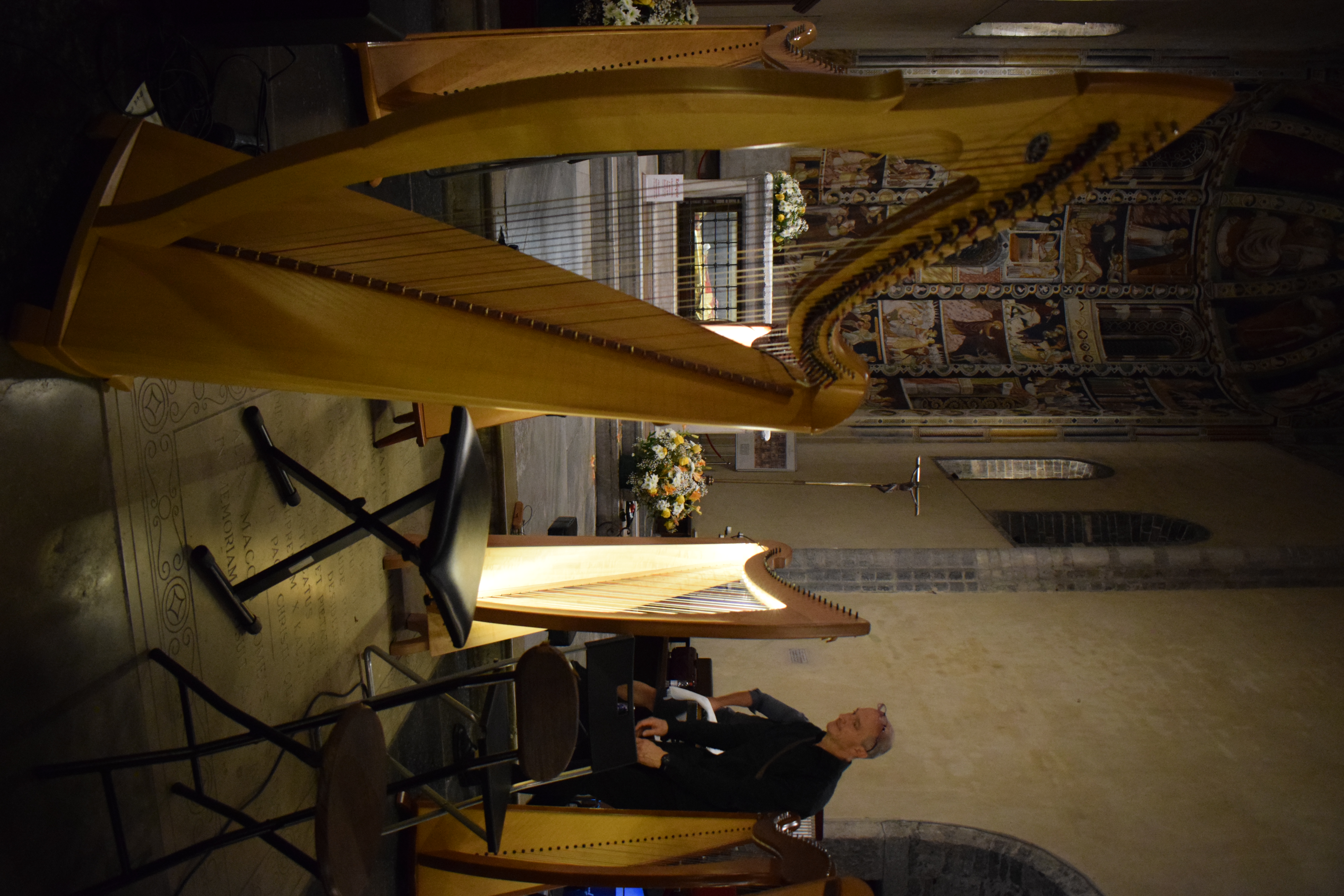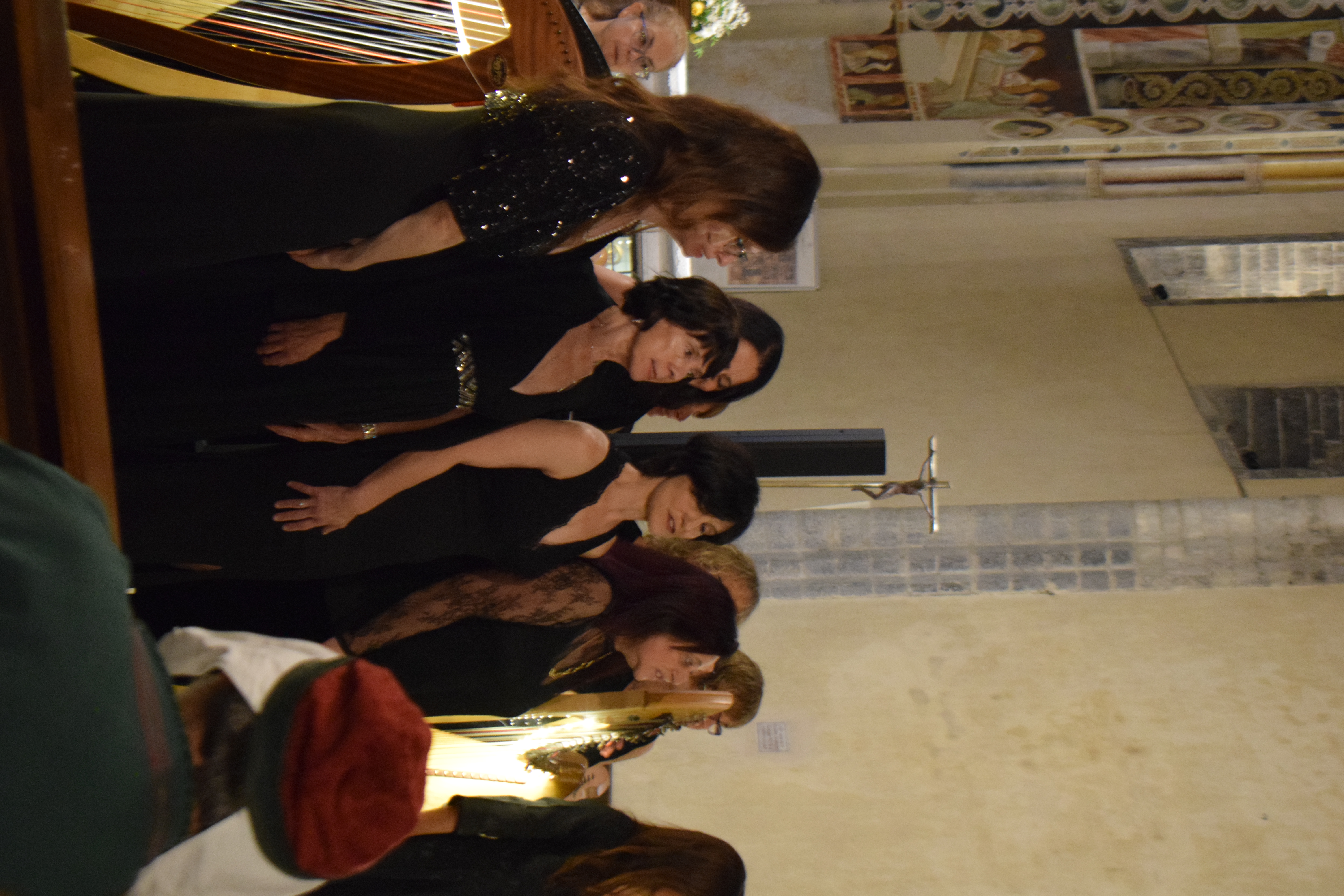 decoravano le arpe dei musicisti. Ogni riflesso, ogni vibrazione delle corde sembrava raccontare storie antiche, mentre i brani eseguiti evocavano melodie medievali e canti che riportavano alla memoria atmosfere di castelli e corti.