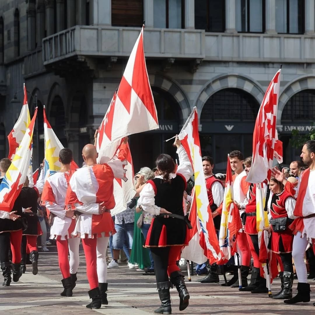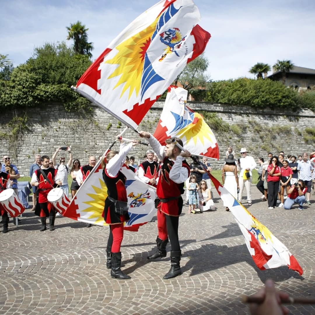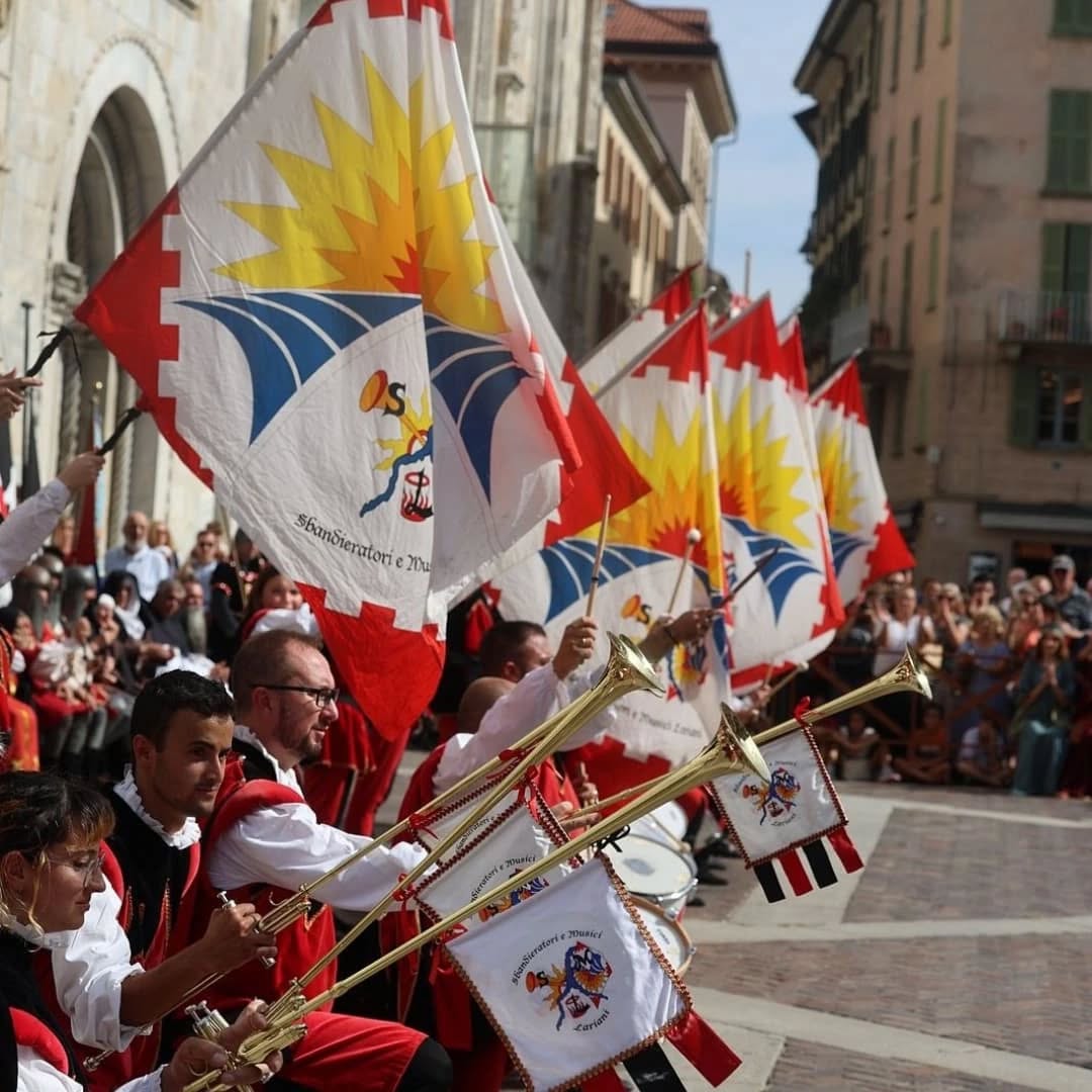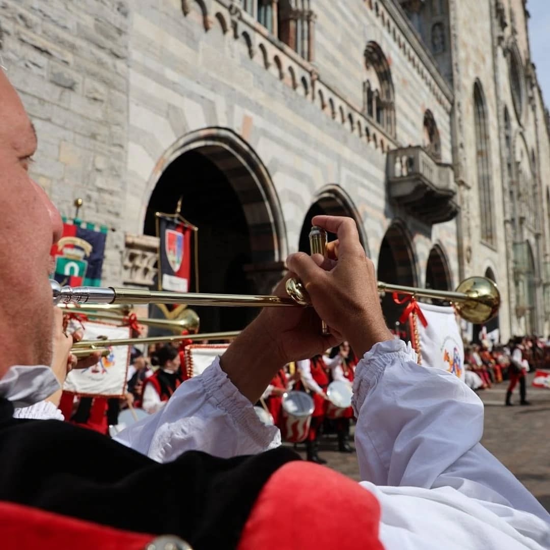 Il lungo viaggio per le vie del centro ha condotto il corteo fino al Duomo di Como, dove hanno avuto inizio le esibizioni: le eleganti coreografie delle Dame del Lago, le energiche performance dei Musici e Sbandieratori Lariani e dei gruppi di Tavernola, che con tamburi, chiarine e giochi di bandiere hanno trasformato la piazza in una scenografia d’altri tempi.