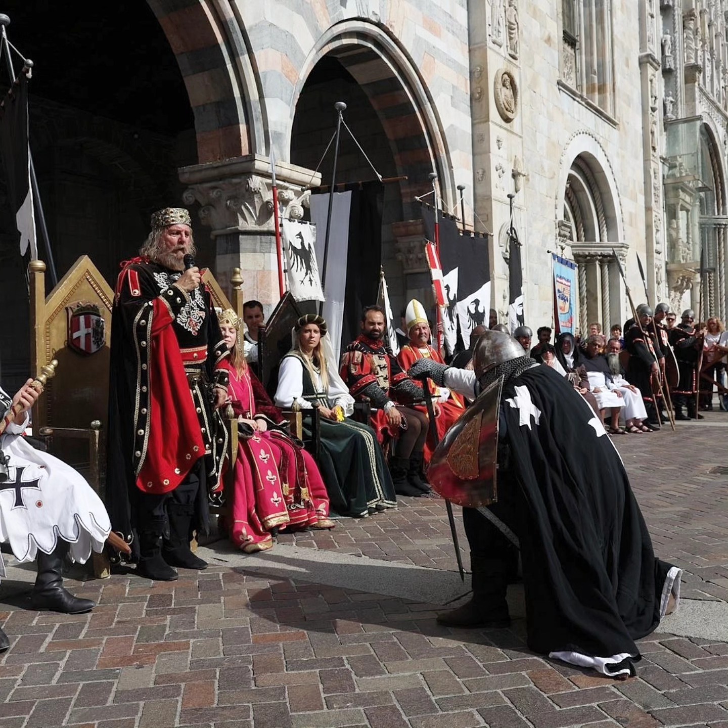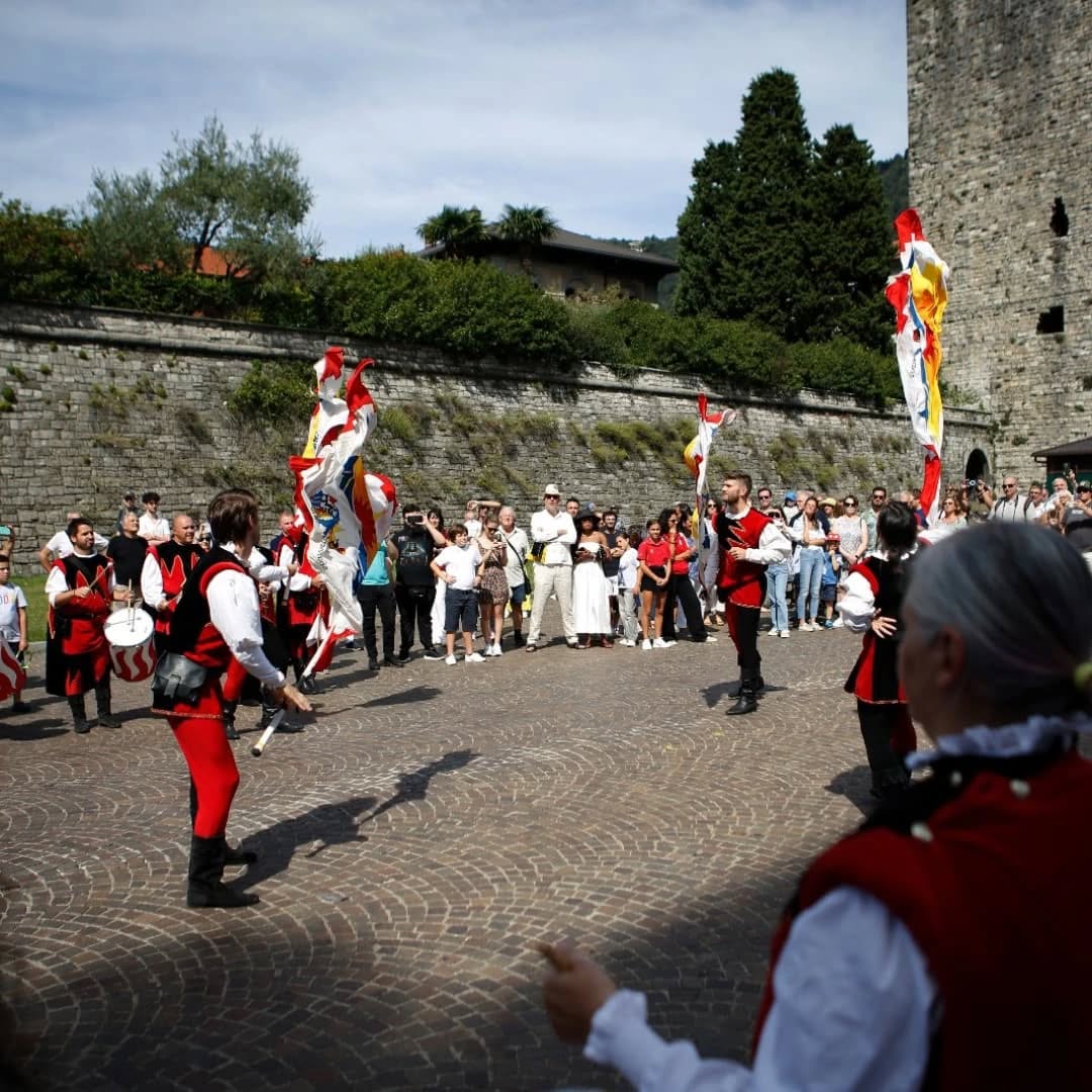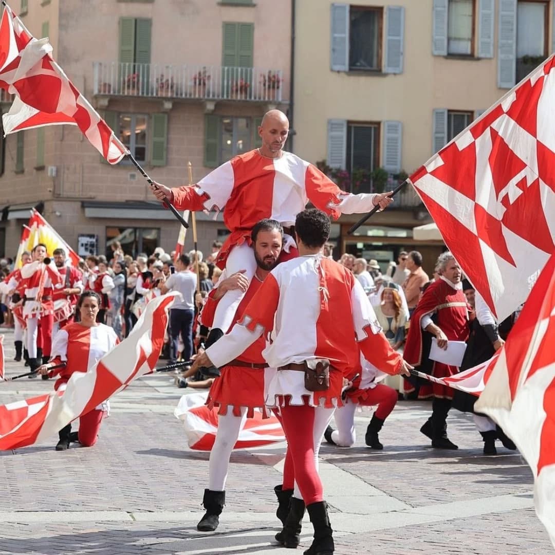 Il lungo viaggio per le vie del centro ha condotto il corteo fino al Duomo di Como, dove hanno avuto inizio le esibizioni: le eleganti coreografie delle Dame del Lago, le energiche performance dei Musici e Sbandieratori Lariani e dei gruppi di Tavernola, che con tamburi, chiarine e giochi di bandiere hanno trasformato la piazza in una scenografia d’altri tempi.