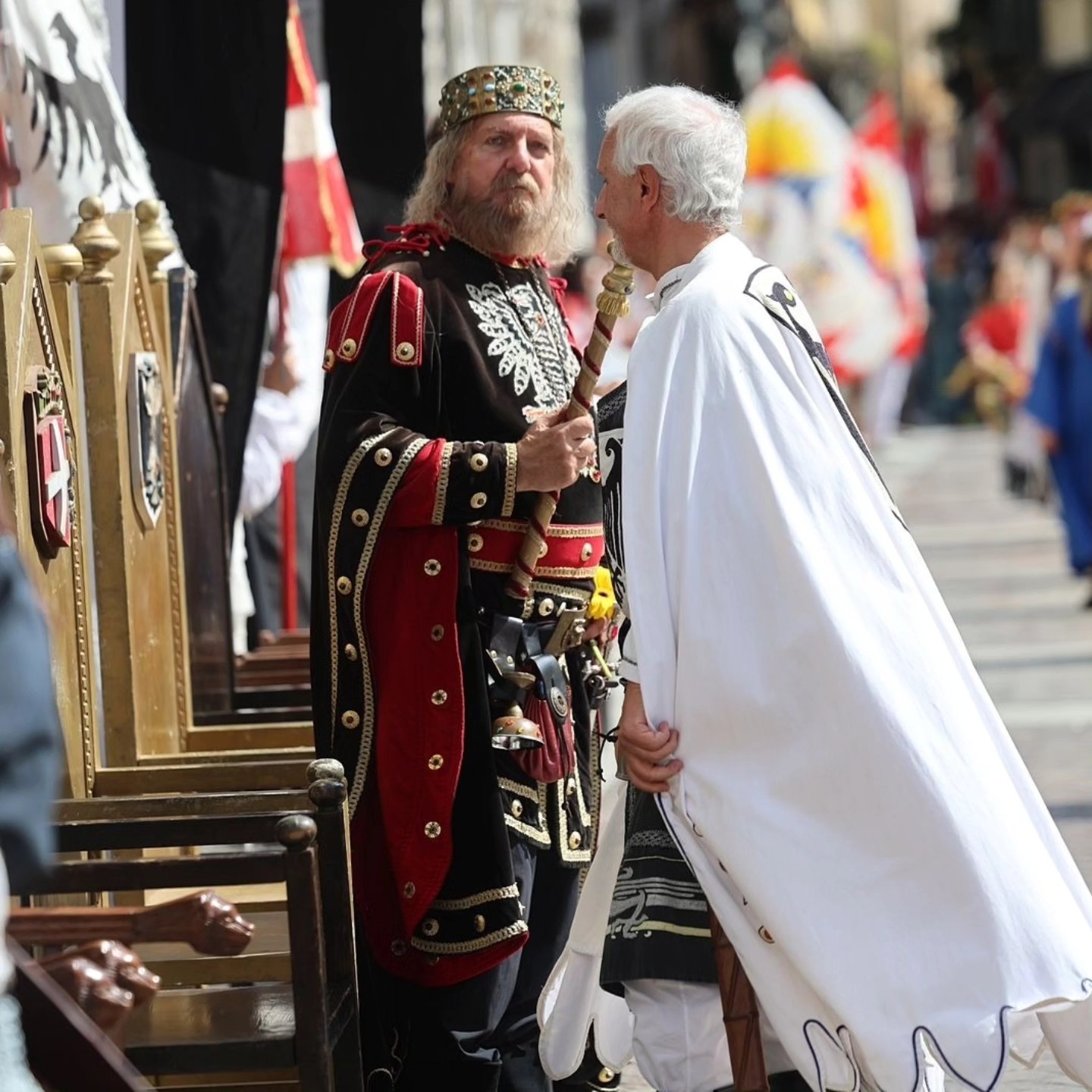 Tra i momenti più suggestivi, l’investitura del Balivo, chiamato a diventare cavaliere al servizio dell’Imperatrice. La cerimonia, scandita