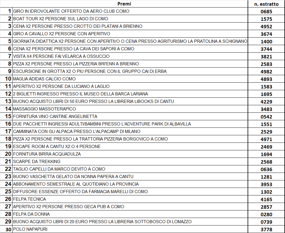 Quest’anno sono stati venduti 3.448 biglietti e assegnati 30 fantastici premi ai fortunati vincitori.