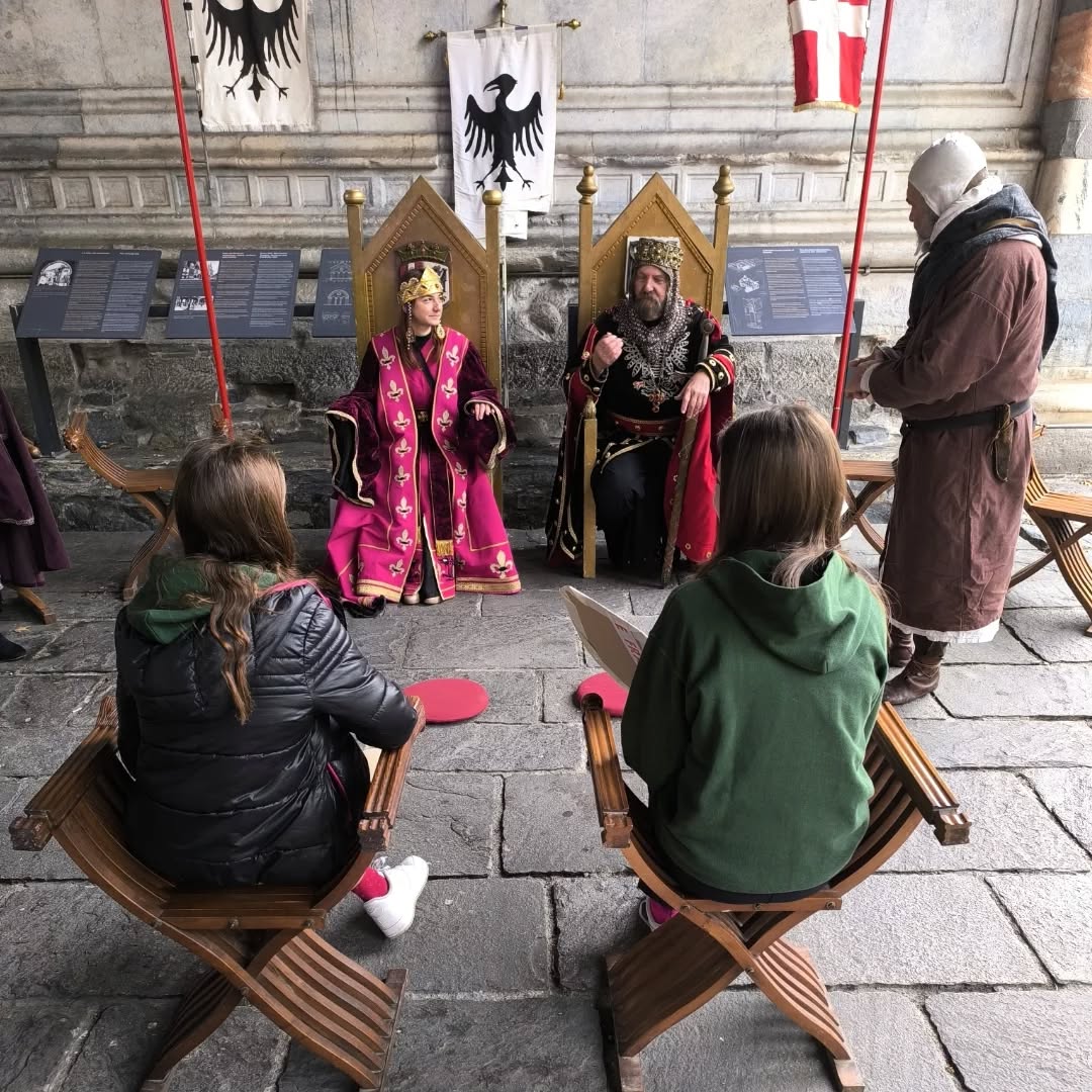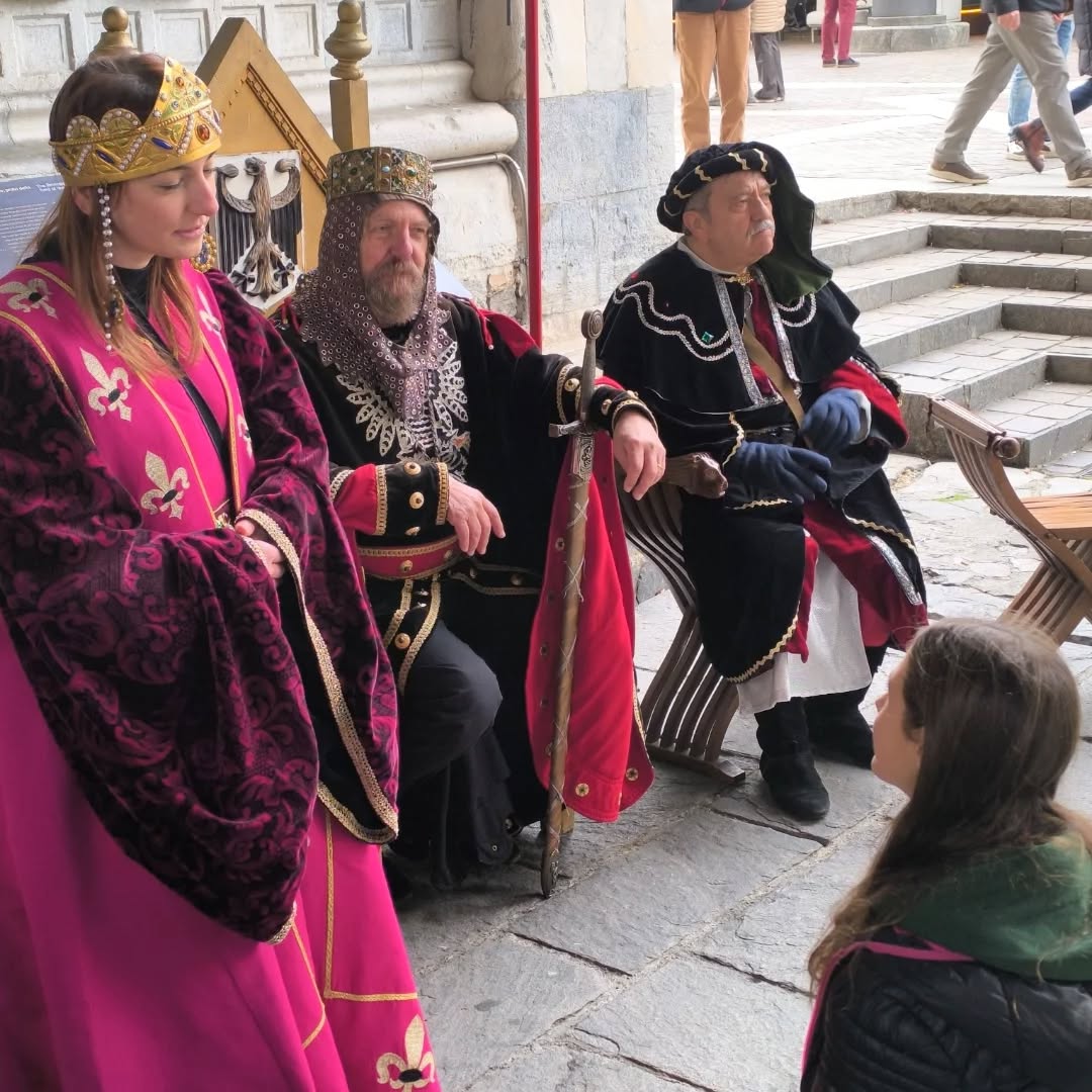 L’attesa è stata resa speciale dalle coinvolgenti spiegazioni di Messer Raniero, che ha guidato grandi e piccoli in un viaggio alla scoperta degli usi e dei costumi medievali, trasformando il Broletto in un angolo di storia viva.
