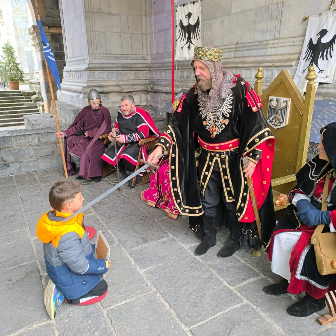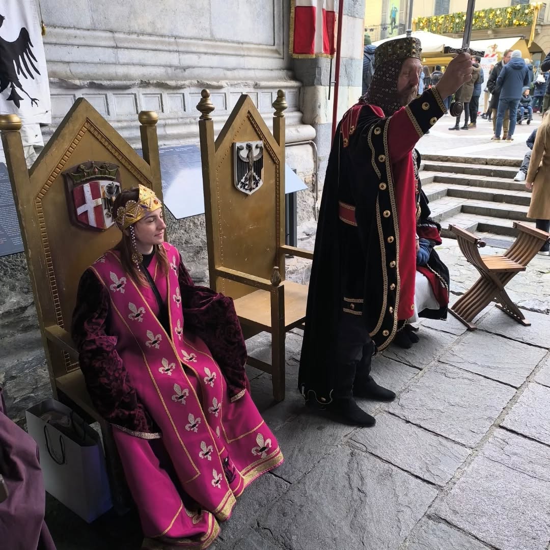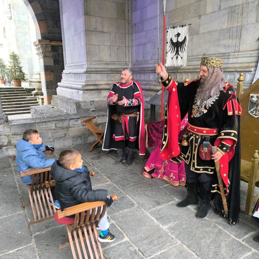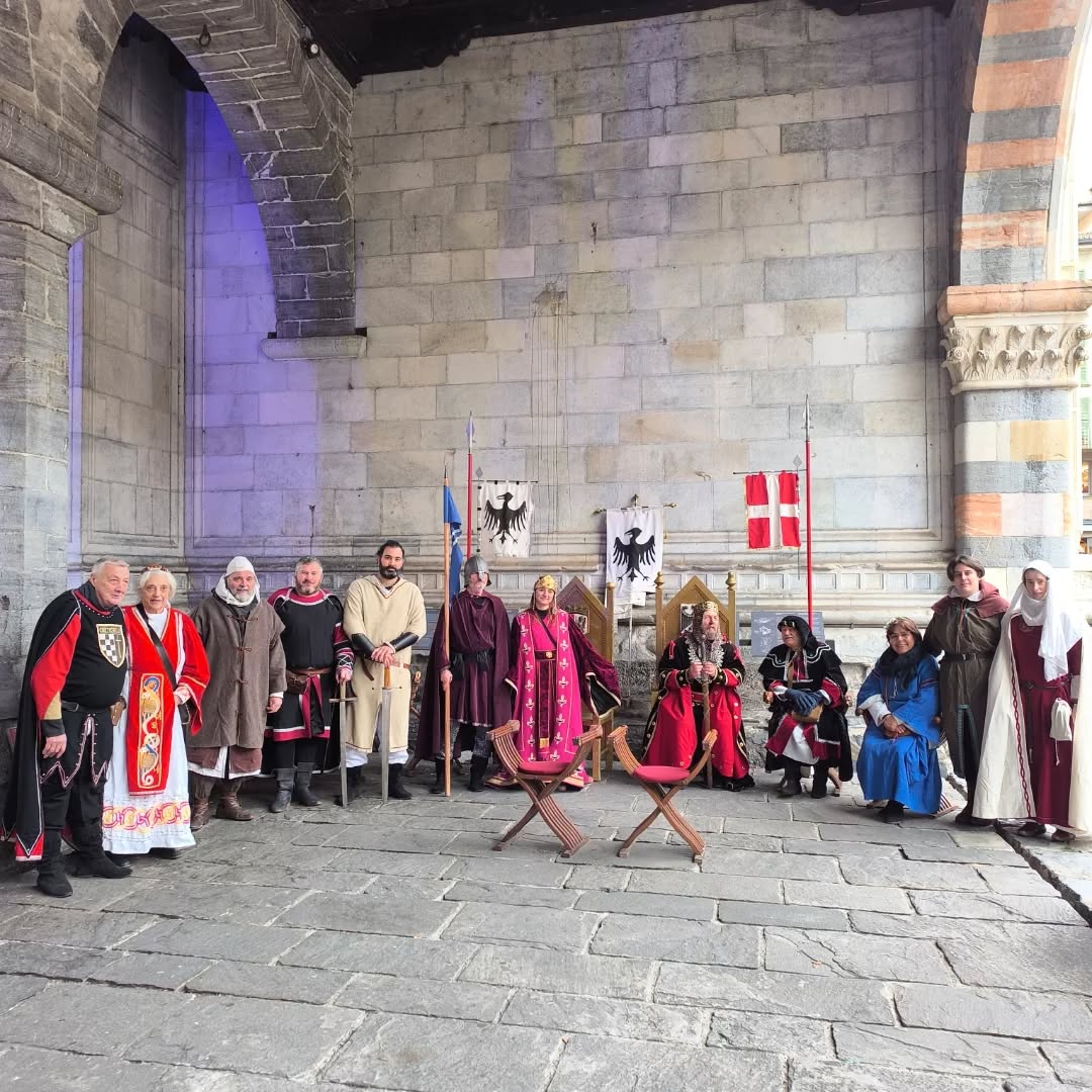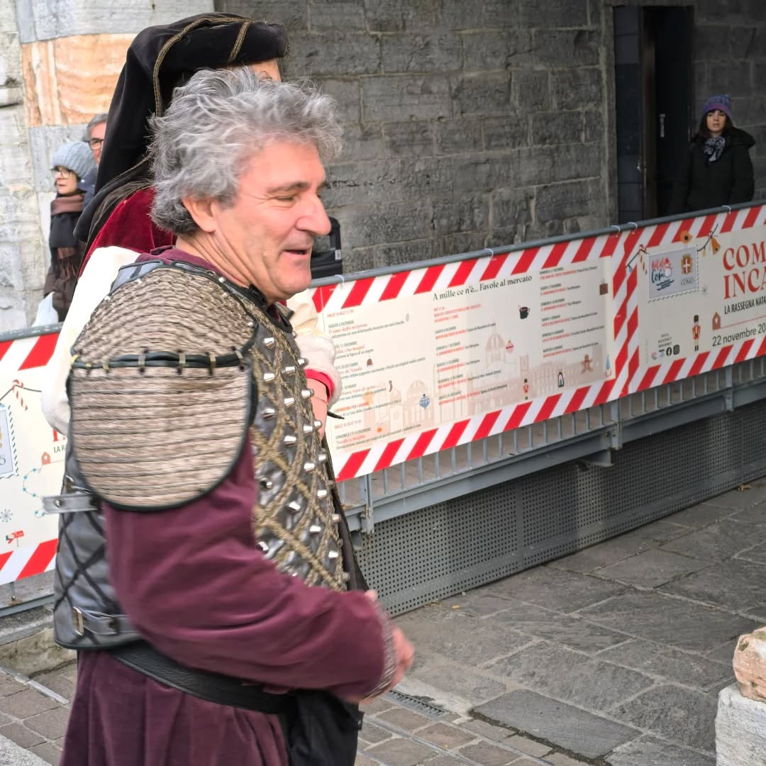 La conclusione, il 20 dicembre, ha portato per le vie di Como un emozionante corteo storico: mantelli che sfioravano le pietre antiche, vessilli mossi dal vento, figure nobili, dame, cavalieri, capitani e cortigiani hanno accompagnato Barbarossa e l’Imperatrice tra le luci natalizie, creando un’atmosfera sospesa nel tempo. In testa al corteo, Messer Raniero ha annunciato al popolo l’arrivo dell’Imperatore, aprendo la strada a un momento carico di suggestione.