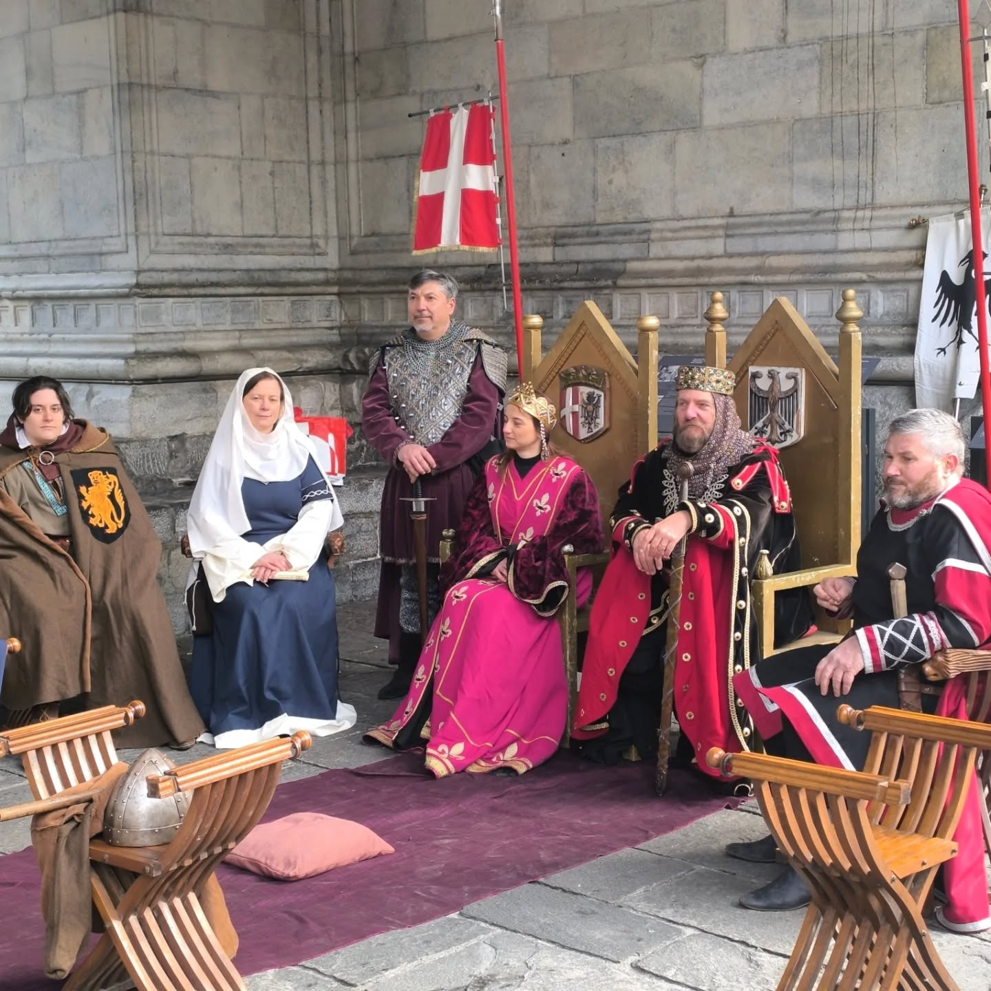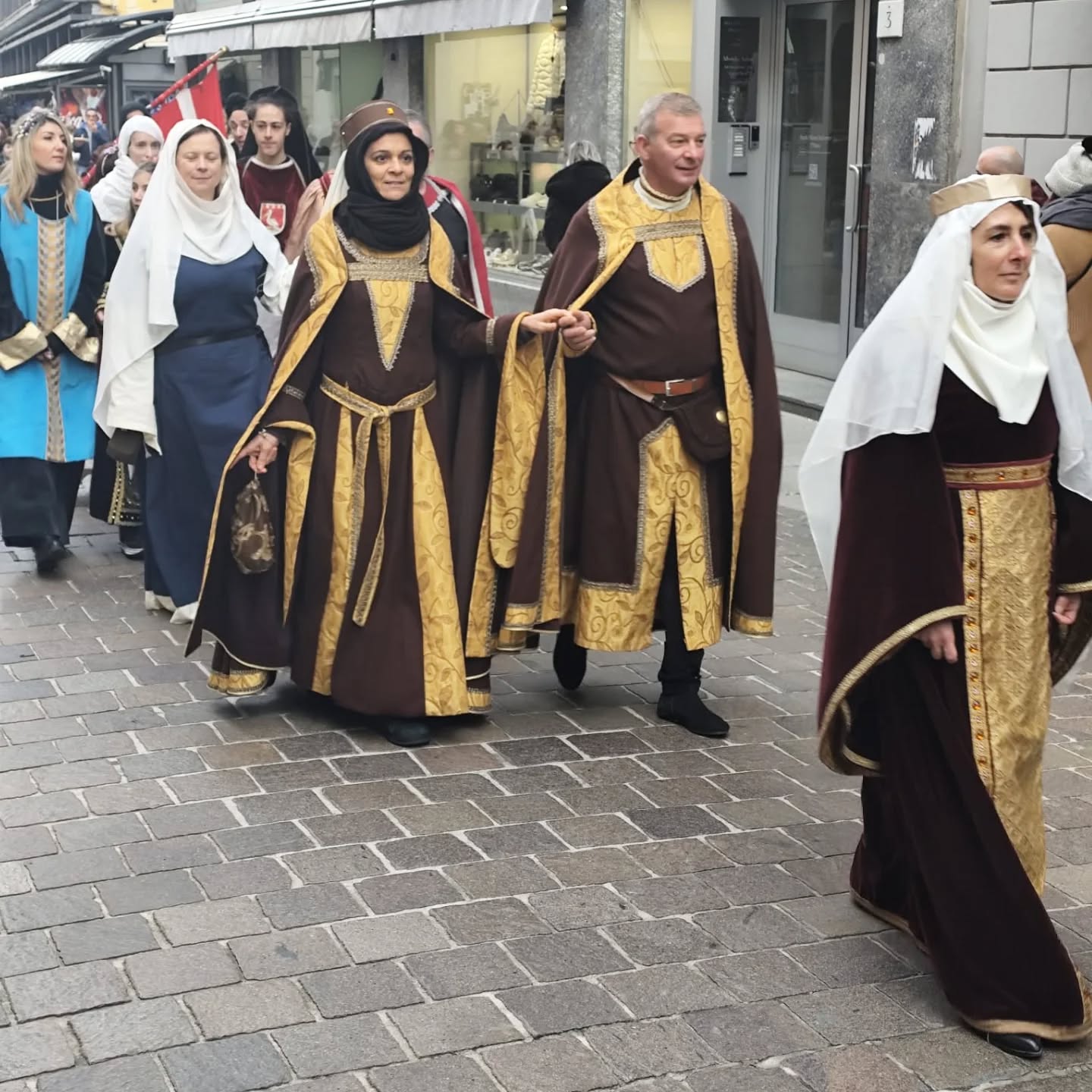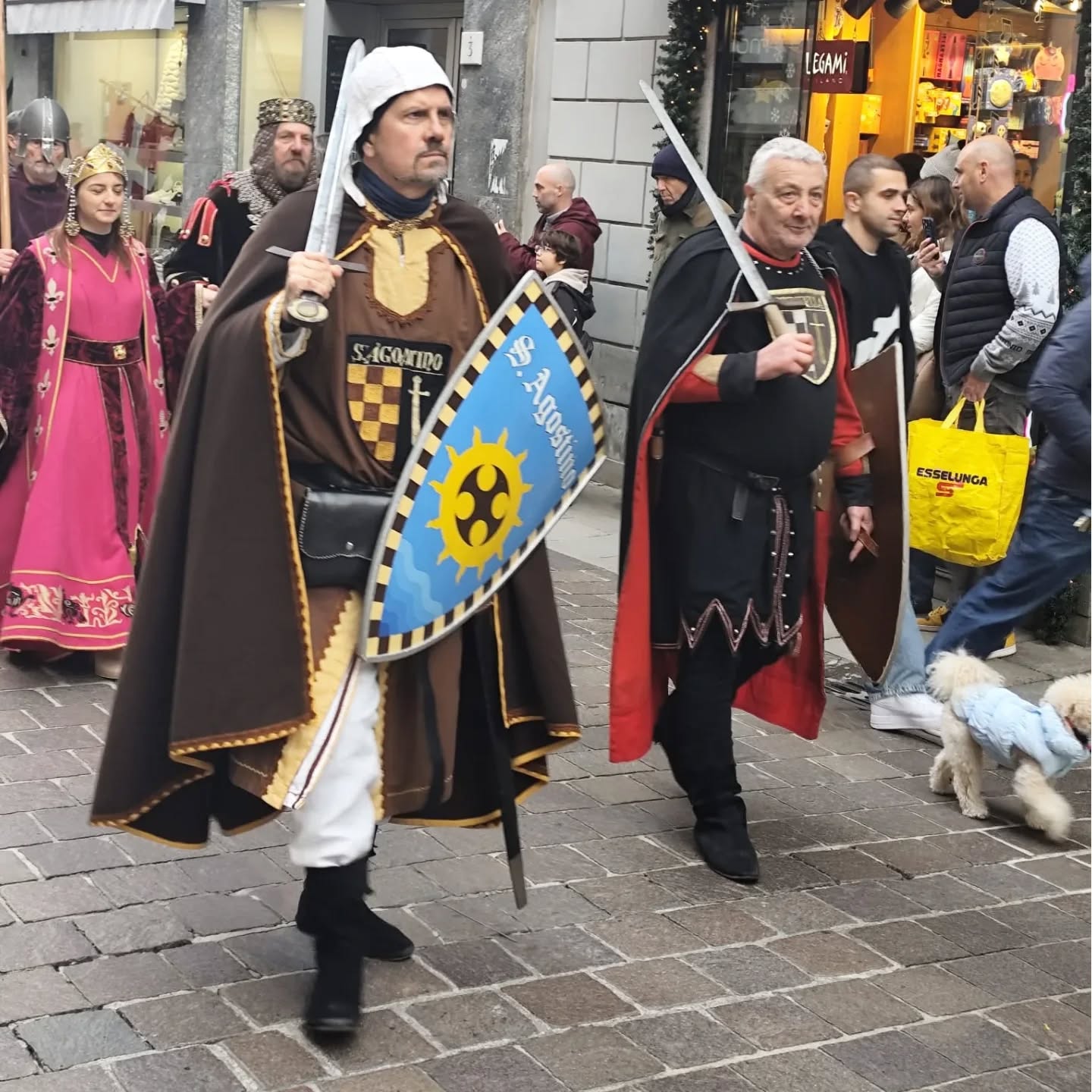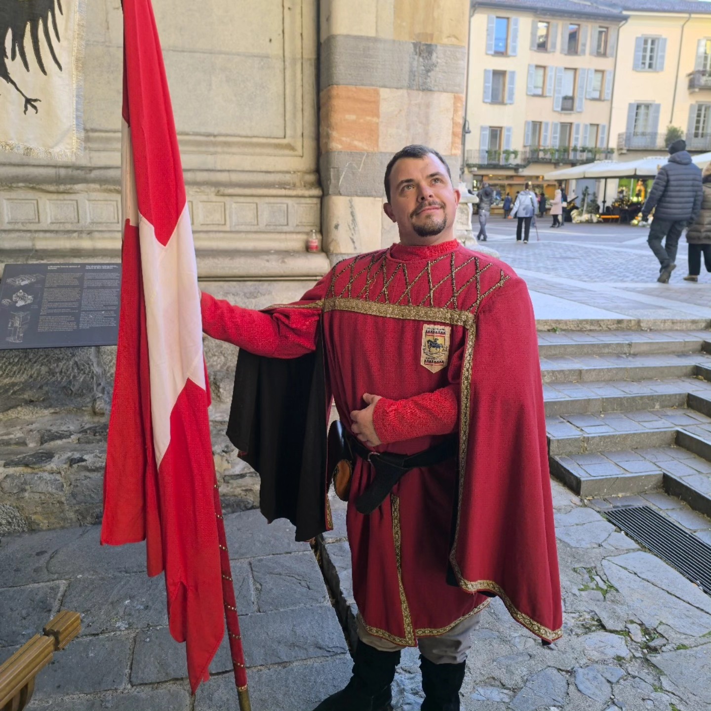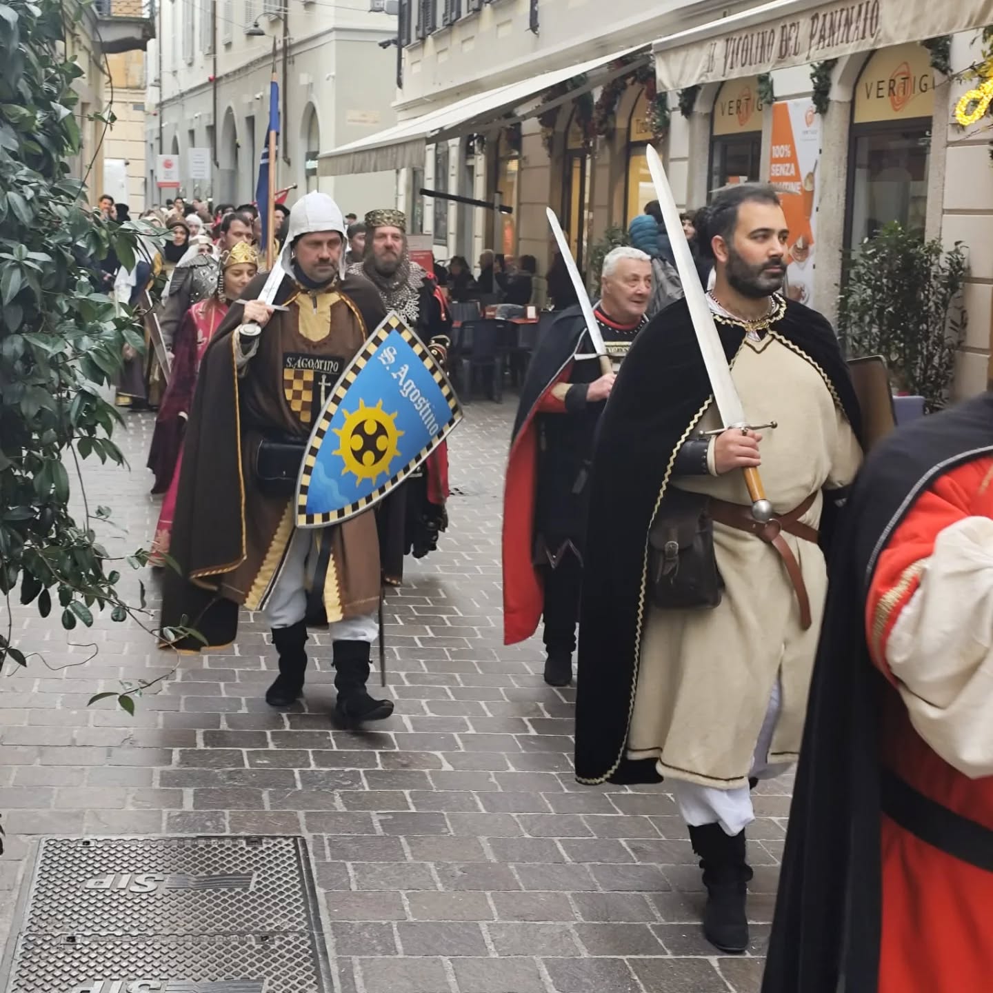 La conclusione, il 20 dicembre, ha portato per le vie di Como un emozionante corteo storico: mantelli che sfioravano le pietre antiche, vessilli mossi dal vento, figure nobili, dame, cavalieri, capitani e cortigiani hanno accompagnato Barbarossa e l’Imperatrice tra le luci natalizie, creando un’atmosfera sospesa nel tempo. In testa al corteo, Messer Raniero ha annunciato al popolo l’arrivo dell’Imperatore, aprendo la strada a un momento carico di suggestione.